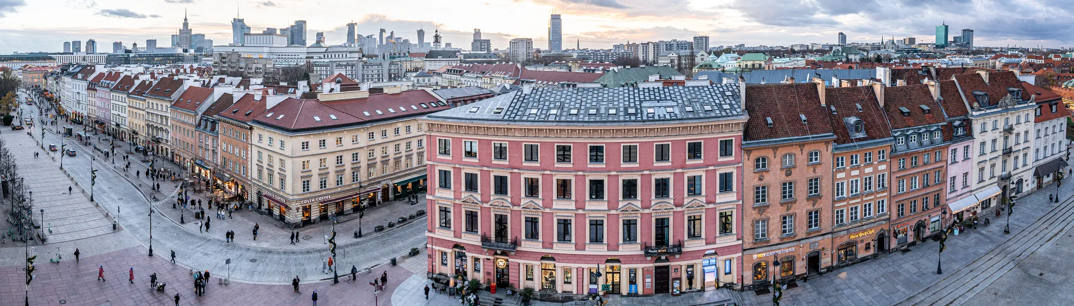 Taras na dzwonnicy kościoła św. Anny to jeden z ciekawszych punktów widokowych w Warszawie. Z tego miejsca dobrze widać kontrast między nowoczesnymi wieżowcami a niższą, zabytkową zabudową w centrum miasta.