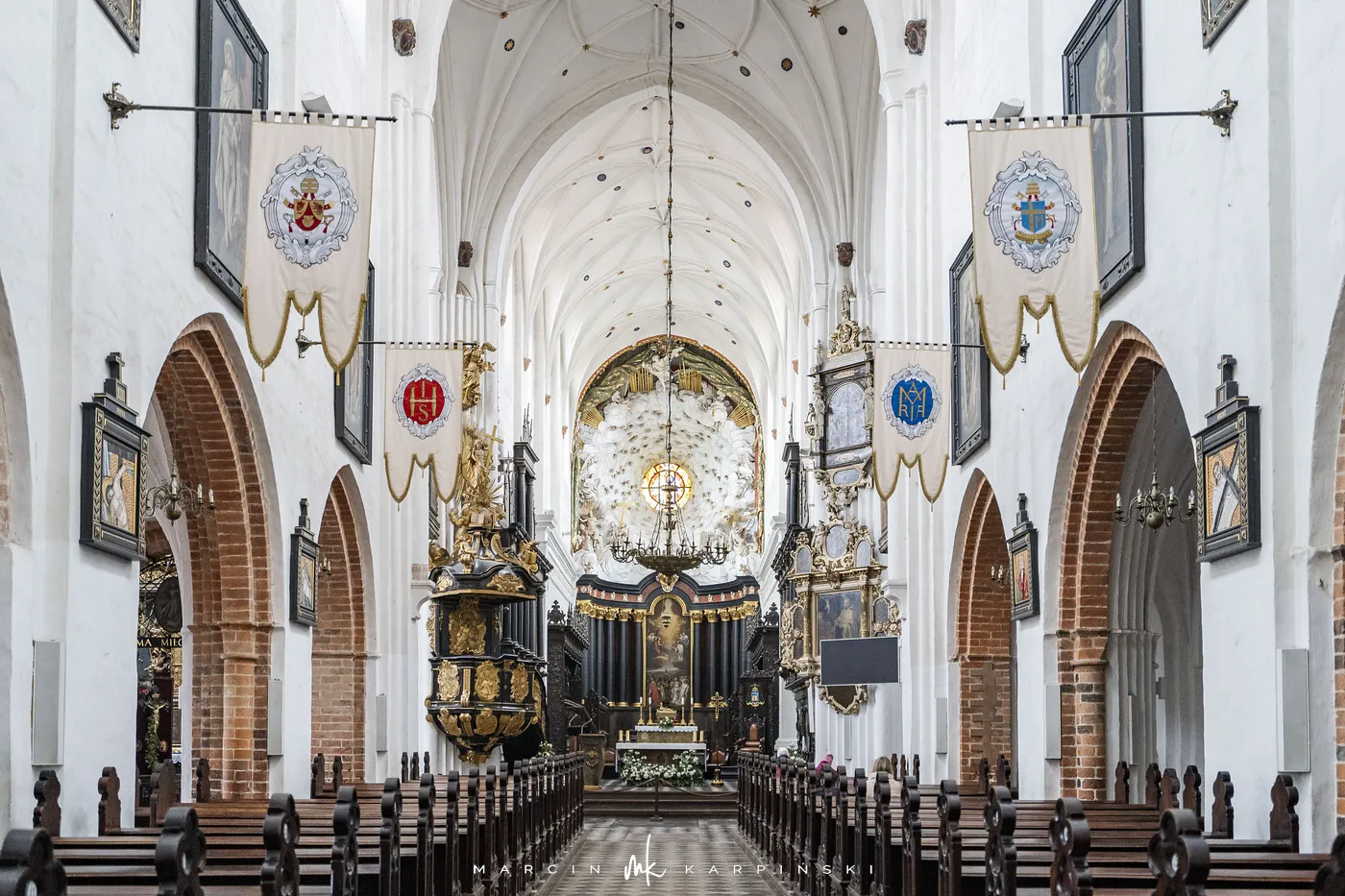 Archikatedra reprezentuje styl gotycki z elementami baroku i rokoka. Jest to trójnawowa bazylika z transeptem, wyróżniająca się długością. Ma ponad 107 metrów i uchodzi za najdłuższy kościół w Polsce. Wewnątrz znajdują się 23 ołtarze o wysokiej wartości artystycznej, z dominującymi stylami barokowym i rokokowym. Znaleźć tu można także dzieła znanych gdańskich artystów XVII wieku, grobowce książąt pomorskich oraz bogato zdobione kaplice i ambonę.