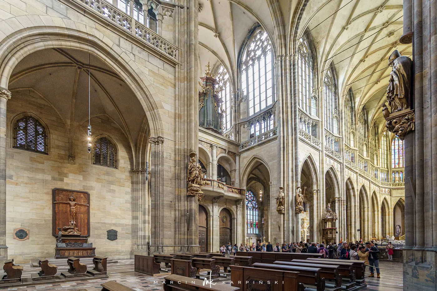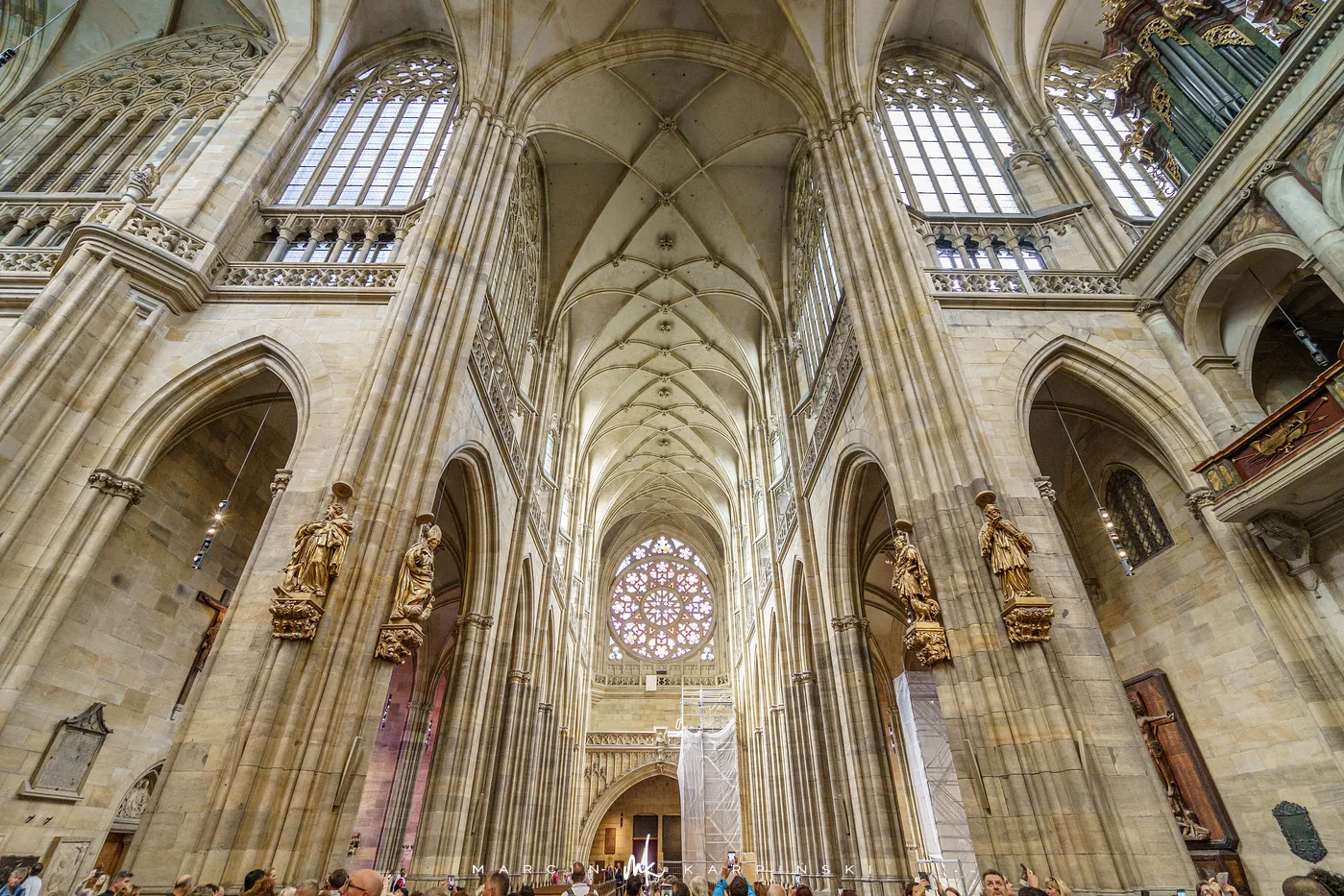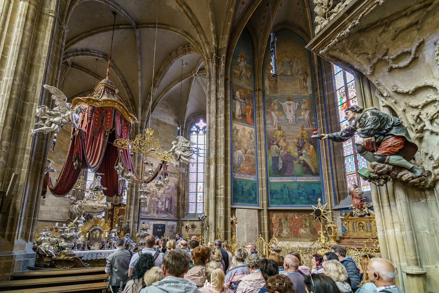Archikatedra zachwyca monumentalną architekturą gotycką, strzelistymi wieżami oraz bogatymi witrażami, z których część zaprojektował Alfons Mucha. Wnętrze kryje liczne ołtarze, kaplice i dzieła sztuki sakralnej. Budowa i rozbudowa świątyni trwała aż do XX wieku - ostatecznie została ukończona i konsekrowana w 1929 roku, w tysiąclecie śmierci św. Wacława. Dziś katedra jest jedną z największych atrakcji turystycznych Pragi.