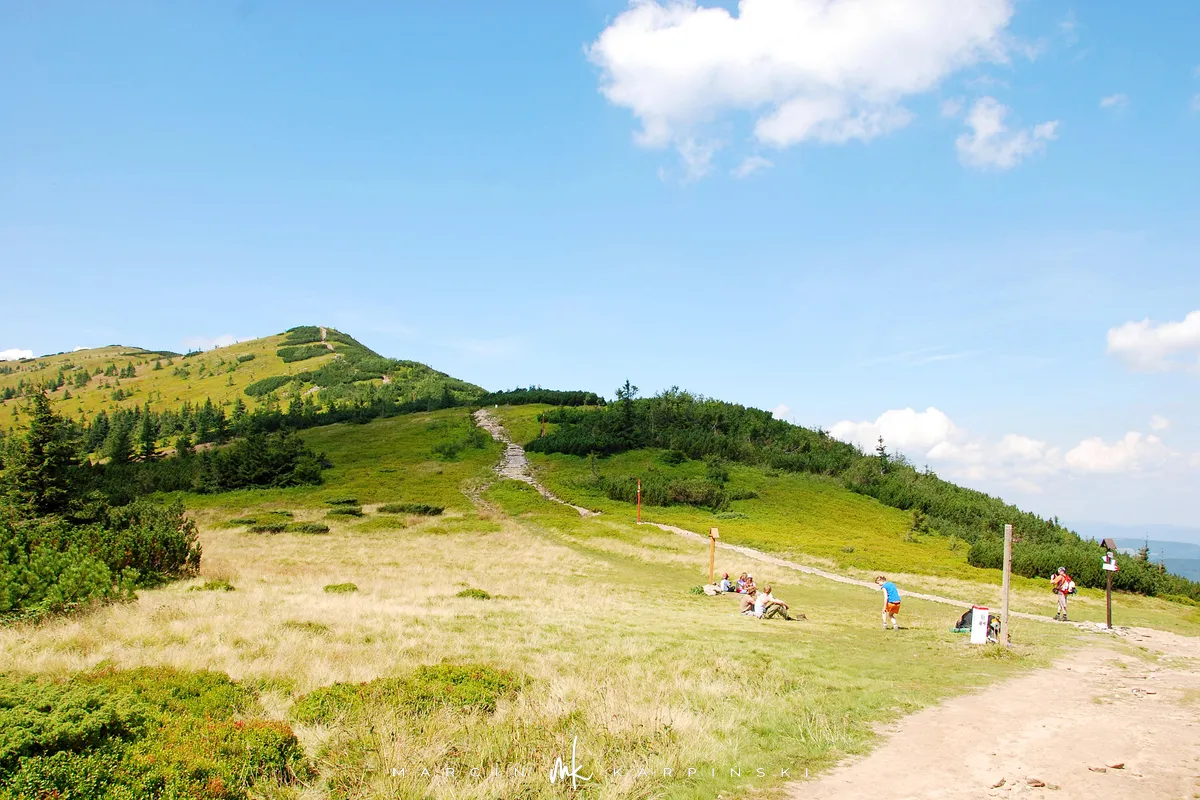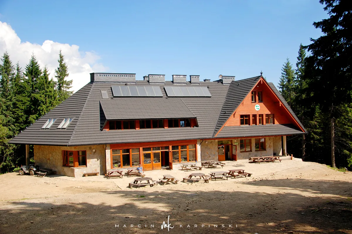 Naszą wędrówkę zaczynamy z Przełęczy Lipnickiej. Podążając niebieskim szlakiem wchodzimy w las. Szlak ten nazywany jest szlakiem spacerowym. Droga jest przyjemną leśną wędrówką, bez większych podejść - w sam raz na rozgrzewkę. Po drodze mijamy pięknie usytuowany Mokry Stawek. Można tu na chwilkę przysiąść i wsłuchać się w leśne życie. Wędrując dalej dochodzimy do Schroniska PTTK Markowe Szczawiny. Schronisko zostało niedawno przebudowane i teraz ma bardzo nowoczesny charakter. W środku oglądając wiszące na ścianach zdjęcia możemy poznać historię jego istnienia.
