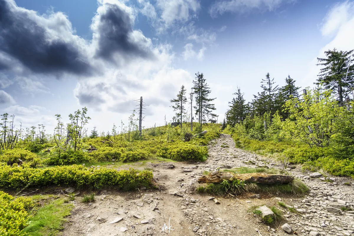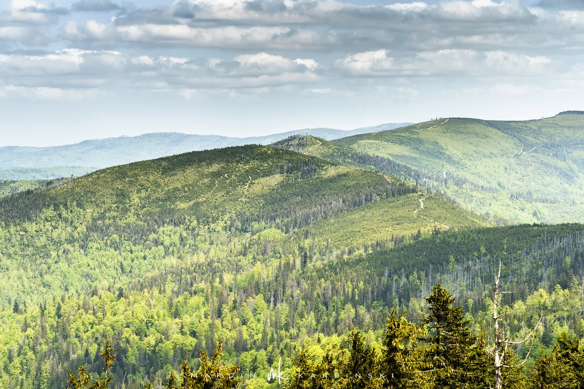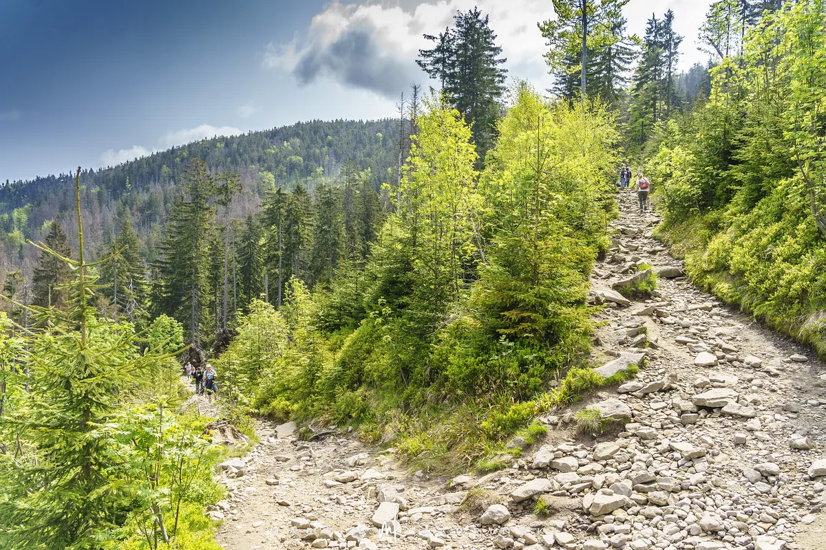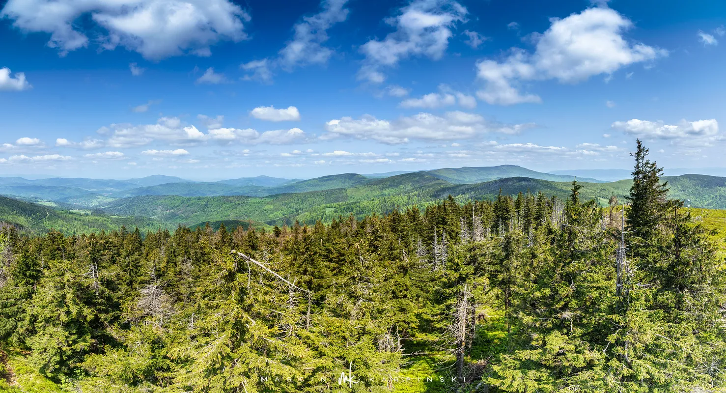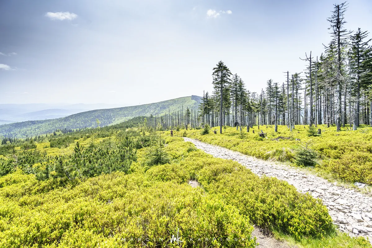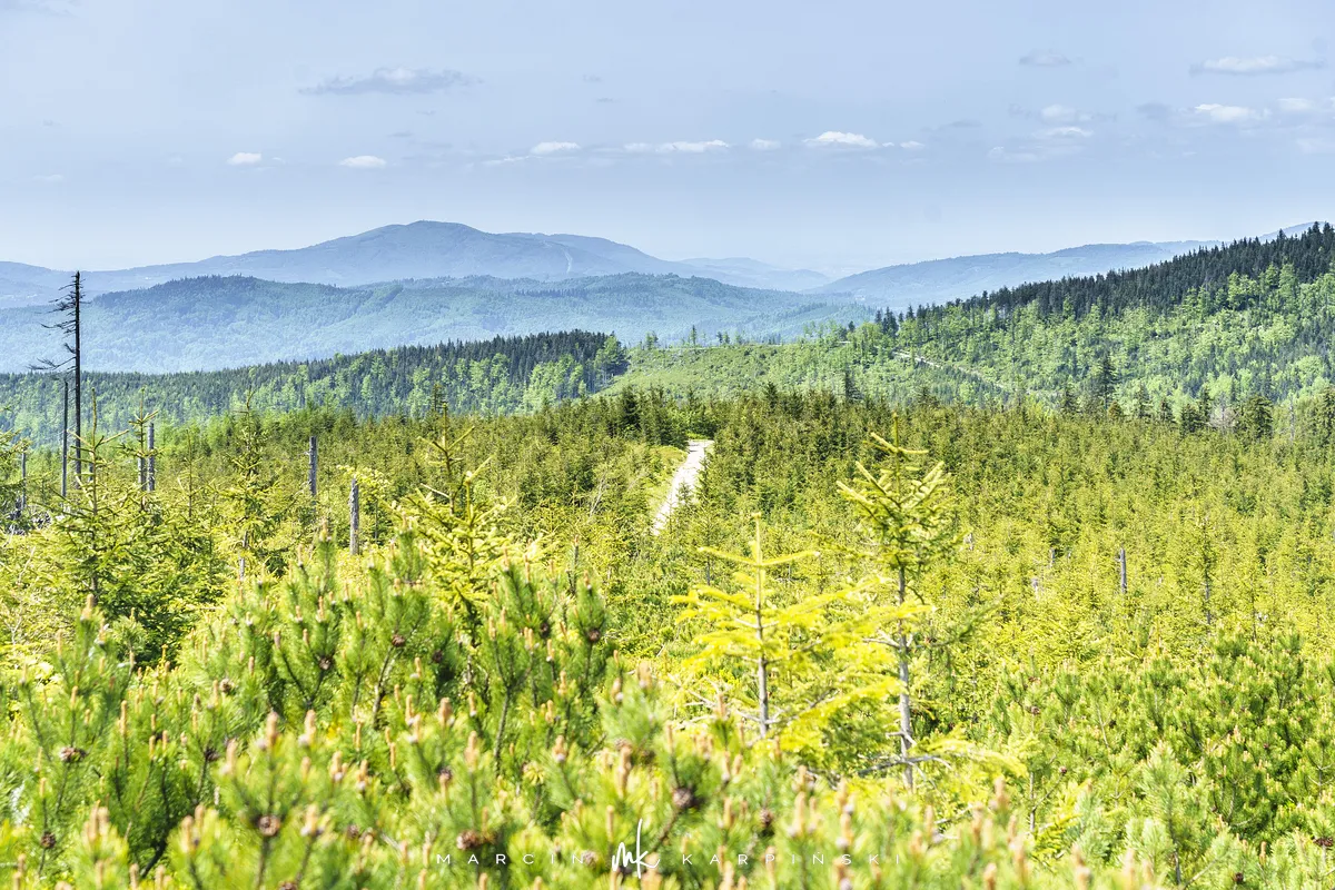 przez Cieńków. Wędrówkę rozpoczynamy sprzed budynku Ochotniczej Straży Pożarnej „Wisła Czarne”, przed którym znajduje się dość duży płatny parking. Pierwsze 3 kilometry idziemy asfaltową drogą, wzdłuż potoku Biała Wisełka. Następnie skręcamy z drogi w prawo, zgodnie z oznaczeniem szlaku. Droga zaczyna delikatnie piąć się do góry. Po prawej stronie mijamy Kaskady Rodła, czyli zespół wodospadów i progów rzecznych. Jest ich około dwudziestu pięciu. Dwa największe mają 3,5 i 5 metrów wysokości. Cały czas idziemy lasem. Im wyżej wchodzimy, to staje się on rzadszy. Spomiędzy drzew zaczynają się wyłaniać widoki okolicznych wzniesień. Dochodzimy do punktu, w którym nasz niebieski szlak łączy się z czerwonym i zielonym. Od tego miejsca do szczytu zostało 300 metrów marszu.