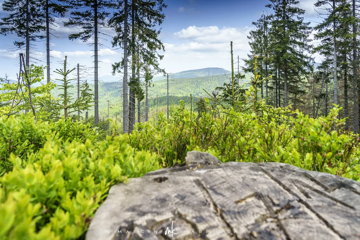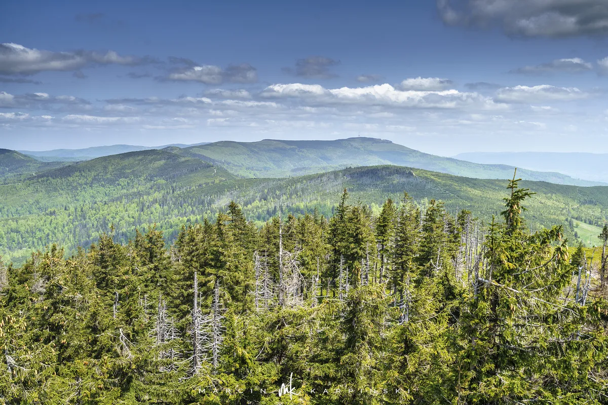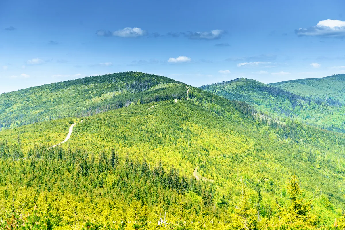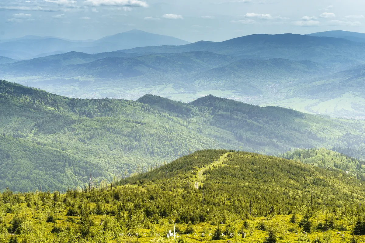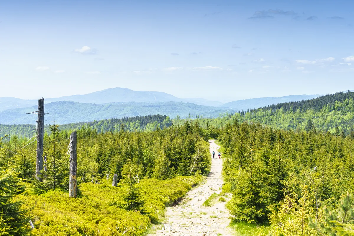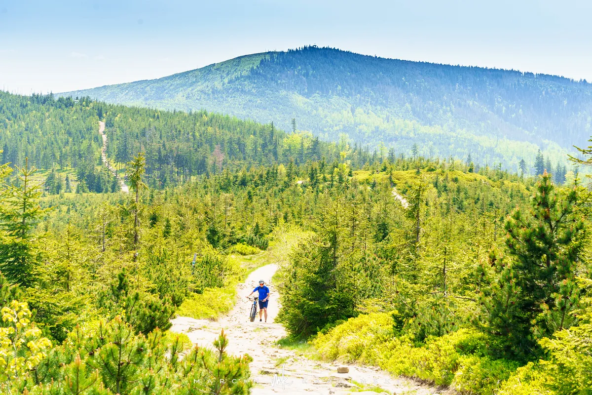 przez Cieńków. Wędrówkę rozpoczynamy sprzed budynku Ochotniczej Straży Pożarnej „Wisła Czarne”, przed którym znajduje się dość duży płatny parking. Pierwsze 3 kilometry idziemy asfaltową drogą, wzdłuż potoku Biała Wisełka. Następnie skręcamy z drogi w prawo, zgodnie z oznaczeniem szlaku. Droga zaczyna delikatnie piąć się do góry. Po prawej stronie mijamy Kaskady Rodła, czyli zespół wodospadów i progów rzecznych. Jest ich około dwudziestu pięciu. Dwa największe mają 3,5 i 5 metrów wysokości. Cały czas idziemy lasem. Im wyżej wchodzimy, to staje się on rzadszy. Spomiędzy drzew zaczynają się wyłaniać widoki okolicznych wzniesień. Dochodzimy do punktu, w którym nasz niebieski szlak łączy się z czerwonym i zielonym. Od tego miejsca do szczytu zostało 300 metrów marszu.