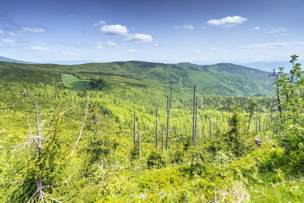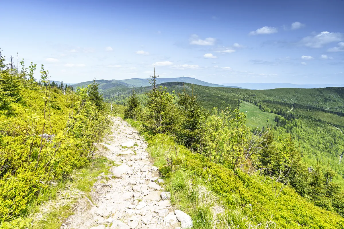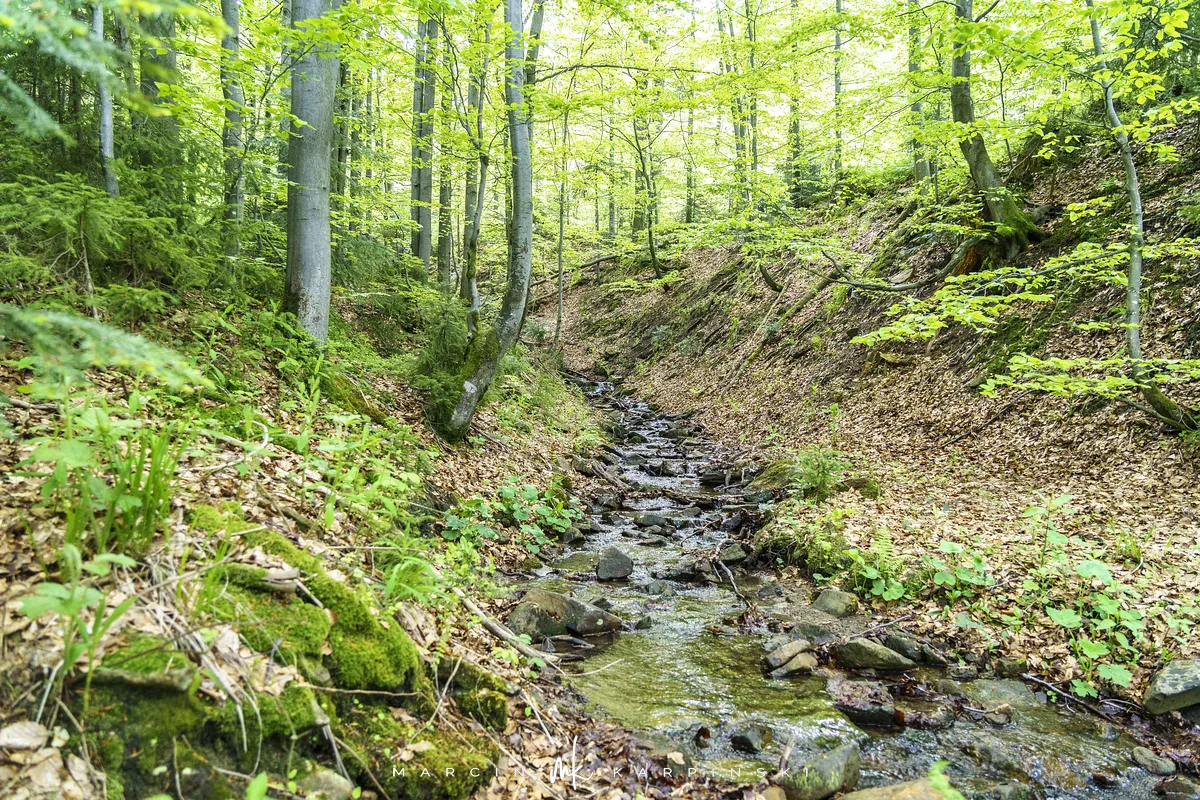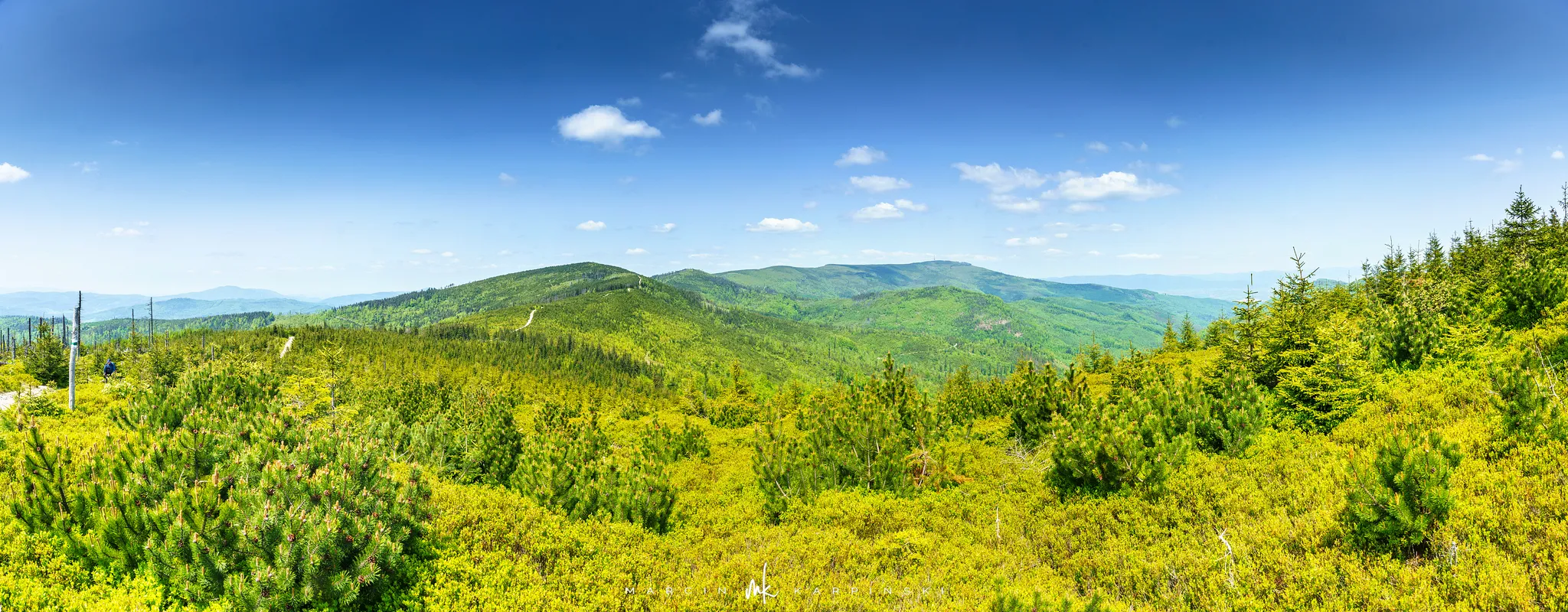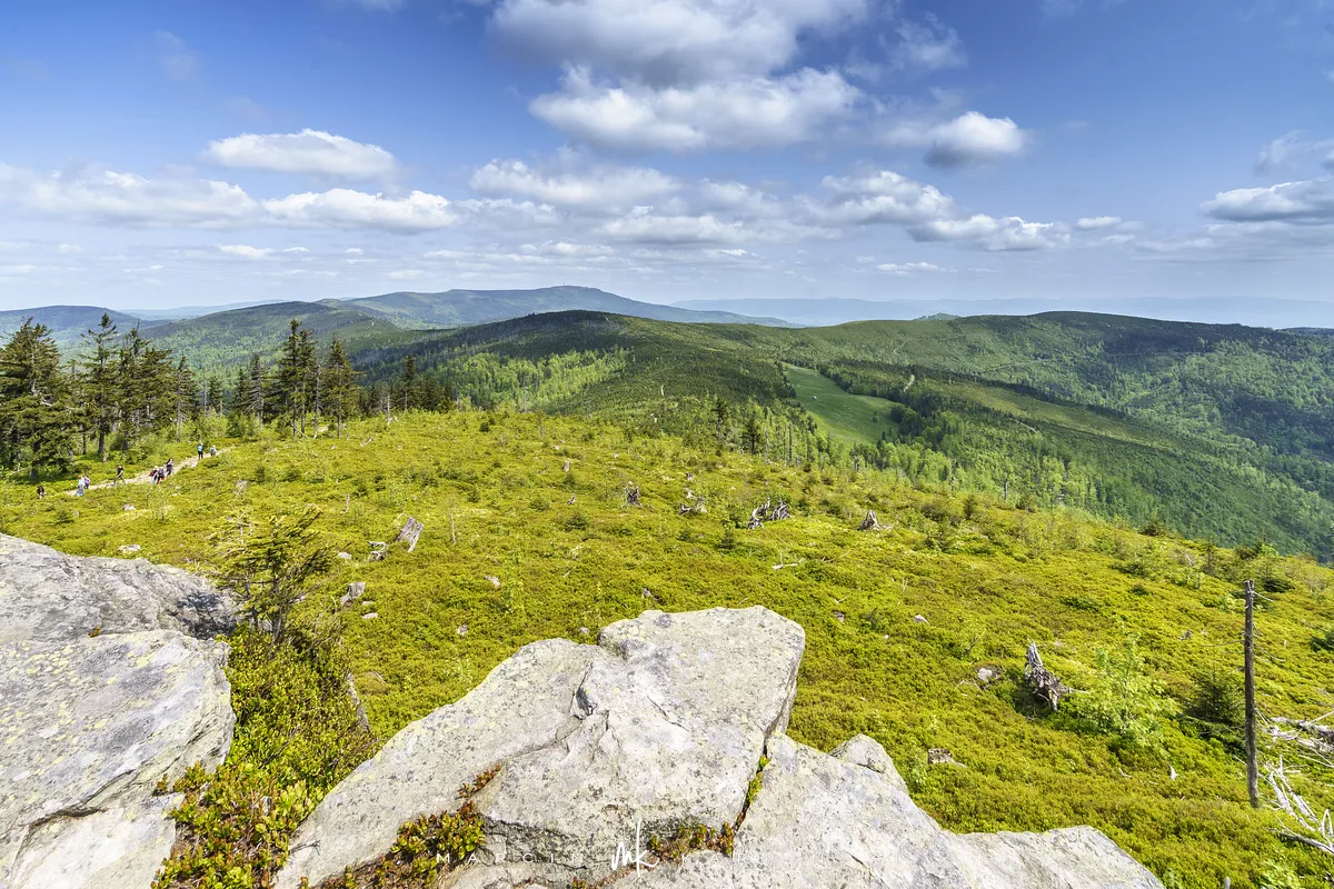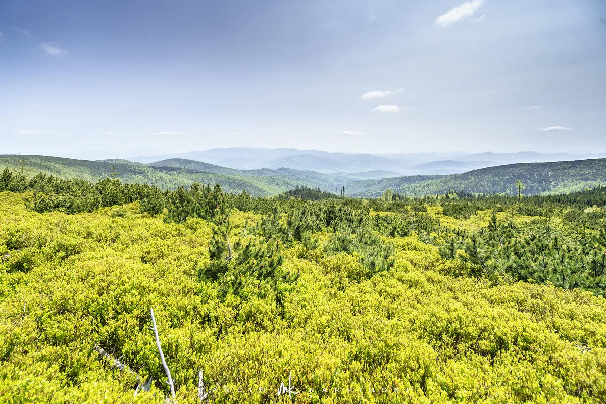 przez Cieńków. Wędrówkę rozpoczynamy sprzed budynku Ochotniczej Straży Pożarnej „Wisła Czarne”, przed którym znajduje się dość duży płatny parking. Pierwsze 3 kilometry idziemy asfaltową drogą, wzdłuż potoku Biała Wisełka. Następnie skręcamy z drogi w prawo, zgodnie z oznaczeniem szlaku. Droga zaczyna delikatnie piąć się do góry. Po prawej stronie mijamy Kaskady Rodła, czyli zespół wodospadów i progów rzecznych. Jest ich około dwudziestu pięciu. Dwa największe mają 3,5 i 5 metrów wysokości. Cały czas idziemy lasem. Im wyżej wchodzimy, to staje się on rzadszy. Spomiędzy drzew zaczynają się wyłaniać widoki okolicznych wzniesień. Dochodzimy do punktu, w którym nasz niebieski szlak łączy się z czerwonym i zielonym. Od tego miejsca do szczytu zostało 300 metrów marszu.