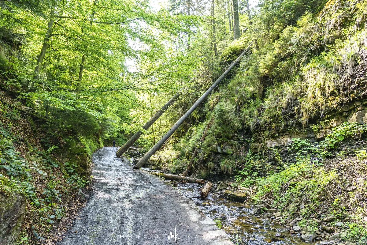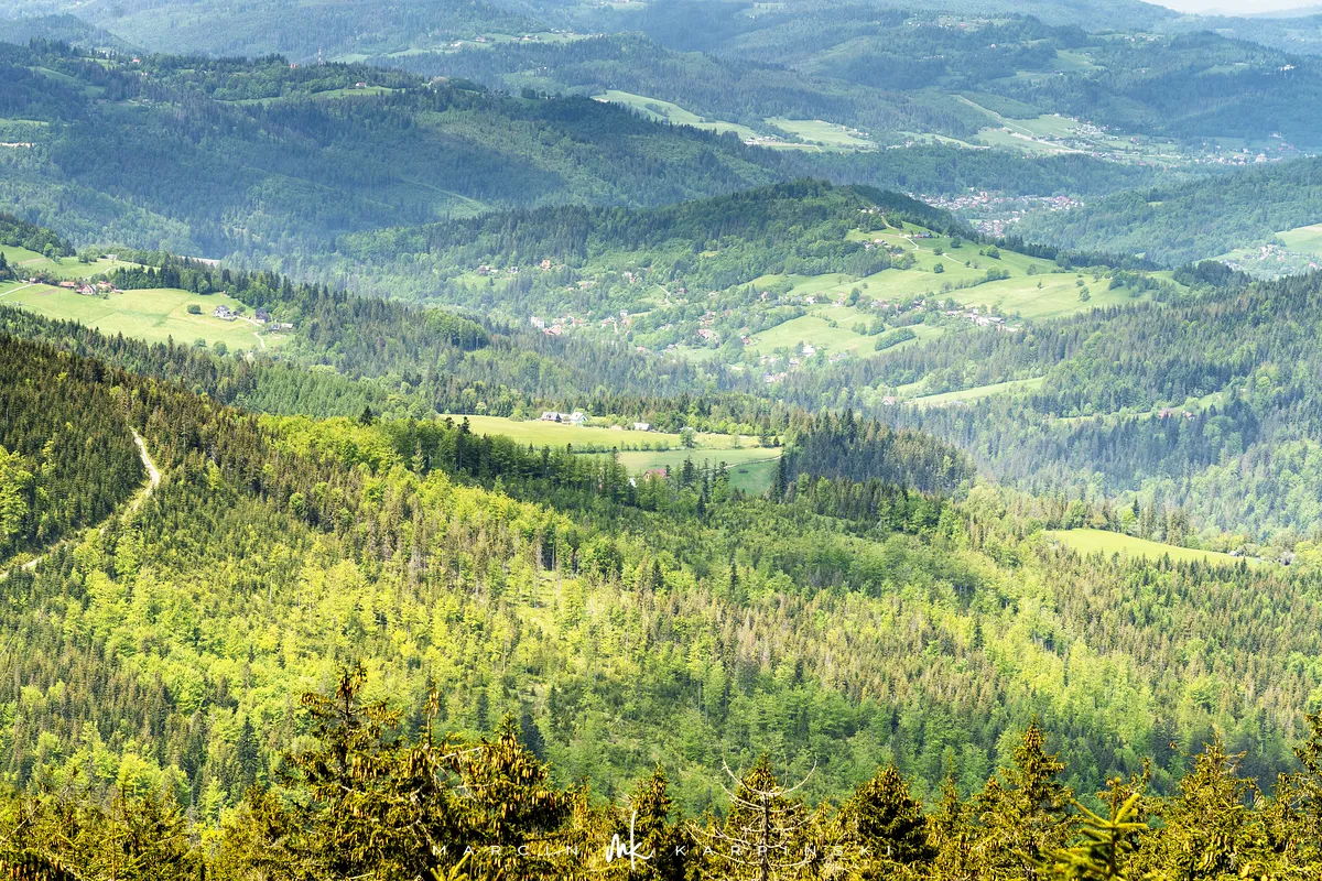 Z Magury Wiślańskiej do kolejnego na trasie szczytu Gawlasi idziemy zielonym szlakiem (szlak czerwony skręcił w prawo w kierunku Węgierskiej Górki). Przejście tego półtorakilometrowego odcinka zajmuje nam 35 minut. Wędrówka nie nastręcza problemów. Początkowo idziemy w dół, później lekko w górę. Kilkadziesiąt metrów po minięciu oznaczenia góry Gawlasi z lewej strony z drogą, którą idziemy, łączy się oznaczony na żółto szlak schodzący do Wisły. To właśnie nim przebędziemy pozostały odcinek trasy. Od tego miejsca wejdziemy jeszcze na dwa niezbyt wyróżniające się wzniesienia: Cienków Wyżni i Cienków Postrzedni. Po przejściu 5 kilometrów (na wysokości znajdującego się w dole parkingu, z którego rozpoczynaliśmy wędrówkę), schodzimy z żółtego szlaku w lewo na leśną ścieżkę. Ten odcinek trasy w dół nie jest oznaczony na mapie. Wykorzystaliśmy leśne ścieżki, które zaprowadziły nas do zabudowań Wisły Czarne i parkingu przy OSP.