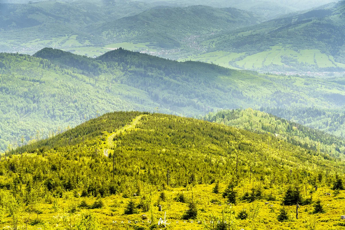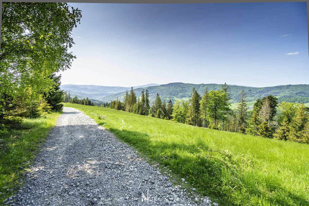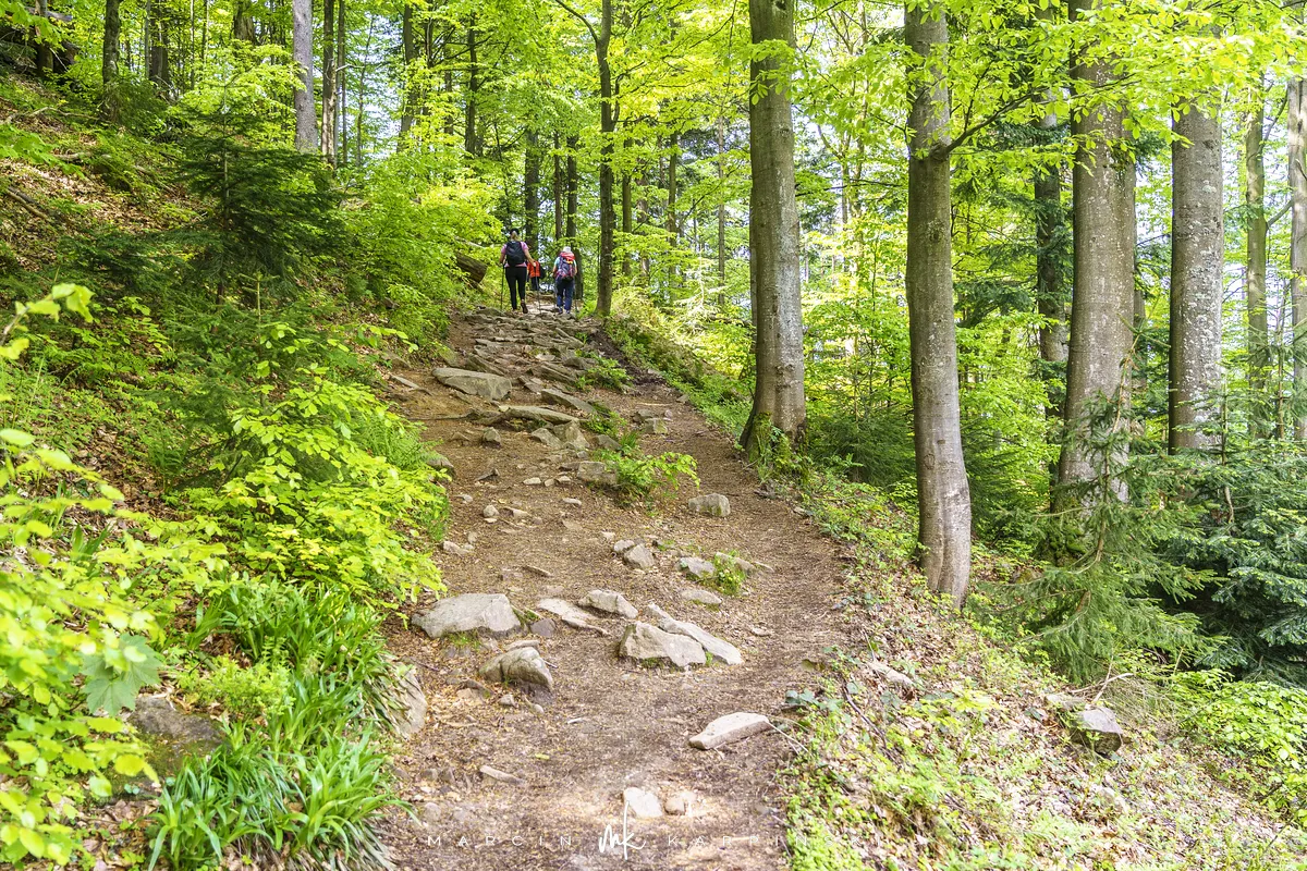 W drogę powrotną udajemy się na północ w kierunku Magury Wiślańskiej. Prowadzi na nią czerwony i zielony szlak. My jednak, ze szczytu część tego odcinka, idziemy ścieżką biegnącą niżej niż wyznaczony szlak. Ścieżka ta po około ośmiuset metrach dochodzi do czerwonego szlaku. Według starszych map i zamazanych oznaczeń, to właśnie ta trasa była wcześniej szlakiem z Baraniej Góry w kierunku Magury Wiślańskiej. Na szczycie Magury Wiślańskiej jesteśmy po trzech kwadransach od opuszczenia Baraniej Góry.