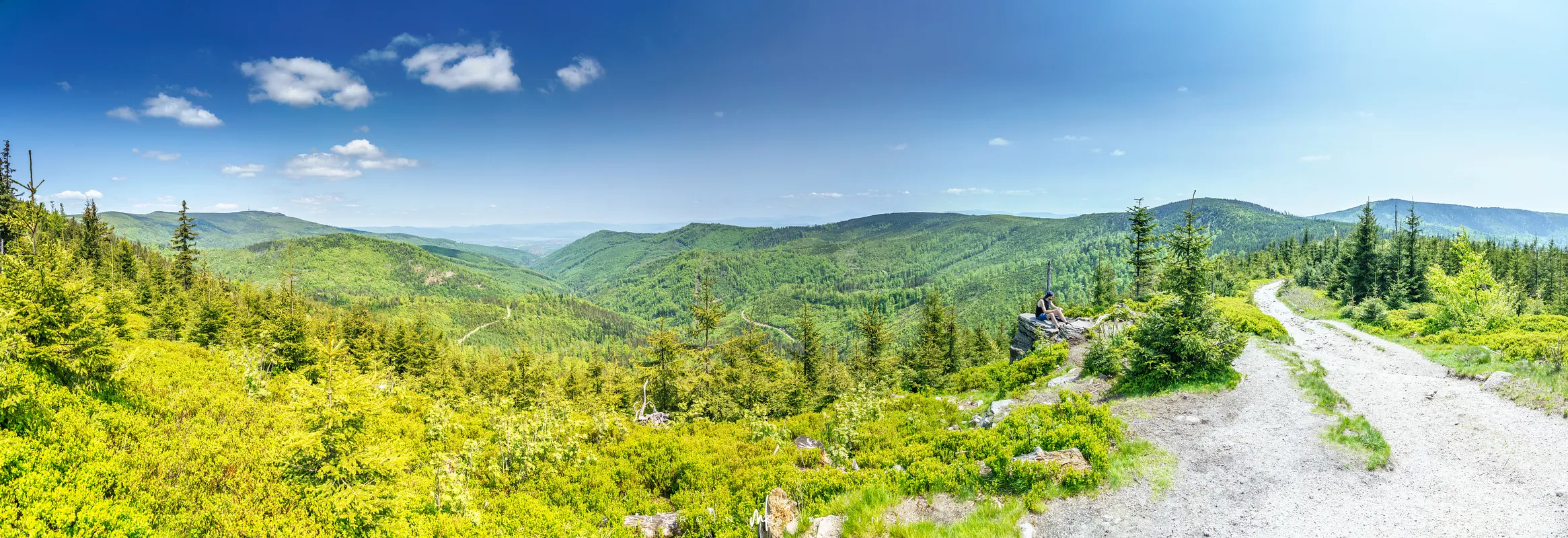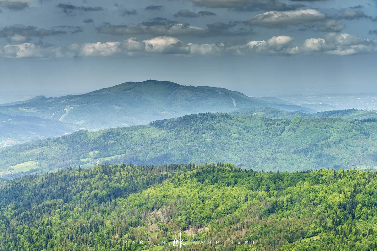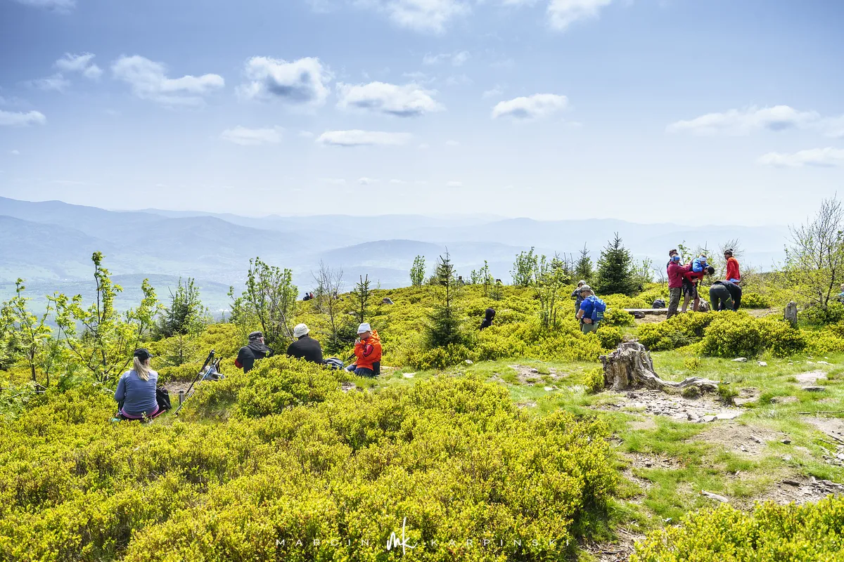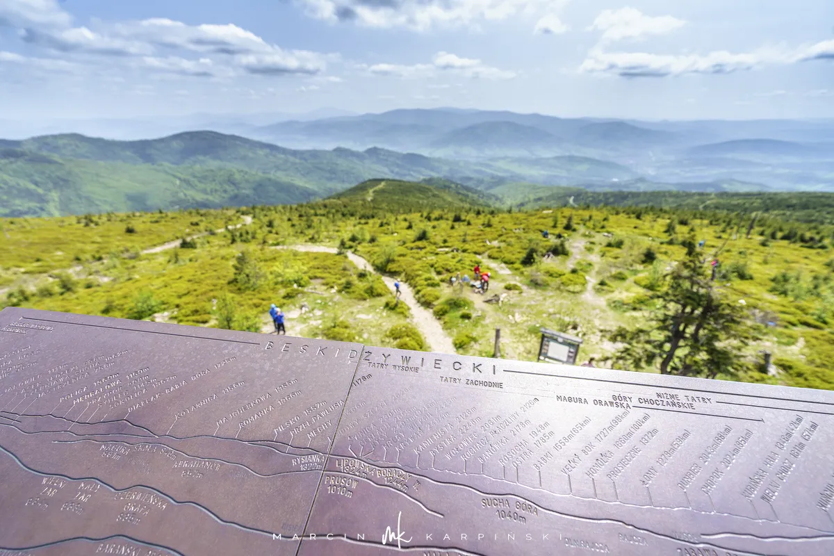 Na Baranią Górę wchodzimy po 2 godzinach i 5 minutach od rozpoczęcia wędrówki w Wiśle. Na szczycie znajduje się metalowa wieża widokowa. Z jej tarasu rozpościera się bardzo rozległy widok na okolicę. Widzimy panoramę gór Polski, Czech i Słowacji. Są to góry należące m.in. do Beskidu Śląskiego, Beskidu Żywieckiego, Beskidu Małego i Makowskiego, a także Tatry. Na szczycie spędzamy trochę ponad pół godziny.