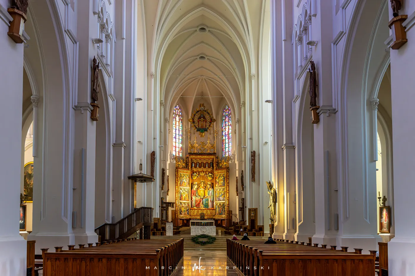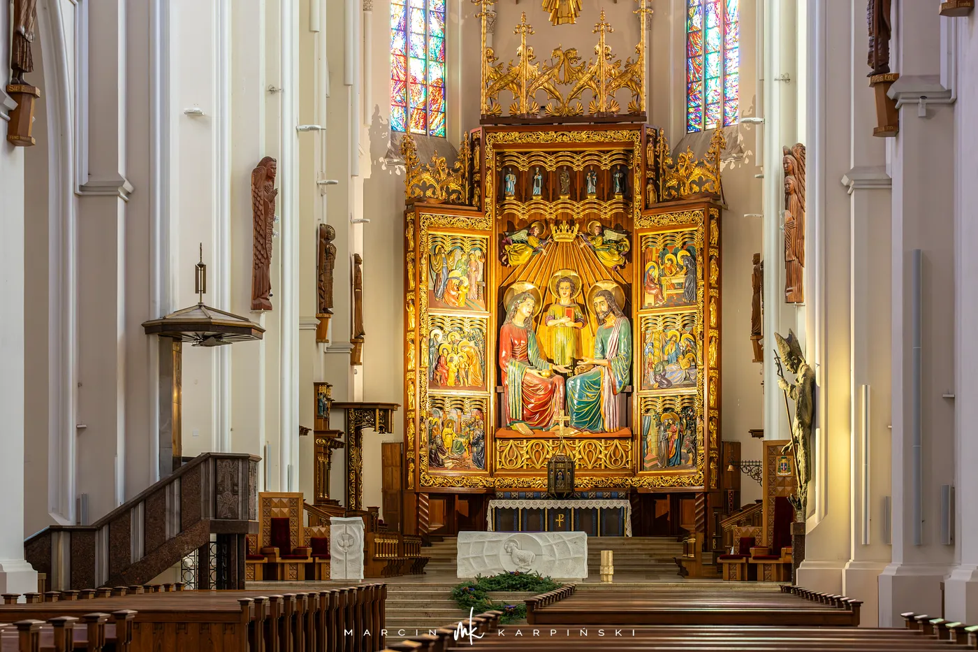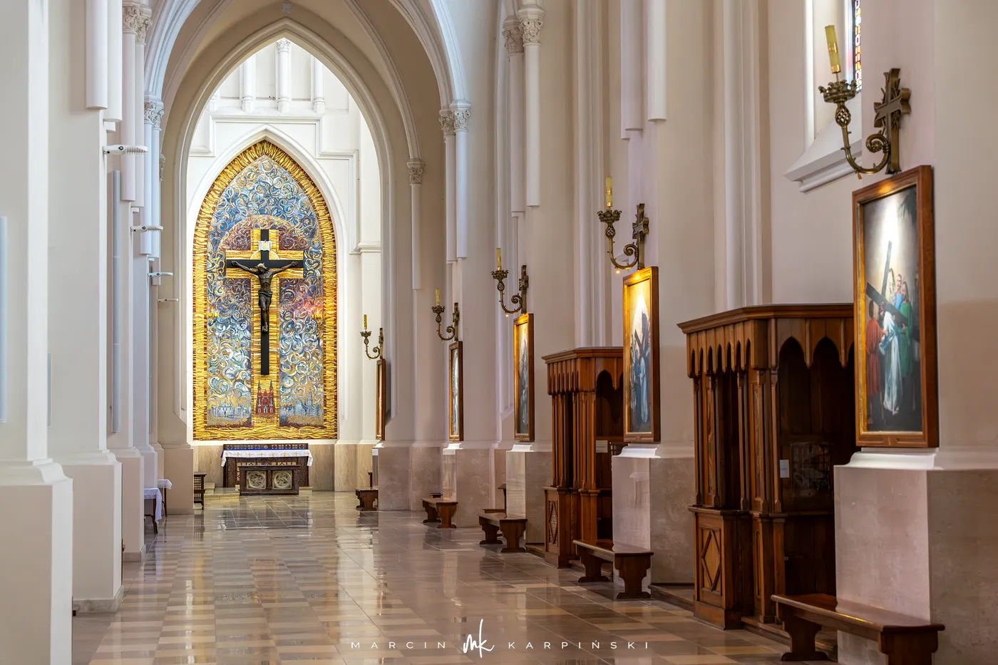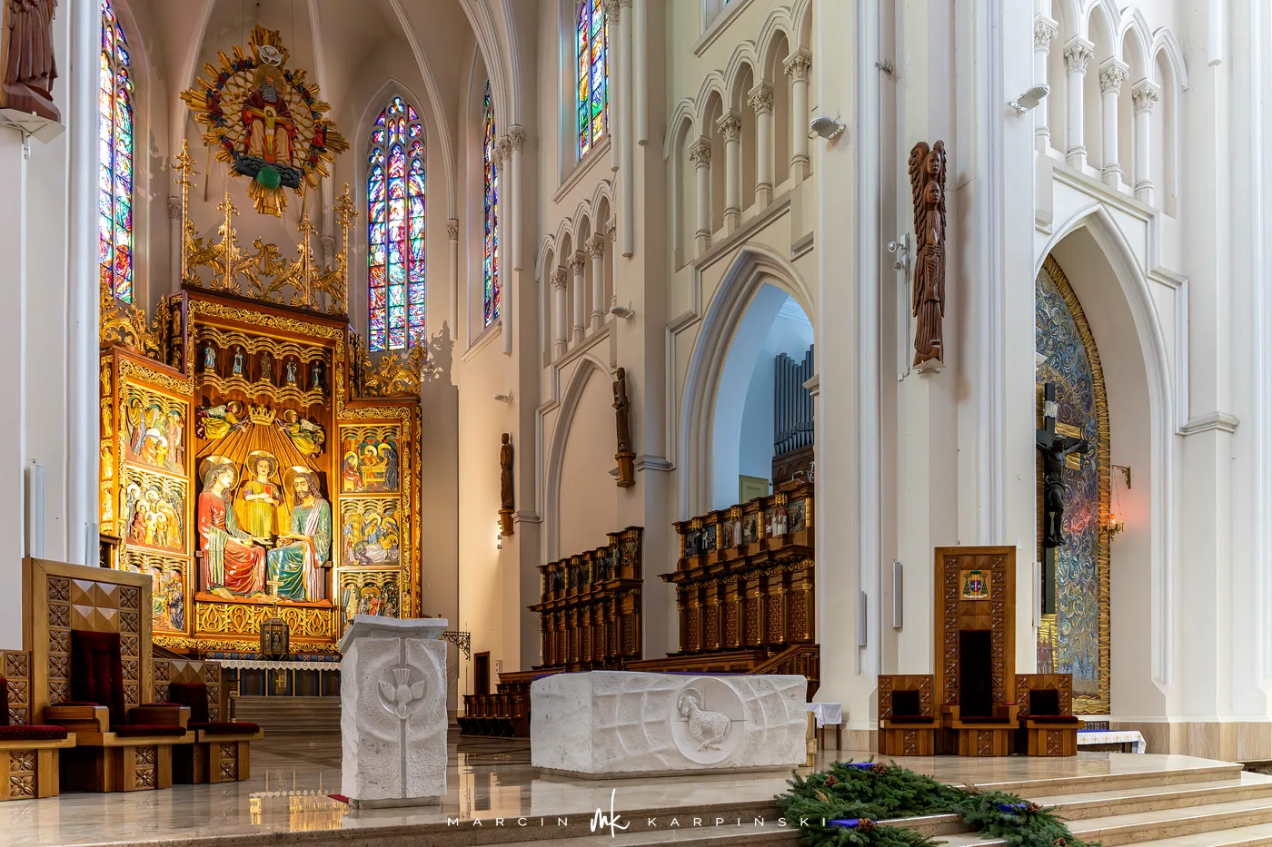 Bazylika archikatedralna Świętej Rodziny w Częstochowie to trójnawowa świątynia o długości około 100 metrów. Jej wnętrze ma sklepienia krzyżowo-żebrowe, a wyposażenie pochodzi głównie z drugiej połowy XX wieku i początku XXI wieku. Wyróżnia ją ołtarz główny w formie tryptyku oraz liczne elementy dekoracyjne nawiązujące do sztuki gotyckiej.
