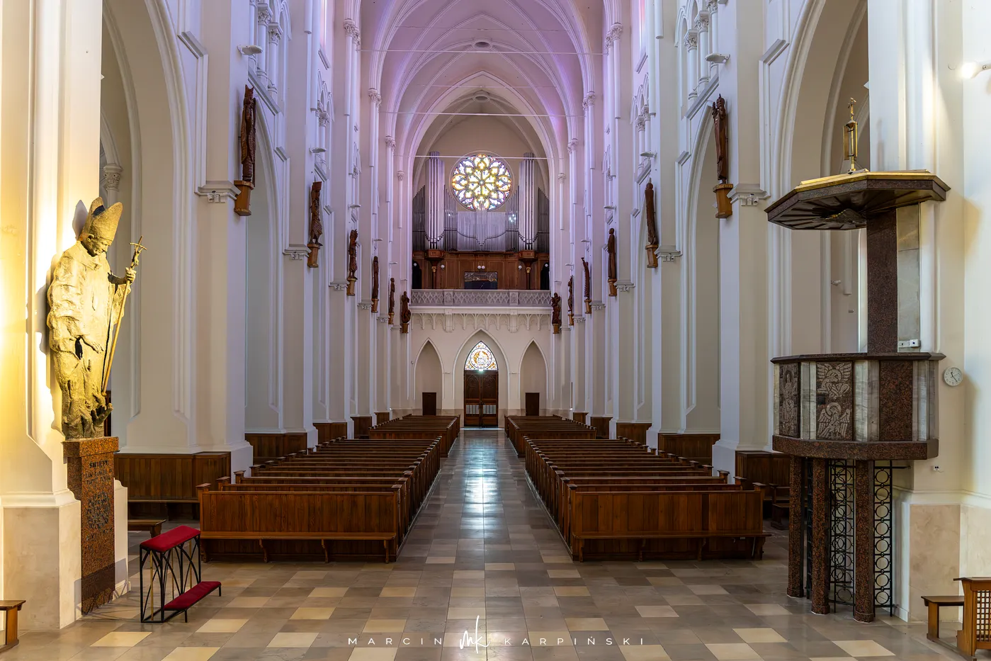 Na początku XX wieku dotychczasowy kościół parafialny św. Zygmunta przestał wystarczać dla rosnącej liczby wiernych. Władze rosyjskie długo nie zgadzały się na budowę nowej świątyni. Jednak na początku panowania cara Mikołaja II udało się uzyskać zgodę. Projekt przygotował architekt Konstanty Wojciechowski. Budowę rozpoczęto w 1901 roku, a rok później wmurowano kamień węgielny.