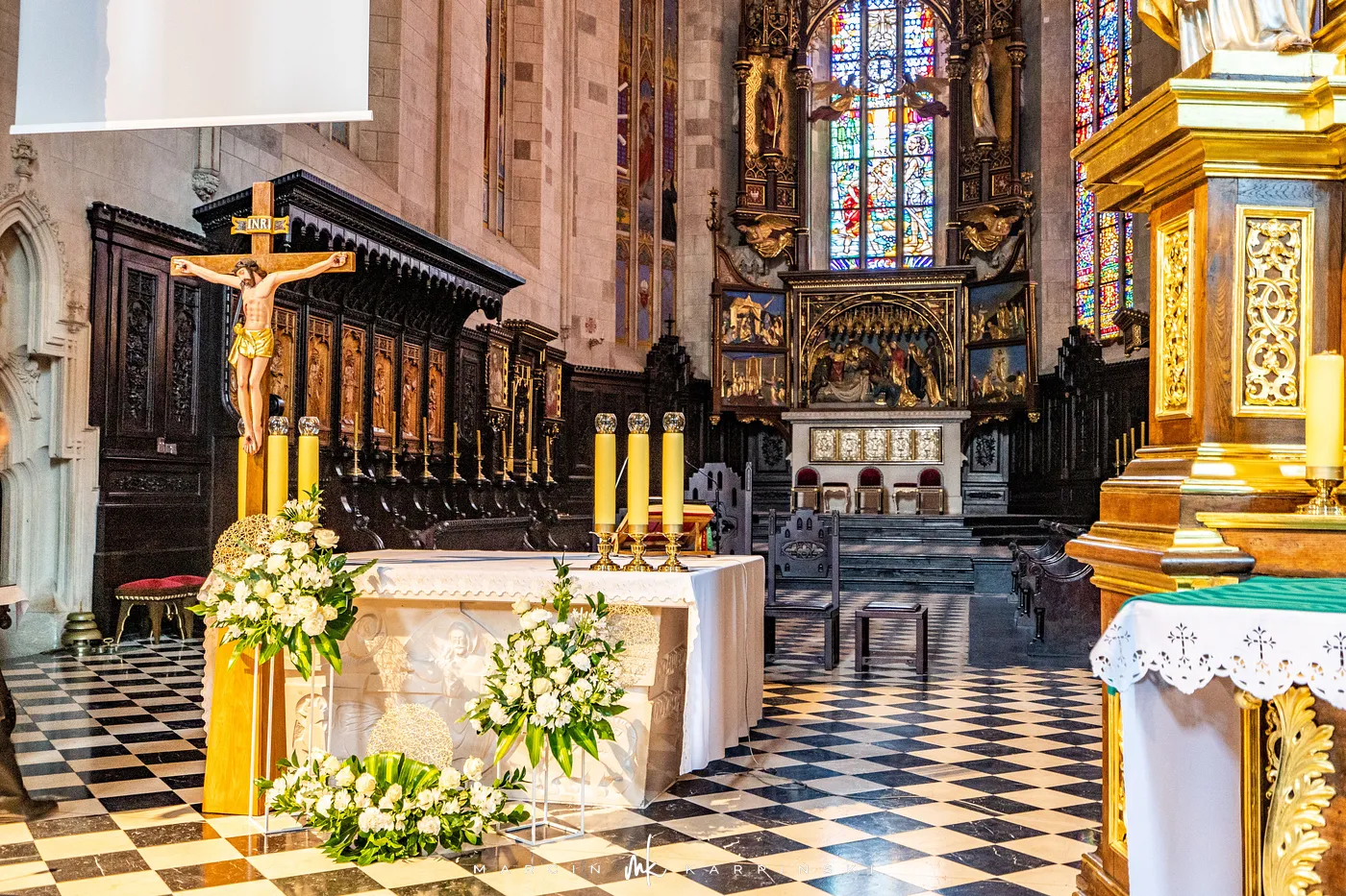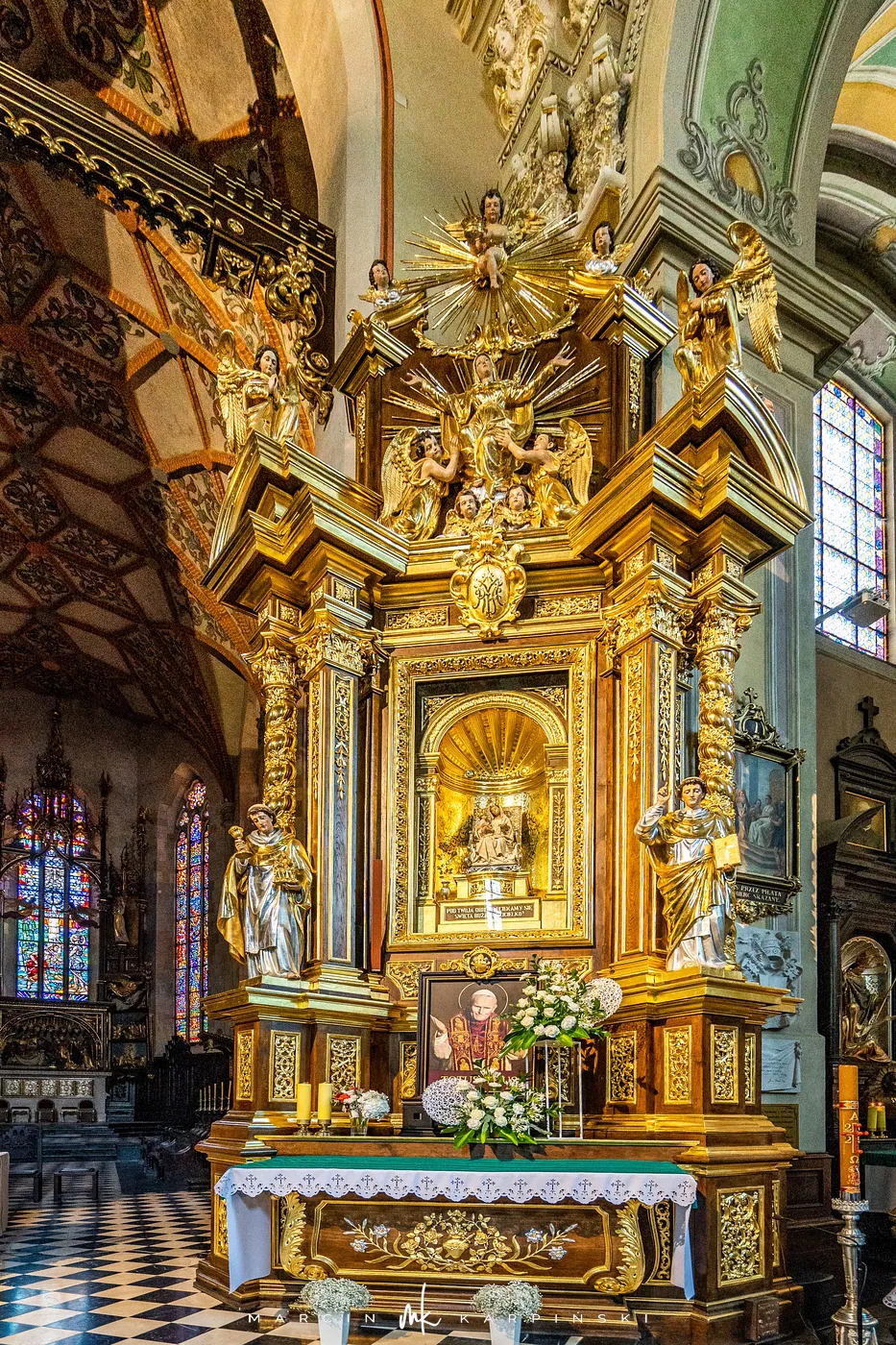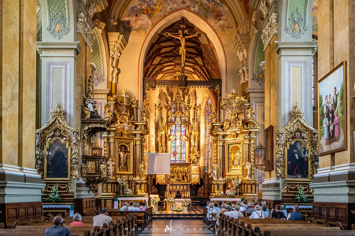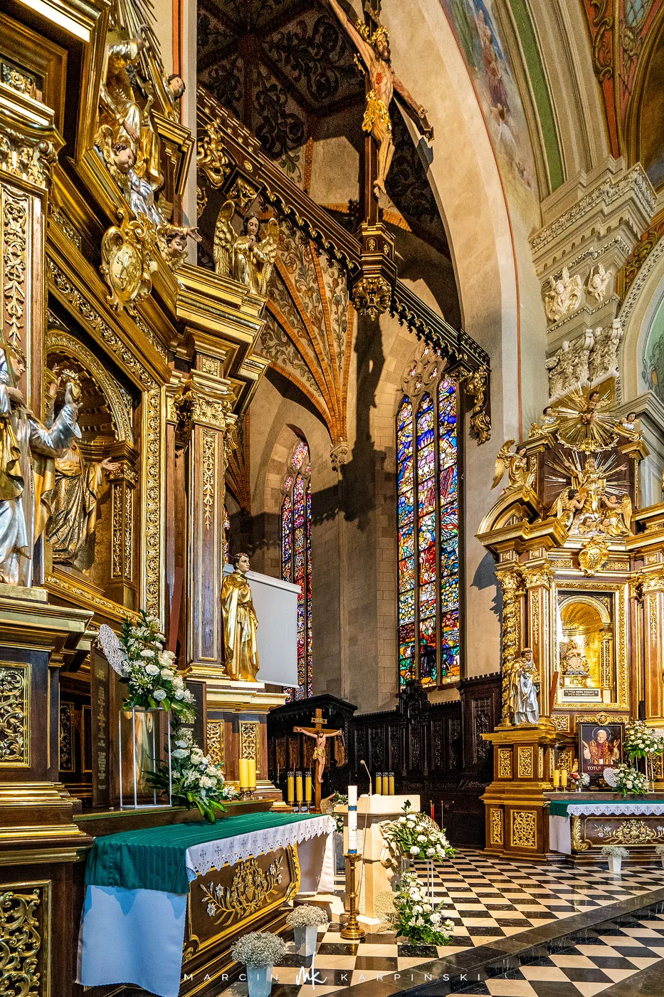 Dzisiejsza katedra łączy w sobie elementy różnych epok, widoczne zarówno w bryle, jak i w wystroju. Gotyckie mury i sklepienia współistnieją tu z barokowymi i neogotyckimi detalami. W podziemiach zachowały się fundamenty romańskiej rotundy z XII–XIII wieku. Wnętrze katedry jest bogato wyposażone. Znajdują się w nim liczne kaplice, ołtarze, obrazy i rzeźby sakralne. Wśród najbardziej znanych obiektów wyróżnia się alabastrowa figura Matki Boskiej, zwana „Matką Boską Jackową”, datowana na koniec XV wieku. W świątyni znajdują się krypty osób ważnych dla historii regionu.