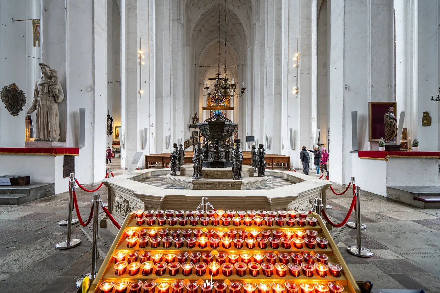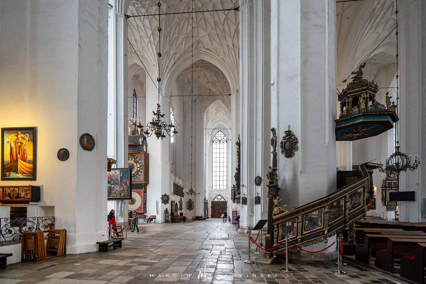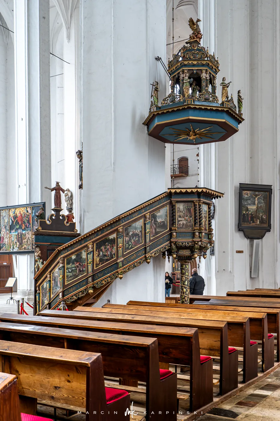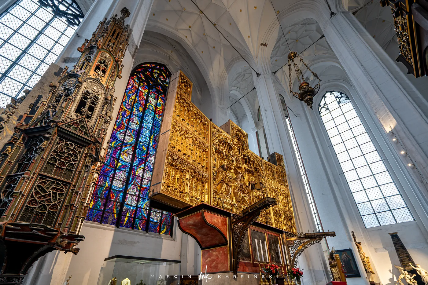 Kościół Mariacki w Gdańsku, czyli Bazylika Konkatedralna Wniebowzięcia Najświętszej Maryi Panny, jest jednym z najważniejszych zabytków sakralnych Gdańska. Kamień węgielny pod budowę położono 28 marca 1343 roku, a wznoszenie świątyni trwało aż 159 lat. Pierwotny, mniejszy kościół ukończony w latach 1360-1361 miał formę bazyliki trójnawowej i zajmował obszar dzisiejszego korpusu zachodniego. Kolejne etapy budowy przyniosły powstanie transeptu, prezbiterium, podwyższenie wieży oraz ostateczne przesklepienie całego wnętrza, zakończone 28 lipca 1502 roku.