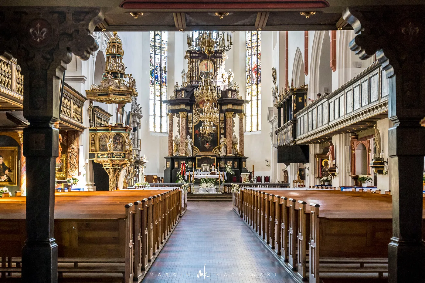 Świątynia utrzymana jest głównie w stylu gotyckim z elementami renesansu i baroku. Wewnątrz warto zobaczyć manierystyczną ambonę z XVII wieku, unikatową bibliotekę łańcuchową z XVI wieku oraz zabytkowe dzwony, z których najstarszy pochodzi z XV wieku. W południowej części znajduje się mauzoleum książąt Wirtembergów, a pod prezbiterium krypty rodu Podiebradów. W 1998 roku kościół otrzymał tytuł bazyliki mniejszej.