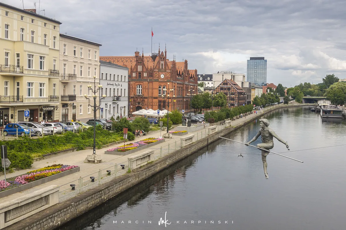 - rzeźba linoskoczka nad Brdą "Przechodzący przez rzekę",