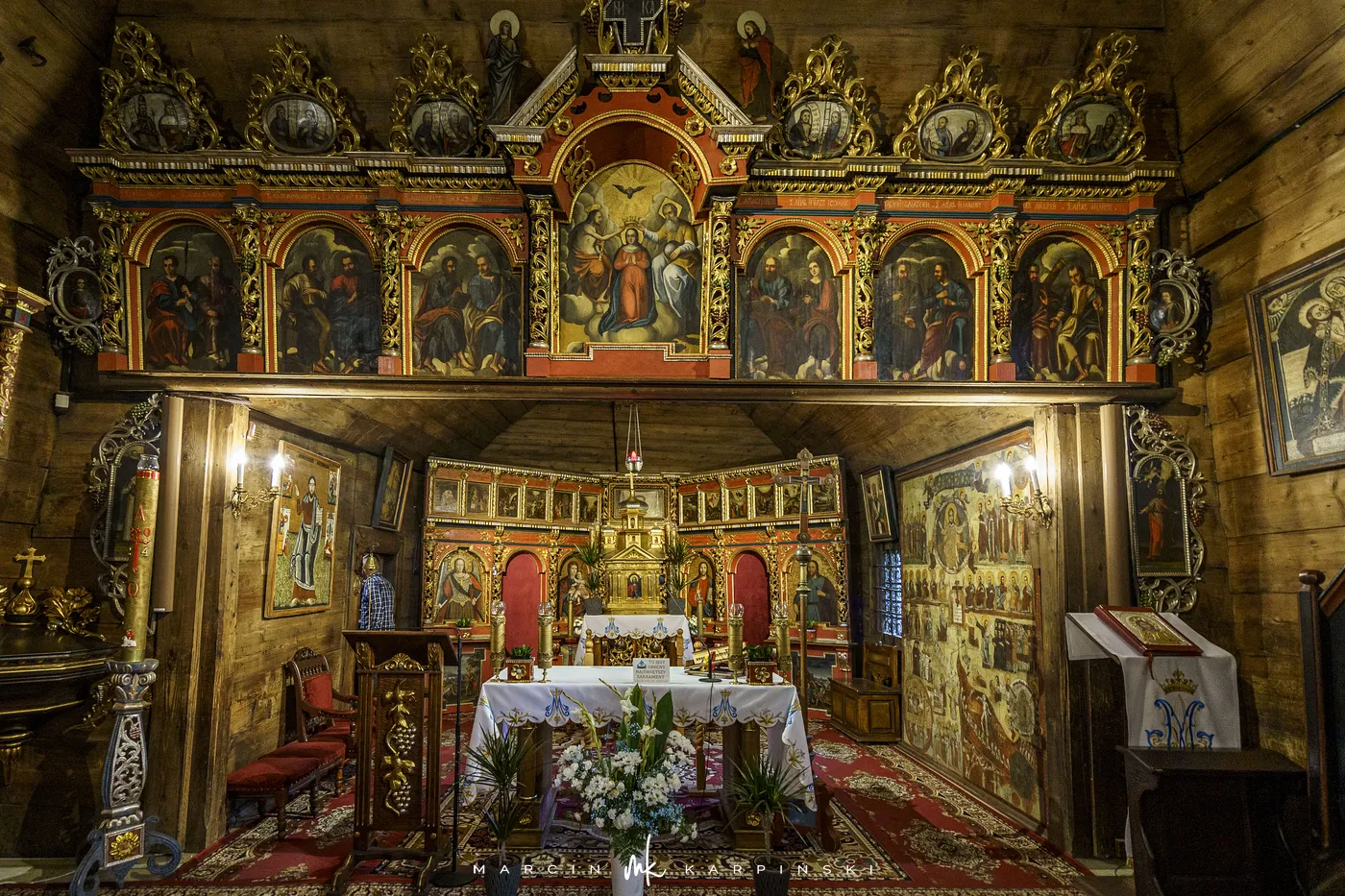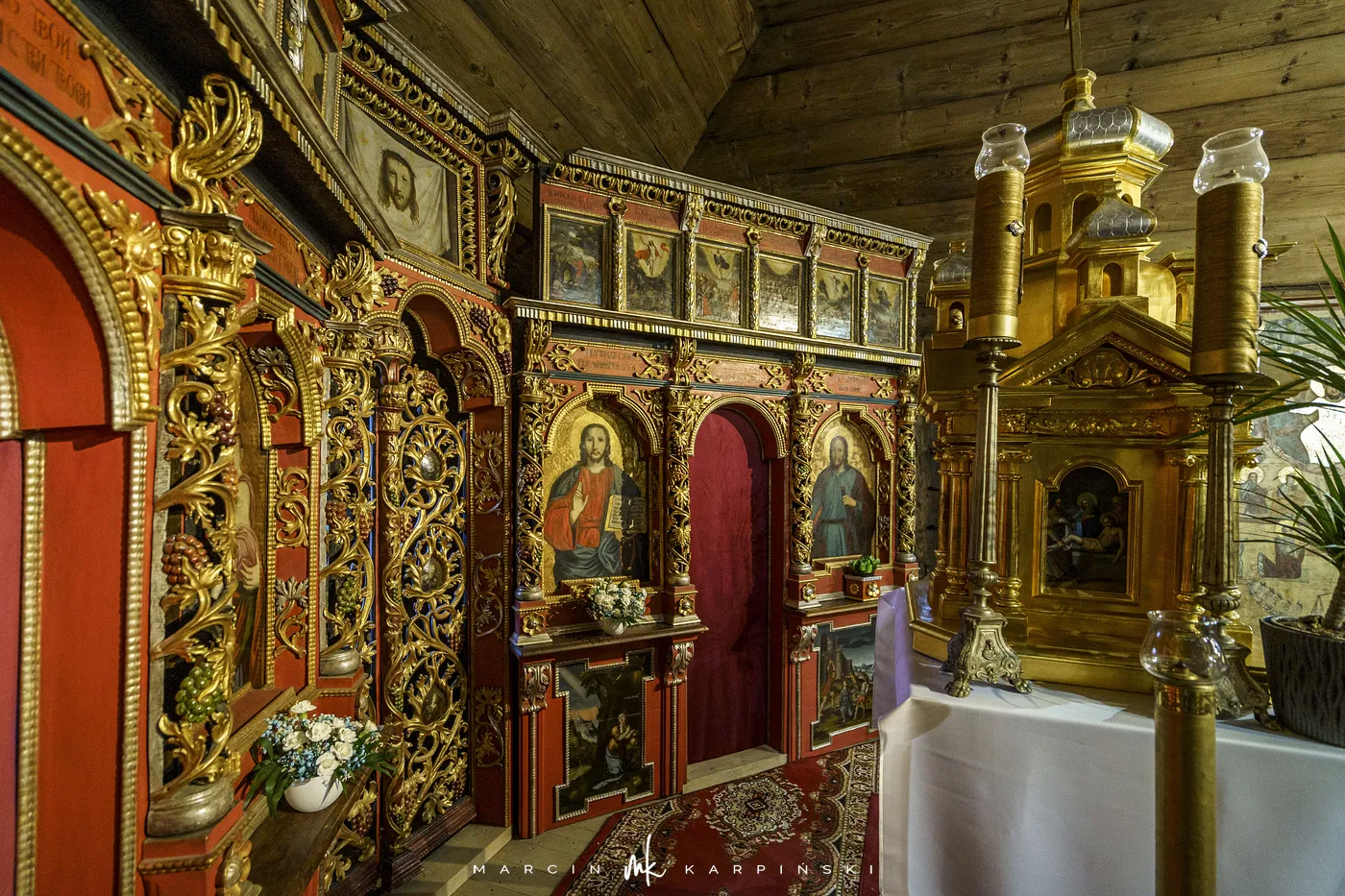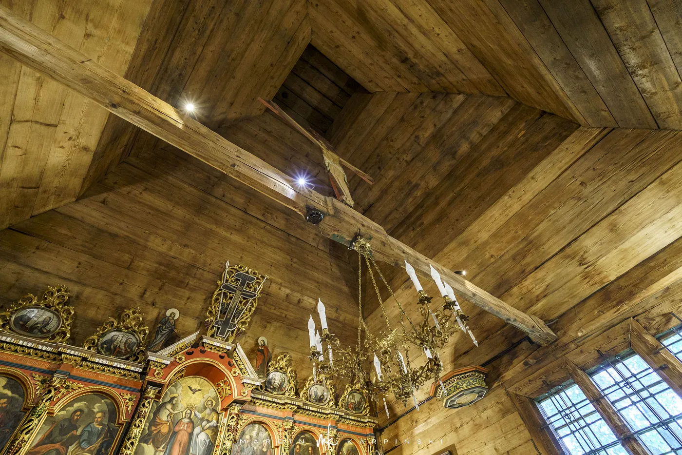 Cerkiew reprezentuje północno-zachodni typ cerkwi łemkowskiej, z prezbiterium skierowanym na wschód. Składa się z trzech części – babińca, nawy i prezbiterium. Wewnątrz uwagę przyciąga niezwykle bogata polichromia z 1607 roku, która ukazuje m.in. Boga Ojca, Ukrzyżowanie Chrystusa, Złożenie do Grobu, Wjazd Chrystusa na osiołku do Jerozolimy oraz Nadanie Mojżeszowi Dziesięciorga Przykazań. Ikonostas pochodzi z lat 1743–1744. Dzwon w wieży datowany jest na 1615 rok. Teren wokół cerkwi otacza kamienne ogrodzenie.
