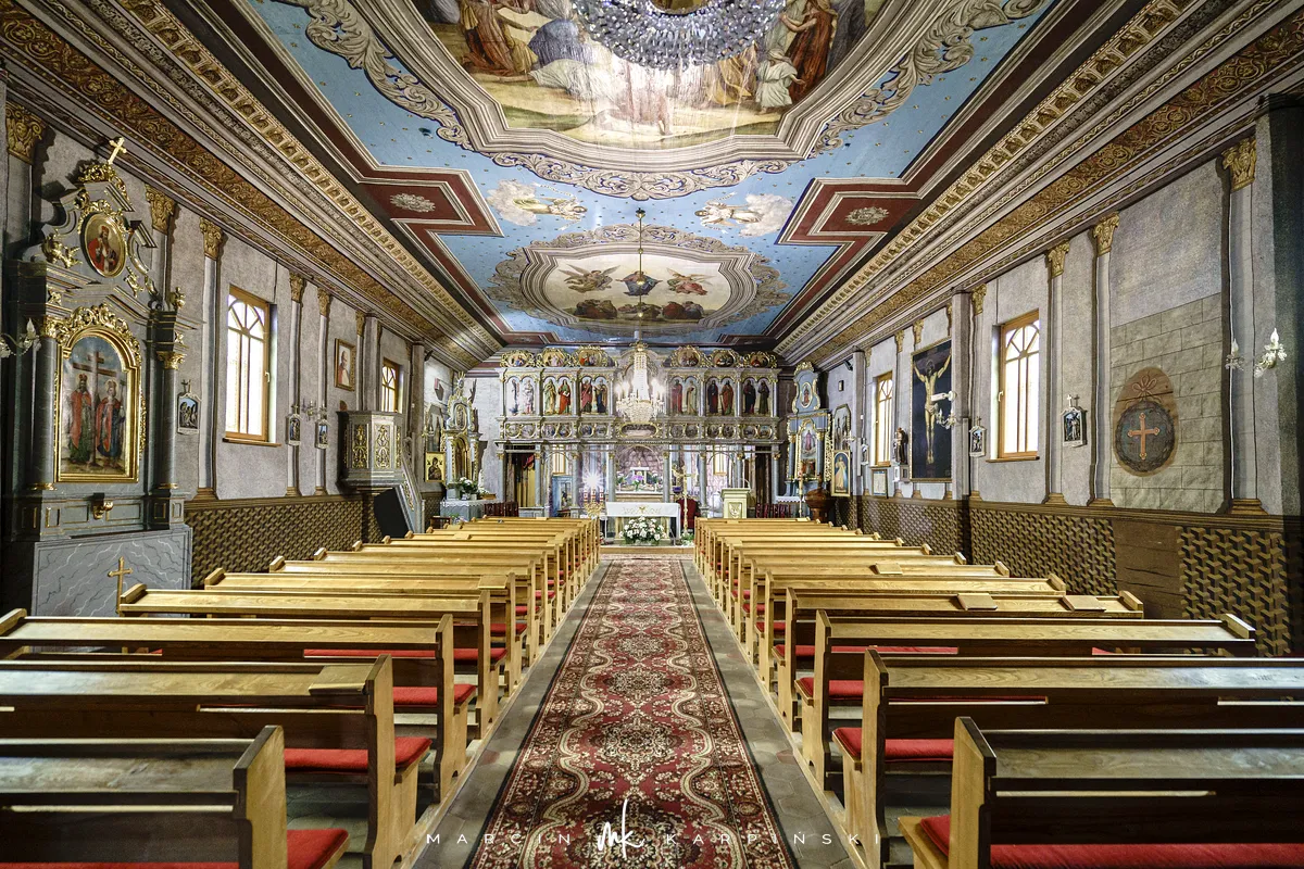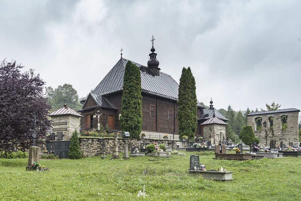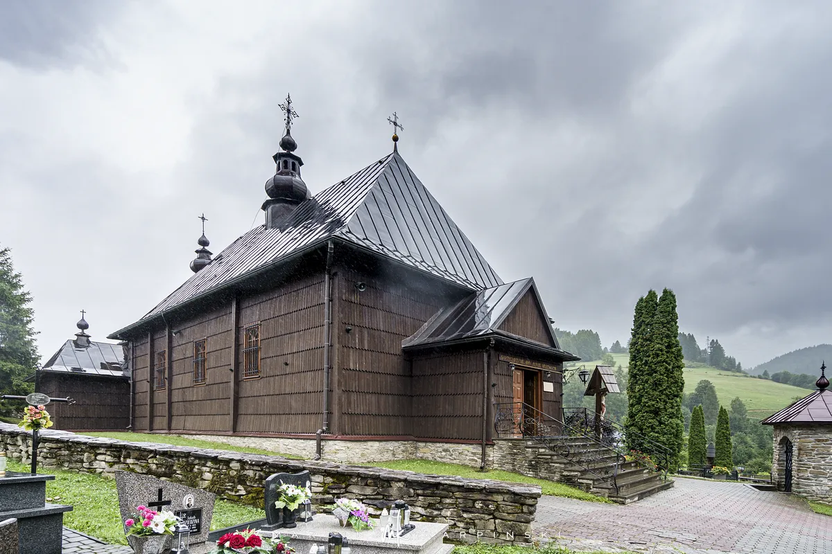 Świątynia, wzniesiona w 1821 roku, reprezentuje styl zachodniołemkowski. Początkowo była cerkwią greckokatolicką, jednak po II wojnie światowej, w wyniku akcji "Wisła" i przymusowych przesiedleń ludności łemkowskiej, przeszła pod zarząd Kościoła rzymskokatolickiego. Mimo zmiany przeznaczenia cerkiew zachowała wiele cech typowych dla wschodniego obrządku, takich jak ikonostas oraz trójdzielny układ przestrzenny.