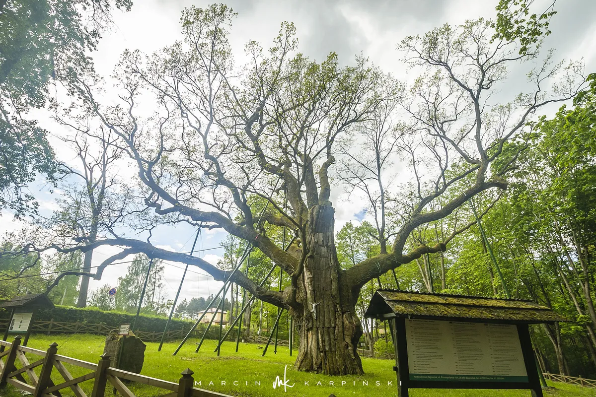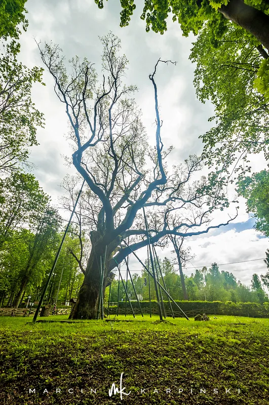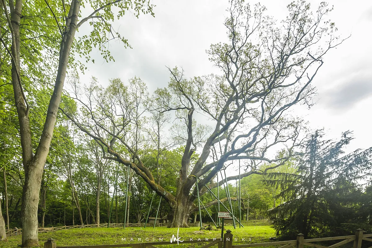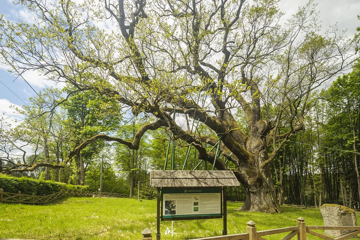 Dąb Bartek był jednym z punktów wycieczki, podczas której weszliśmy na dwa szczyty Korony Gór Świętokrzyskich: Altanę i Siniewską Górę oraz byliśmy w Muzeum Henryka Sienkiewicza w Oblęgorku.