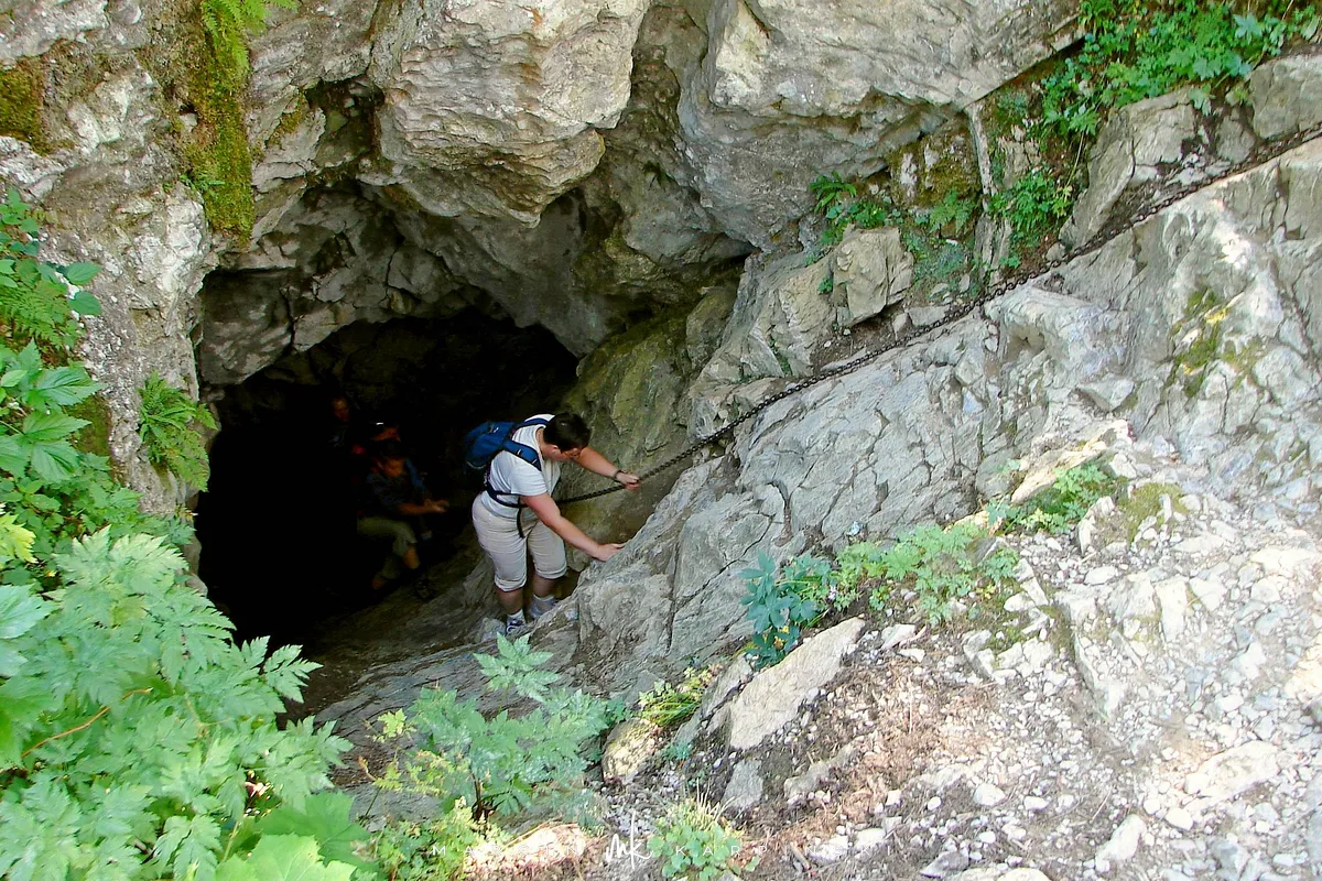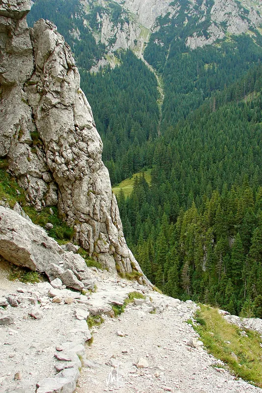 Po wyjściu z jaskini czeka nas zejście na główny zielony szlak. Idąc wzdłuż Potoku Kościeliskiego po około 20 minutach marszu, dojdziemy do odchodzącego w lewo żółtego szlaku. Szlak ten prowadzi przez wartą zobaczenia dolinkę Wąwóz Kraków - nazwaną tak, ze względu na podobieństwo jej skalnych ścian do miejskich kamienic. Wędrując dnem wąwozu dochodzimy do miejsca, z którego możemy zawrócić lub kontynuować wędrówkę jednokierunkowym już szlakiem w kierunku jaskini zwanej Smoczą Jamą. Dalej szlak pokonujemy wykorzystując metalową drobinkę i łańcuchy. Przejście przez jaskinię również zabezpieczone jest łańcuchami, a dodatkową trudnością są panujące w niej ciemności (warto posiadać ze sobą latarkę). Jaskinię można ominąć z lewej strony wspinając się po skalnej ścianie, która również ubezpieczona jest łańcuchami. Po wyjściu ze Smoczej Jamy schodzimy ponownie na zielony szlak. Do Jaskini Raptawickiej dojdziemy kierując się umocnionym łańcuchami szlakiem czarnym. Na dno jaskini zejdziemy stalową drabinką. Gdy wyjdziemy z jaskini, zejście na zielony szlak odbywa się tą samą drogą lub czerwonym szlakiem przez Jaskinię Mylną. Podążając dalej na południe zielonym szlakiem, po około pół godziny dojdziemy do Schroniska Ornak.