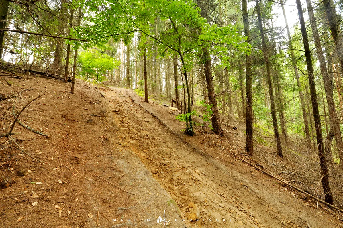 Wejście na szczyt rozpoczęliśmy zielonym szlakiem we wsi Góry Suche. Wieś leży u podnóża góry, wiec do pokonania pozostaje jedynie samo podejście. Mimo, że góra nie jest wysoka, to podejście jest dość strome. Jednak po kilku minutach jesteśmy już na górze. Po skręceniu w prawo i przejściu kilkuset metrów możemy zobaczyć lekkie kilkumetrowe przewyższenie, które według mapy jest szczytem. Sam szczyt nie leży przy szlaku, trzeba kilka metrów zejść w prawo. Szczyt jak i całe wzniesienie porośnięte jest lasem, tak więc oglądanie widoków nie jest możliwe. Idąc od punktu wejścia na górę kilkaset metrów w lewo żółtym szlakiem (choć na mojej mapie szlak ten ma kolor czerwony) dojdziemy do niewielkiej polany, z której można zobaczyć tereny położone na wschód od Fajnej Ryby.