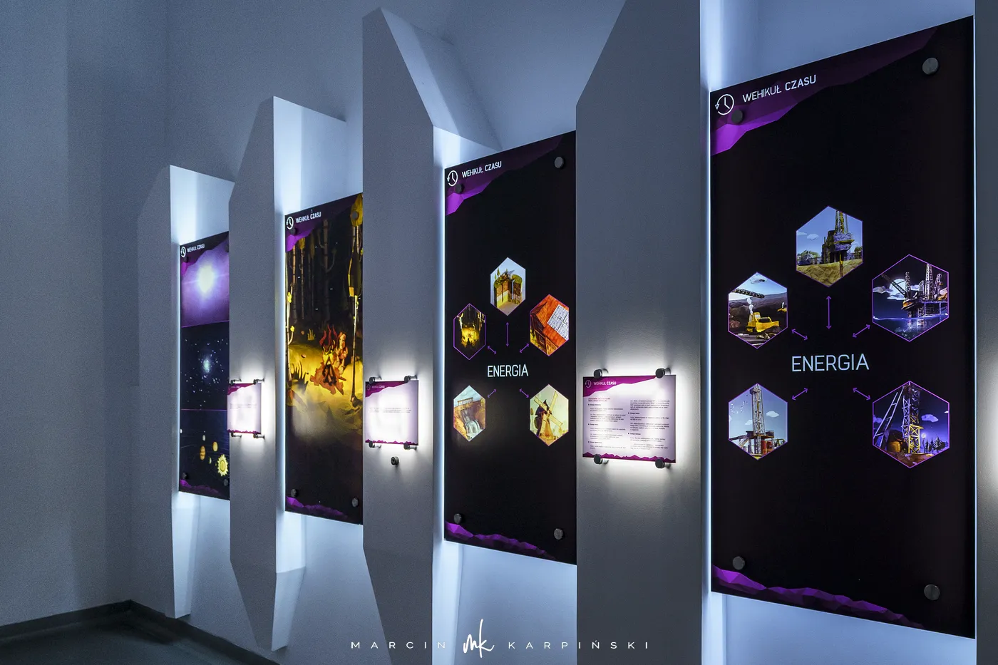 Ekspozycja skupia się na procesach wytwarzania energii elektrycznej z węgla brunatnego, a także przedstawia historię regionu bełchatowskiego jako ważnego ośrodka górnictwa i przemysłu energetycznego. Zwiedzający mogą poznać pełny cykl produkcji energii – od wydobycia węgla w kopalni odkrywkowej KWB Bełchatów, aż po jego spalanie w elektrowni. Dodatkowo mają możliwość zobaczenia maszyn i urządzeń wykorzystywanych w górnictwie odkrywkowym i energetyce oraz zapoznania się z zasadami ich działania.