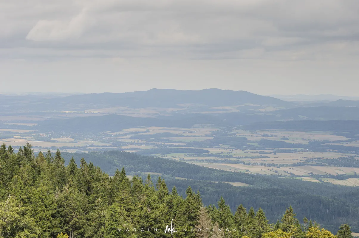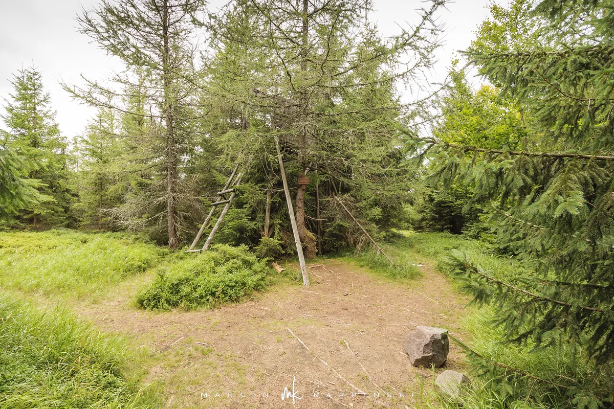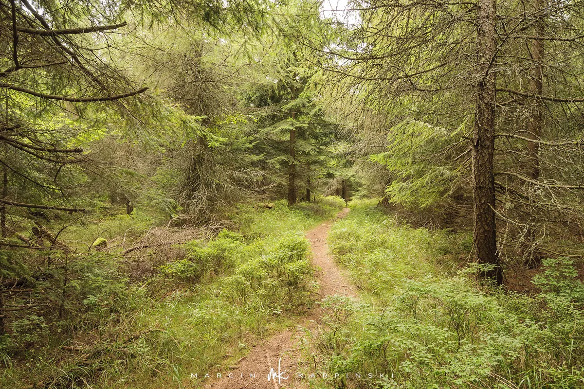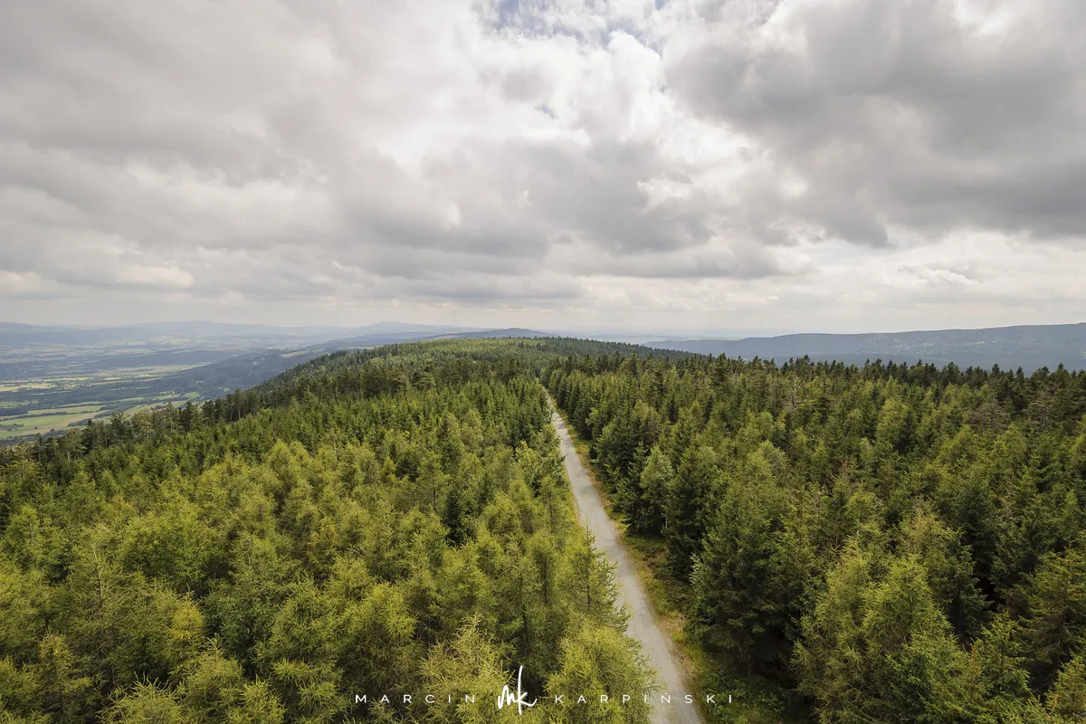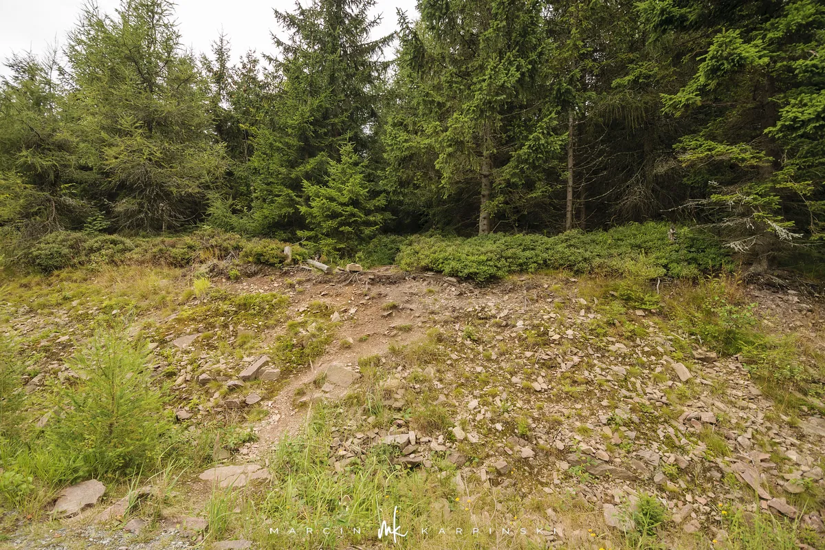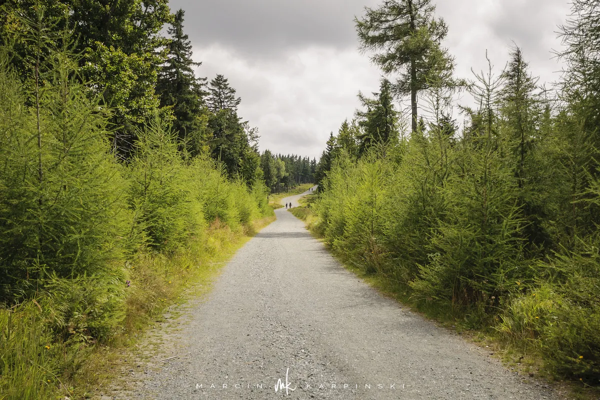 Na Jagodną można wejść dwiema trasami: od północy ze Schroniska PTTK Jagodna (808 m n.p.m.) lub od południa z Przełęczy pod Porębą (690 m n.p.m.). My wybraliśmy popularniejszy wariant spod schroniska. Samochód zostawiamy na dużym parkingu przy schronisku. Do samego budynku planujemy zajrzeć po zejściu ze szczytu. Często miejsce to bywa mylone z Przełęczą Spaloną, która faktycznie znajduje się kilkaset metrów na północny wschód. Od schroniska kierujemy się na południowy wschód, odnajdujemy oznaczenia niebieskiego szlaku, mijamy polanę i wchodzimy w las. Droga jest utwardzona i wygodna. Po kilkuset metrach szlak skręca na leśną ścieżkę, ale można również kontynuować marsz główną drogą, nie tracąc na widokach. Po drodze mijamy niewielkie wzniesienie o nazwie Sasin.