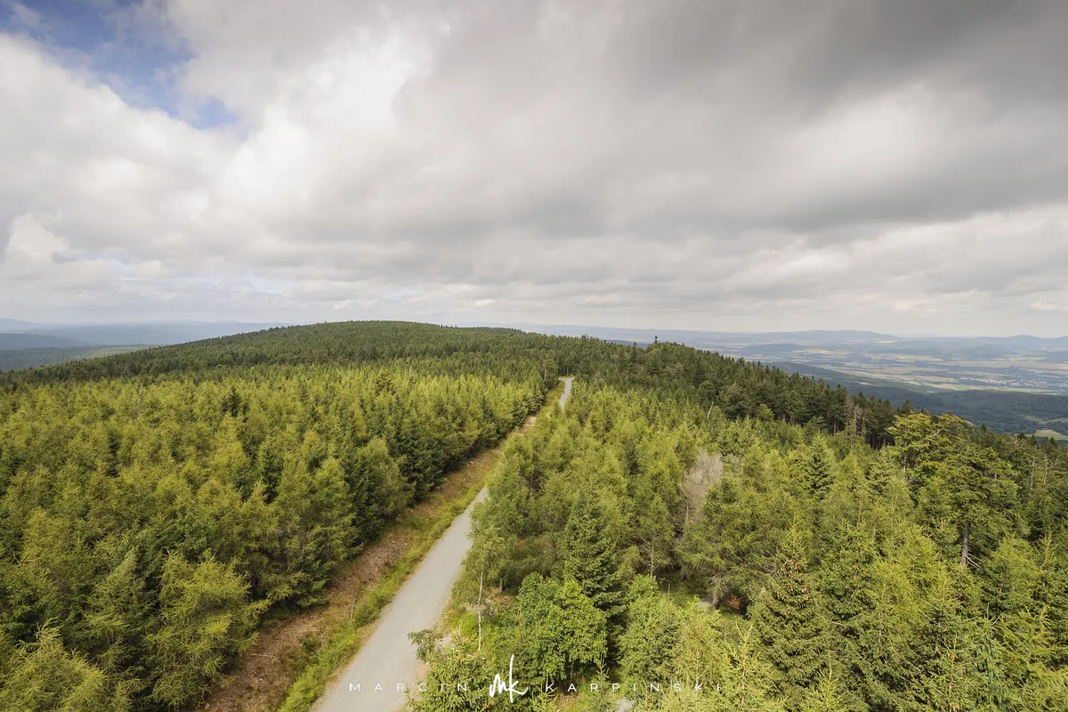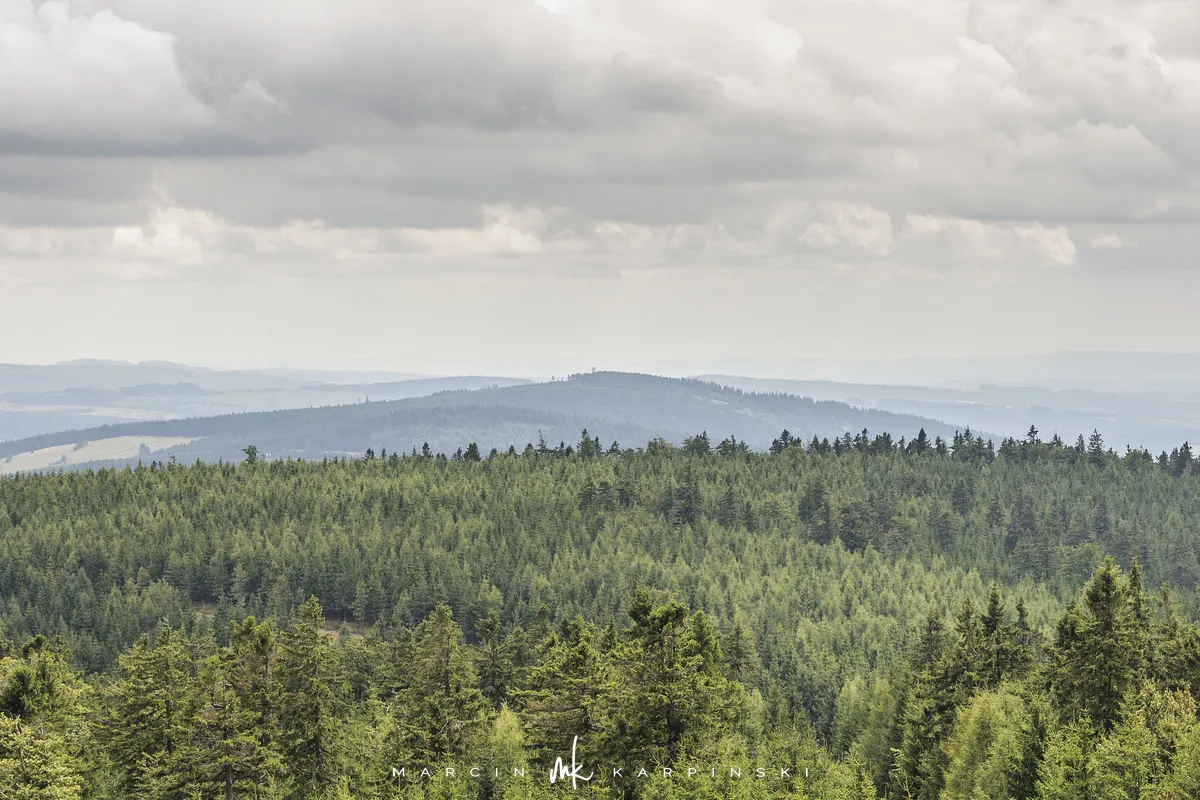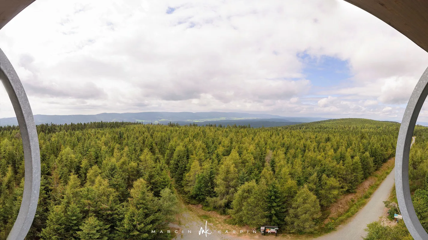 Po niespełna godzinie marszu przy słupku z numerem 158 opuszczamy szlak, skręcając w prawo na wąską leśną ścieżkę. Po kilku minutach docieramy na szczyt Jagodnej Północnej, który jest wyższym wierzchołkiem Jagodnej. Wierzchołek jest oznaczony, więc nie ma problemu z jego odnalezieniem. Po krótkim odpoczynku ruszamy dalej. Aby uniknąć powrotu tą samą drogą, wybieramy ścieżkę prowadzącą w lewo, dzięki czemu po około dziesięciu minutach ponownie wchodzimy na szlak. Z tego miejsca widać już szczyt wieży widokowej, do której docieramy po kilku minutach.