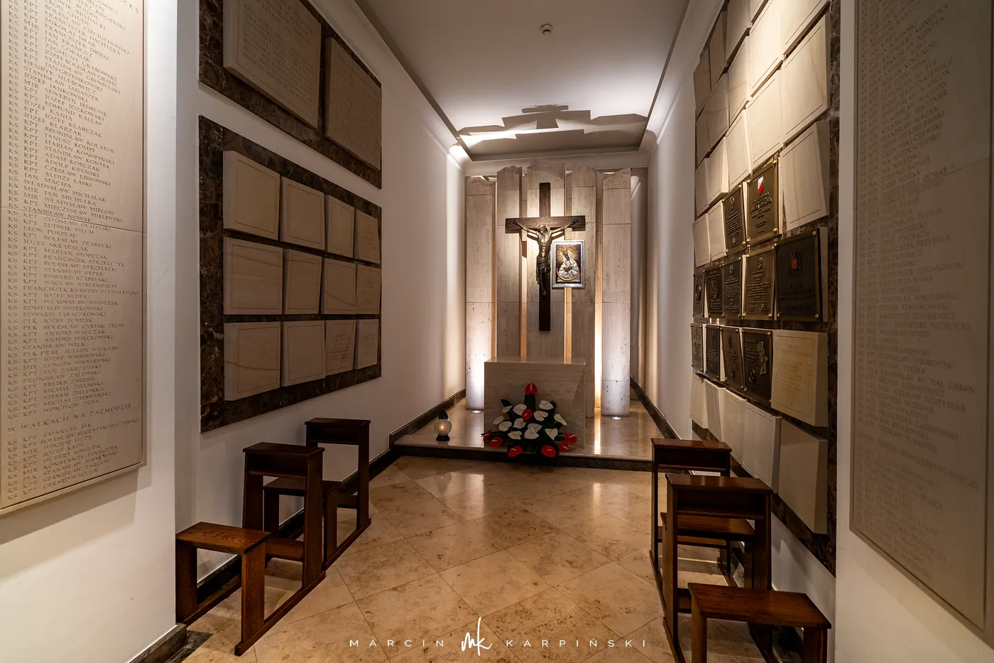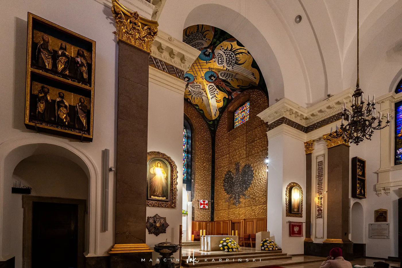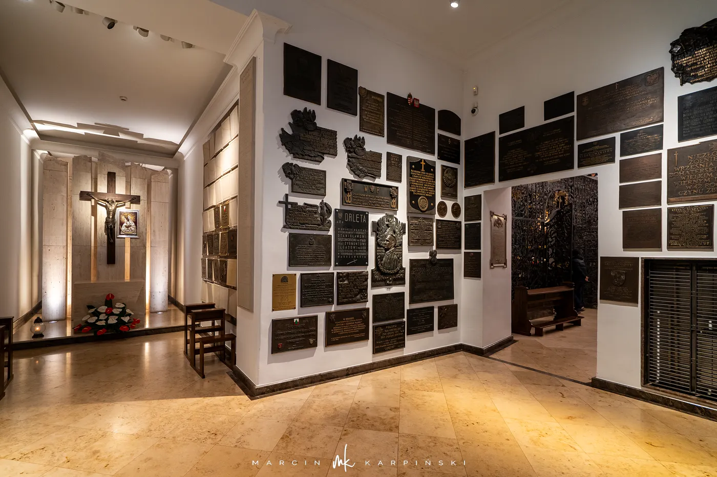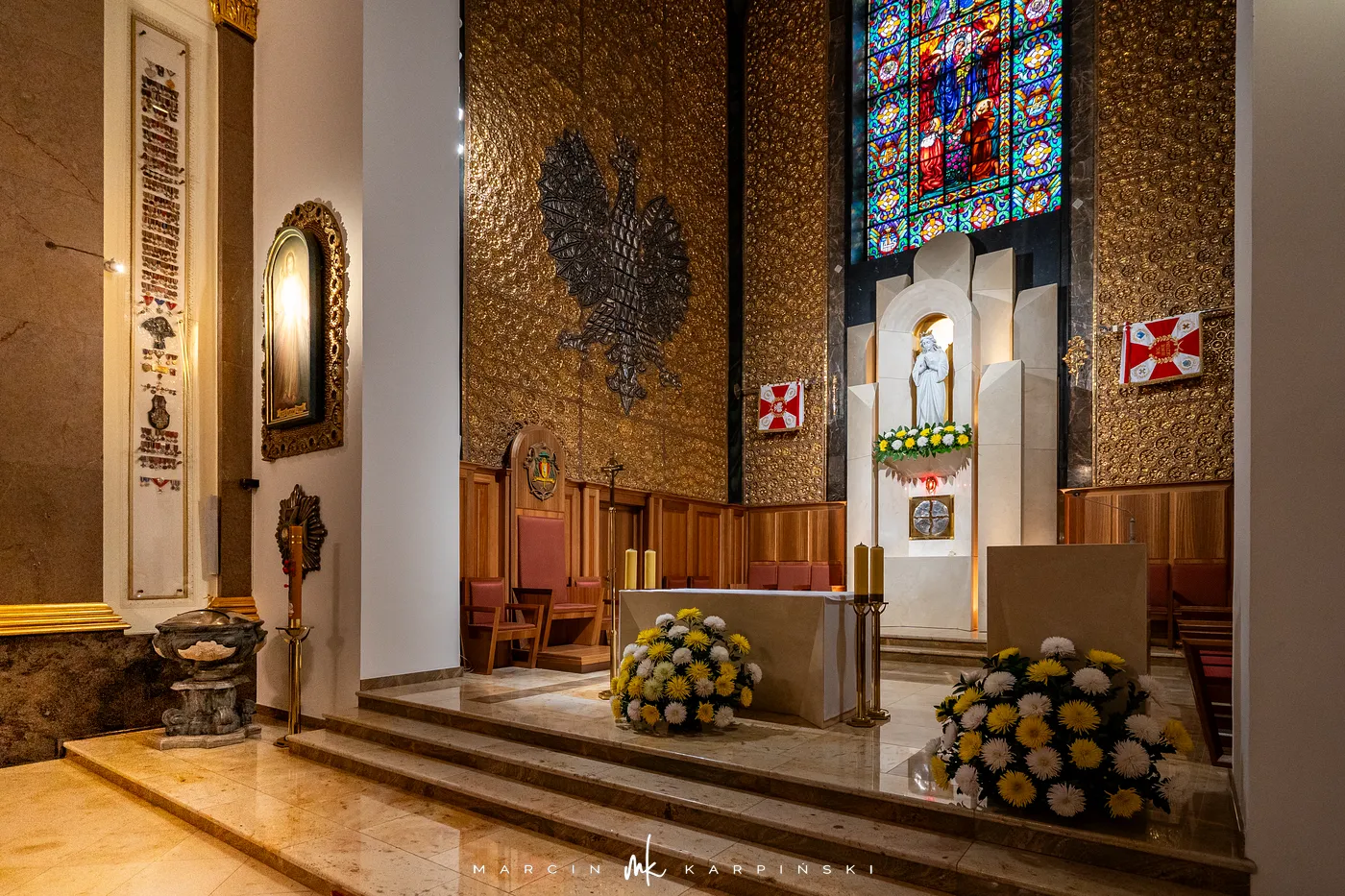 Wchodząc do środka, warto zwrócić uwagę na ołtarz główny z rzeźbą Matki Boskiej Hetmanki Żołnierza Polskiego. Bardzo poruszające są również boczne kaplice, szczególnie Kaplica Katyńska, upamiętniająca ofiary zbrodni z 1940 roku. W podziemiach katedry spoczywają wybitne postaci, w tym biskupi polowi, co sprawia, że świątynia jest nie tylko zabytkiem, ale i narodowym sanktuarium.