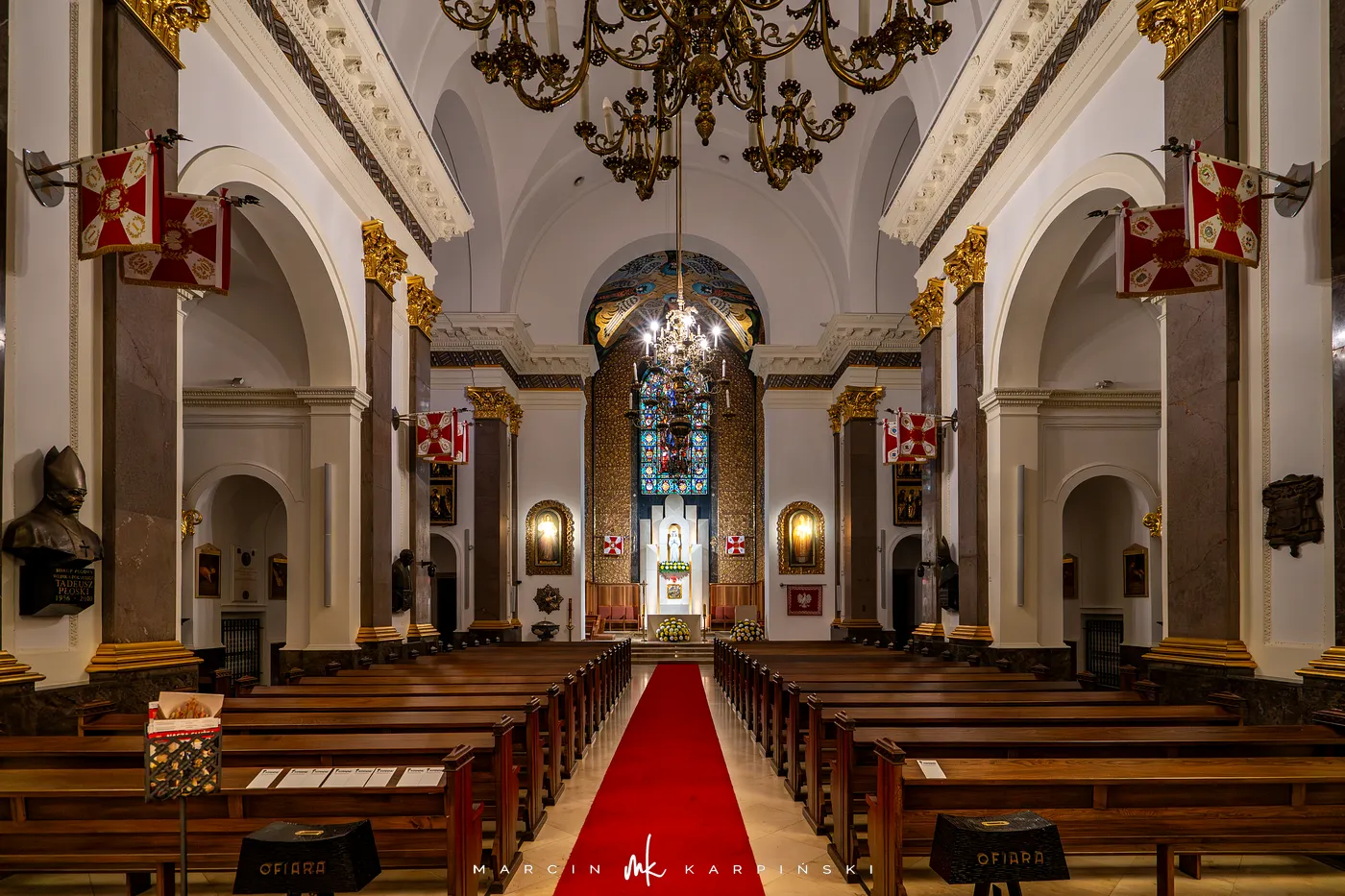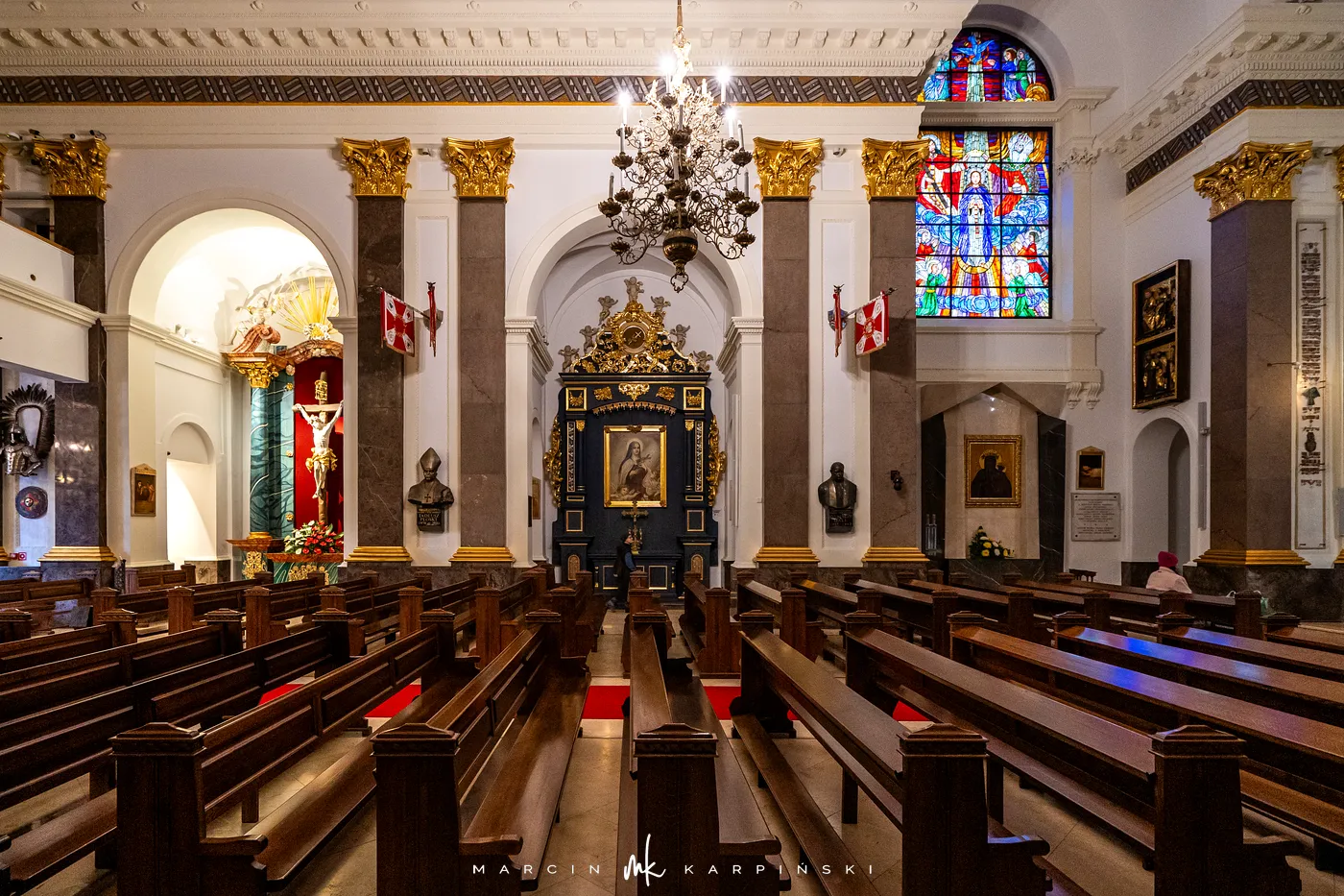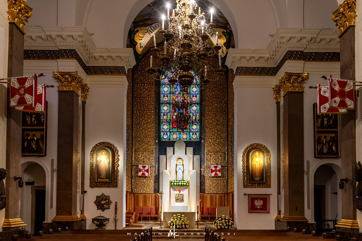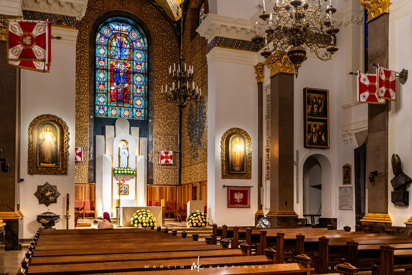 Wchodząc do środka, warto zwrócić uwagę na ołtarz główny z rzeźbą Matki Boskiej Hetmanki Żołnierza Polskiego. Bardzo poruszające są również boczne kaplice, szczególnie Kaplica Katyńska, upamiętniająca ofiary zbrodni z 1940 roku. W podziemiach katedry spoczywają wybitne postaci, w tym biskupi polowi, co sprawia, że świątynia jest nie tylko zabytkiem, ale i narodowym sanktuarium.