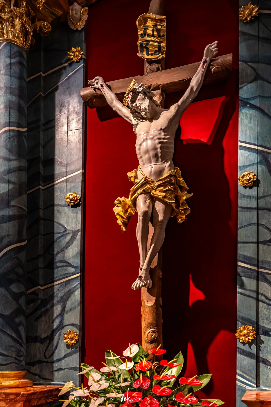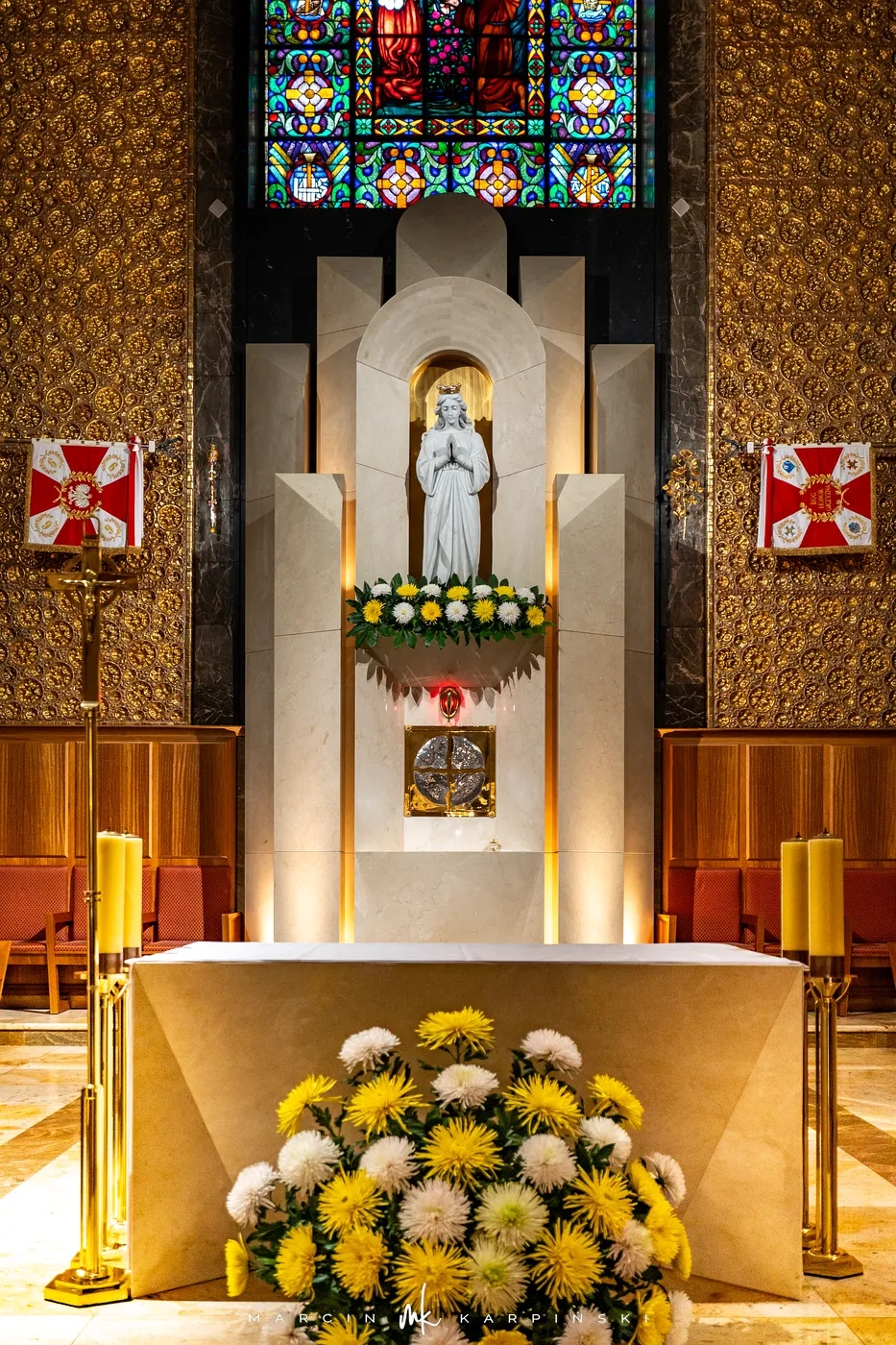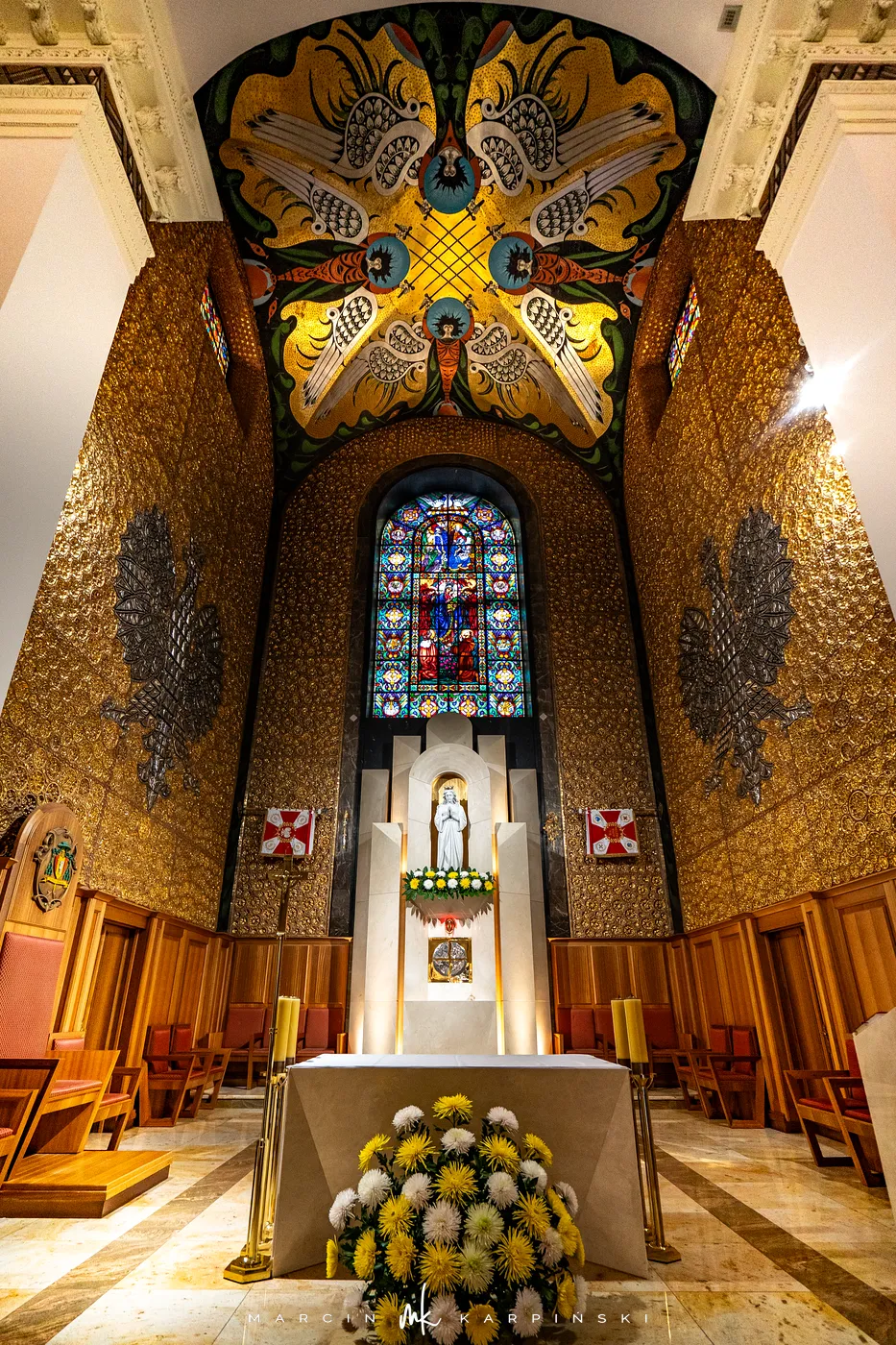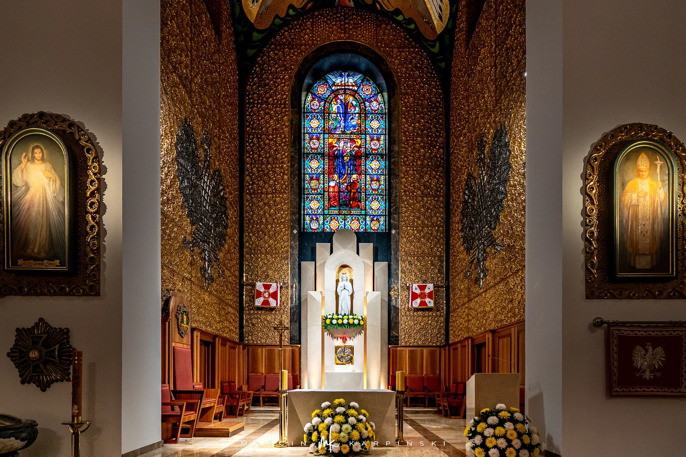 Wchodząc do środka, warto zwrócić uwagę na ołtarz główny z rzeźbą Matki Boskiej Hetmanki Żołnierza Polskiego. Bardzo poruszające są również boczne kaplice, szczególnie Kaplica Katyńska, upamiętniająca ofiary zbrodni z 1940 roku. W podziemiach katedry spoczywają wybitne postaci, w tym biskupi polowi, co sprawia, że świątynia jest nie tylko zabytkiem, ale i narodowym sanktuarium.