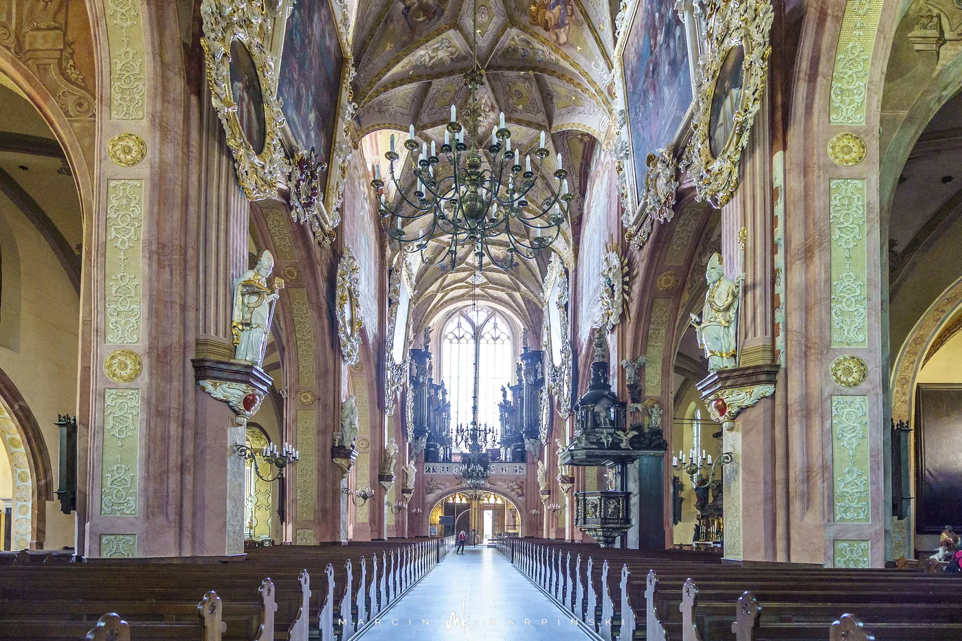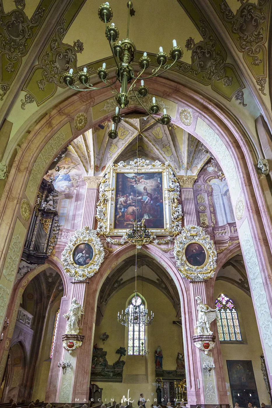 Świątynia przechodziła wiele historycznych zmian. W okresie reformacji była użytkowana przez protestantów, a następnie przekazana jezuitom, którzy nadali jej obecny barokowy wygląd. Mimo licznych remontów i historycznych zawirowań, katedra zachowała wiele oryginalnych elementów, łącząc styl gotycki z barokowym.