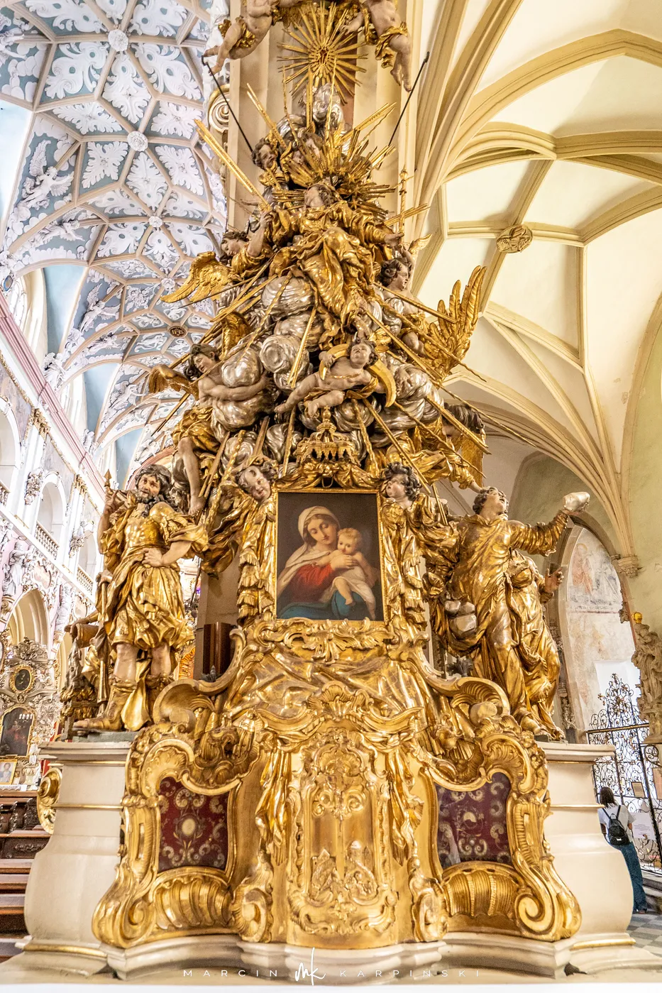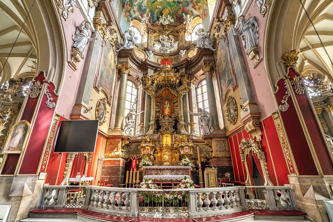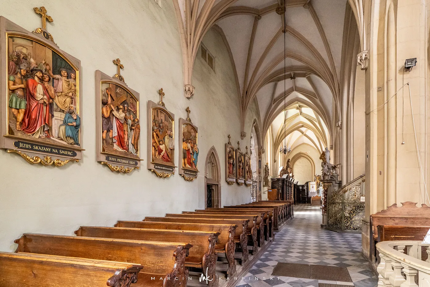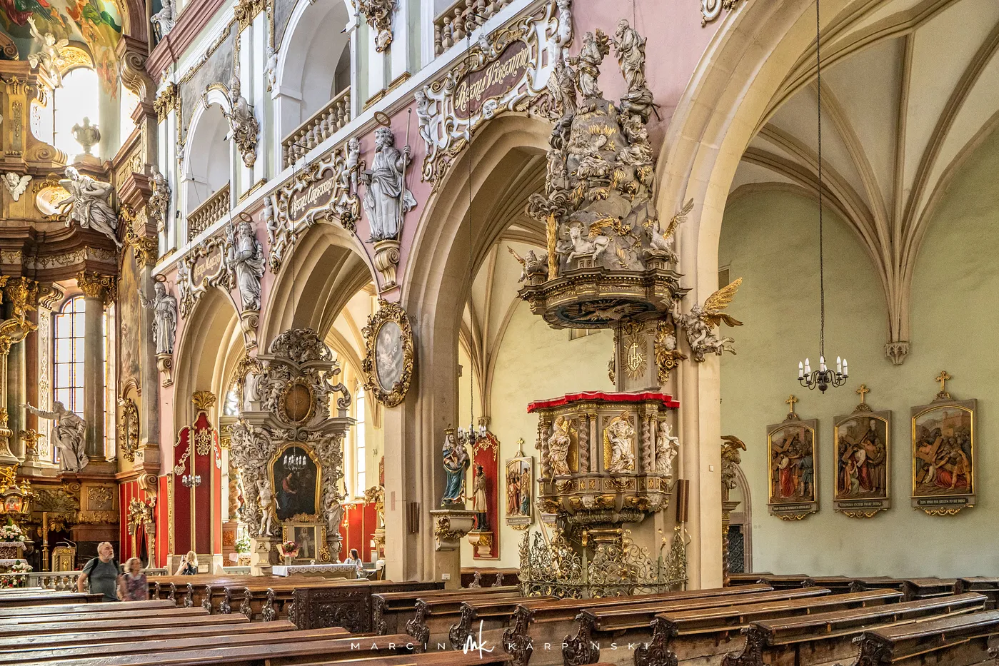 Świątynia ma formę trójnawowej bazyliki. Charakterystycznym elementem są dwie wieże - południowa zwana Białą i północna nazywana Czarną. Wnętrze otrzymało w XVIII wieku bogaty wystrój barokowy. Główny ołtarz, ambona i liczne rzeźby nadają mu monumentalny charakter. W kościele zachowały się także gotyckie detale. W 2016 roku została podniesiona do rangi kolegiaty.