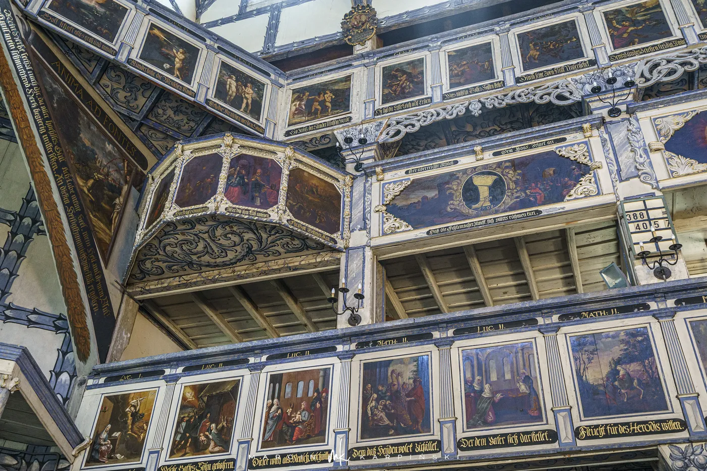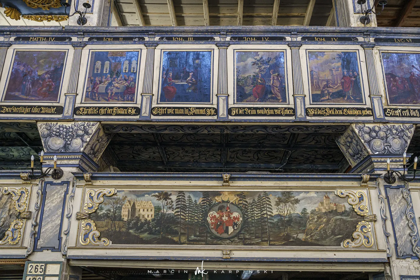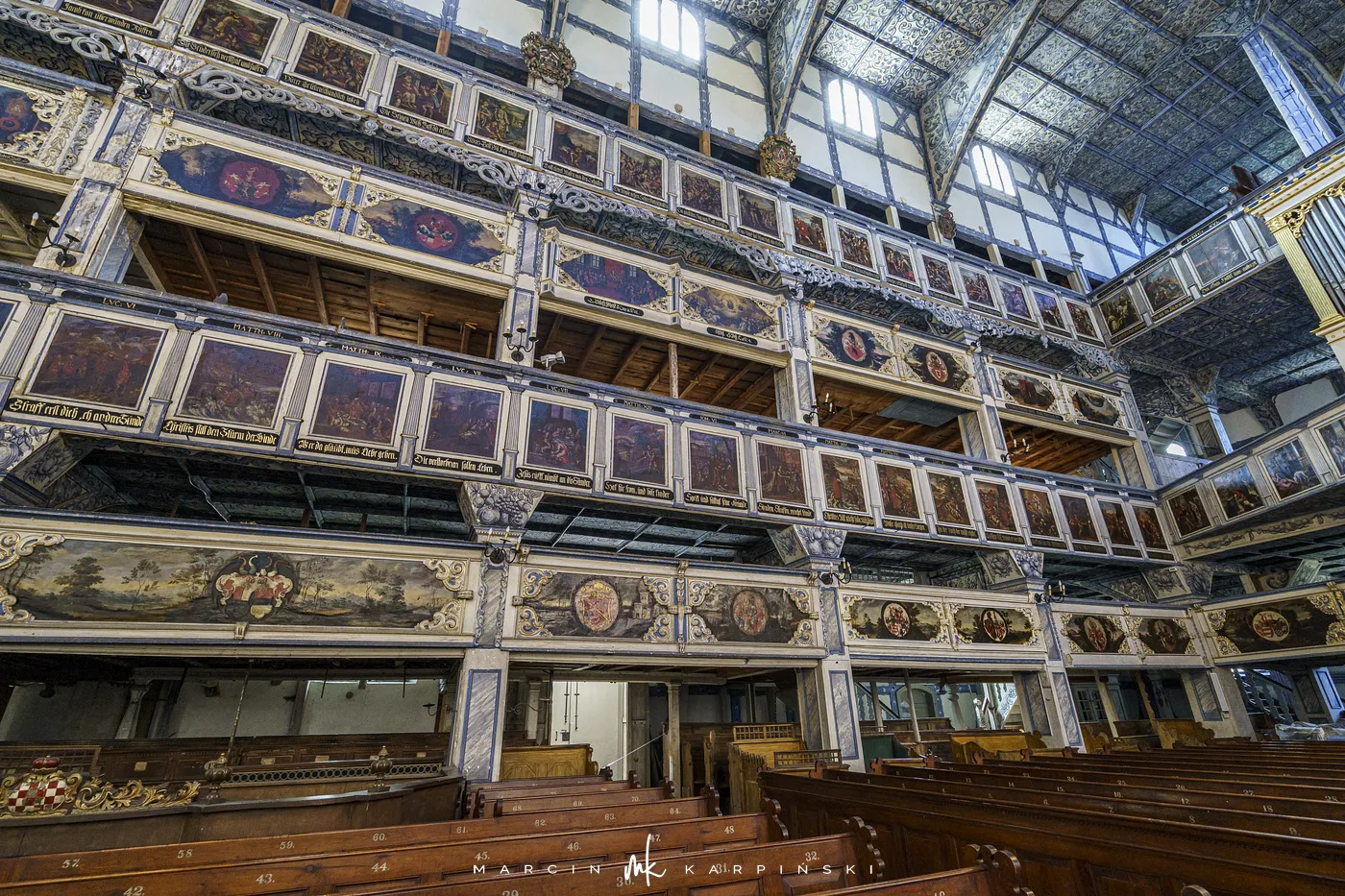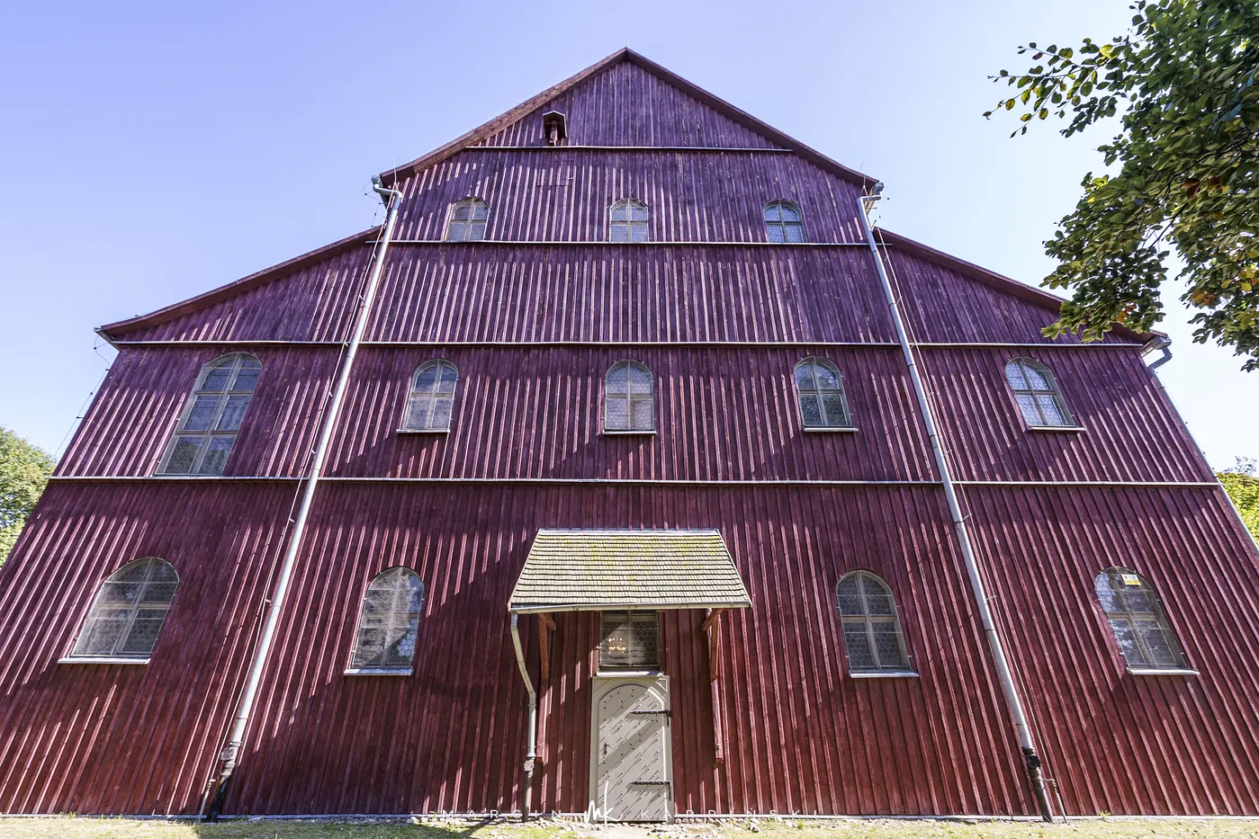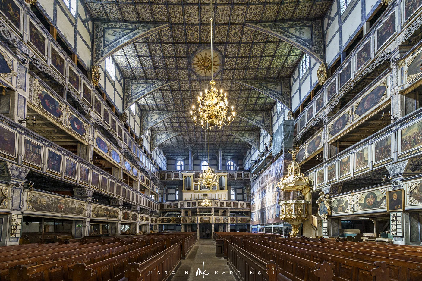 Budowa kościoła rozpoczęła się w 1654 roku, a jego wzniesienie trwało zaledwie jeden rok. Ze względu na ograniczenia narzucone przez cesarza Habsburgów, świątynia mogła być zbudowana jedynie z nietrwałych materiałów, takich jak drewno, glina i słoma, oraz znajdować się poza murami miasta. Pomimo tych restrykcji, kościół zachwyca swoją monumentalnością i bogatym barokowym wystrojem wnętrza. Budowla ma konstrukcję szachulcową i może pomieścić około 6 tysięcy wiernych. Wnętrze wyróżnia się bogatymi zdobieniami, w tym drewnianą amboną, ozdobnym ołtarzem oraz licznymi malowidłami i emporami z herbami fundatorów.