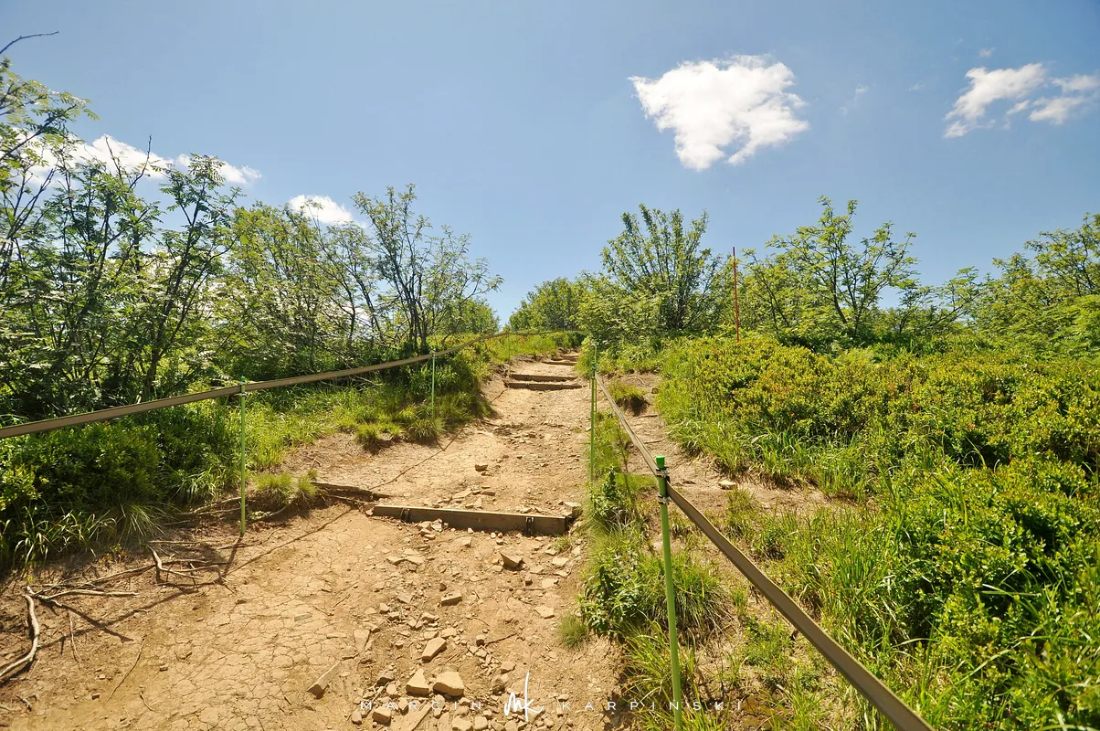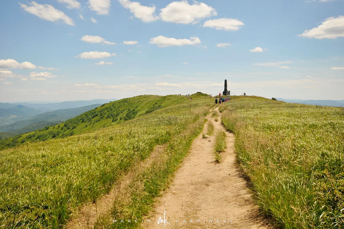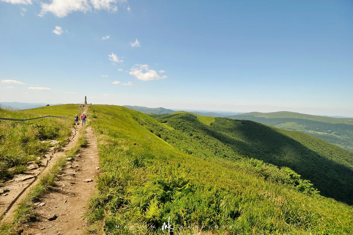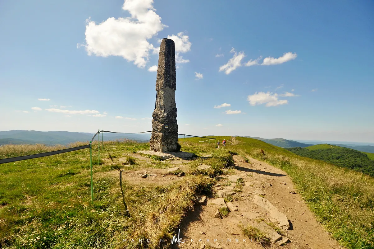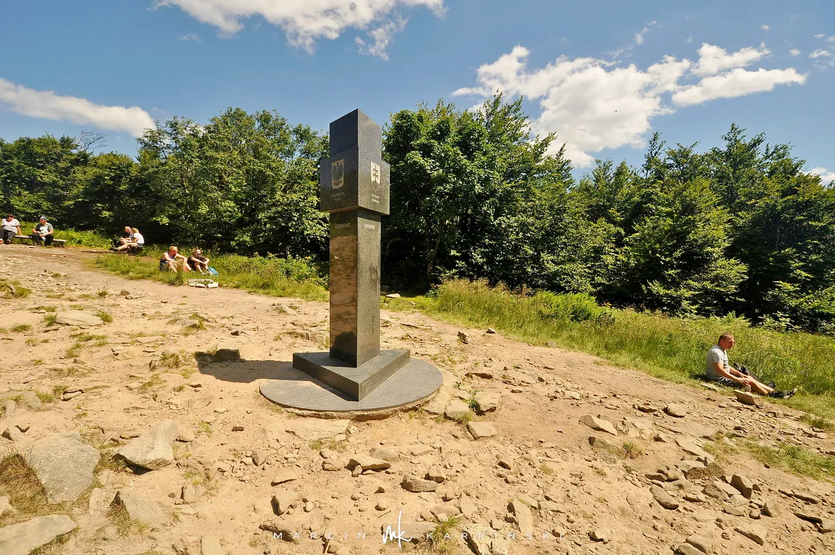 Jesteśmy na szczycie Wielkiej Rawki (1307 m n.p.m.). Przejście pomiędzy Małą a Wielką Rawką zajmuje nam niecałe 30 minut. Ze szczytu możemy podziwiać w kierunku północnym połoniny Caryńską i Wetlińską, na wschodzie Tarnicę i położone za nią ukraińskie Karpaty Wschodnie, natomiast na południu Krzemieniec.