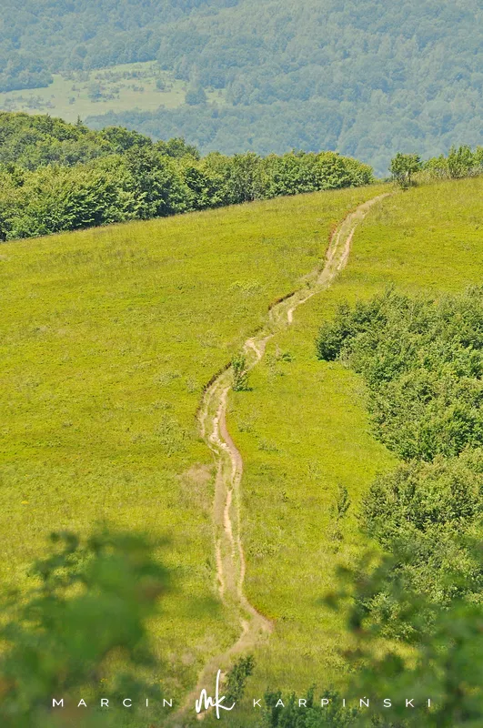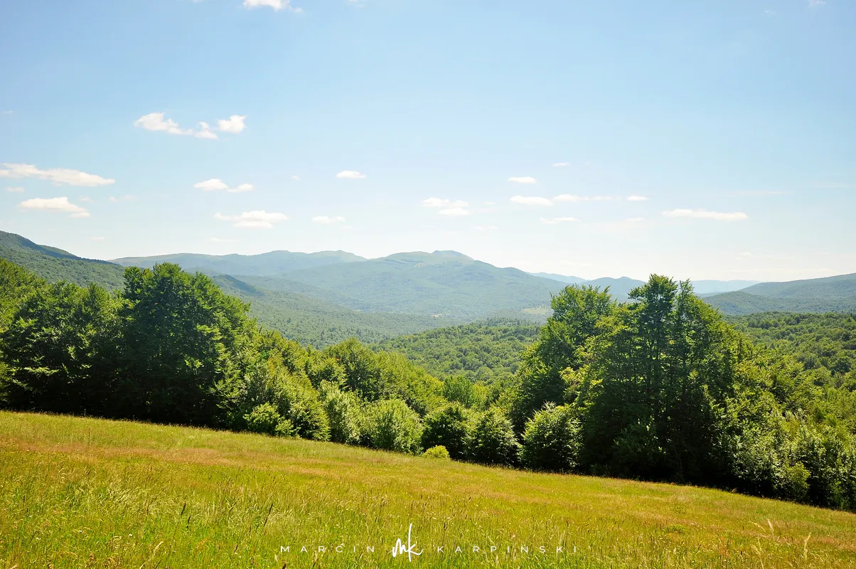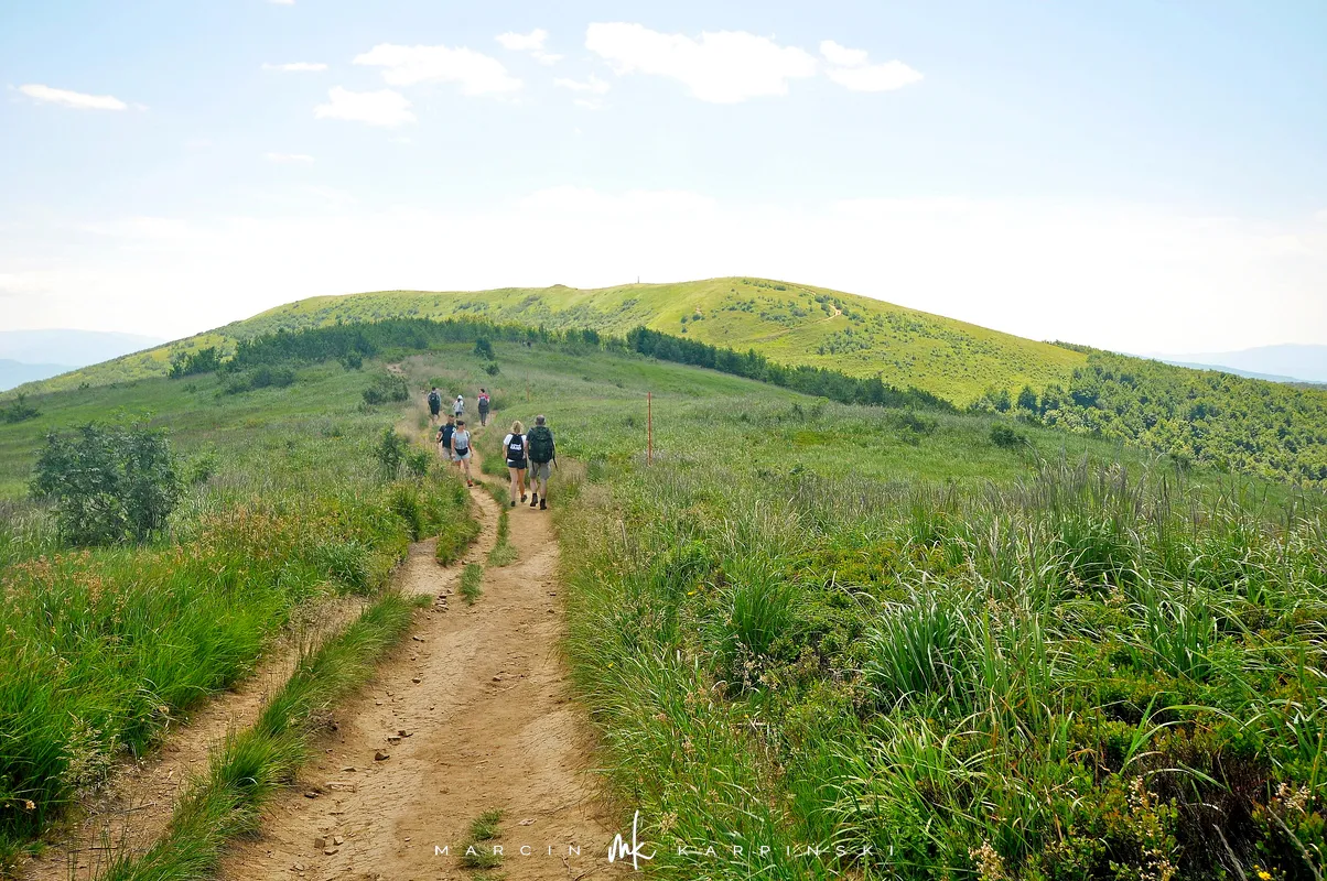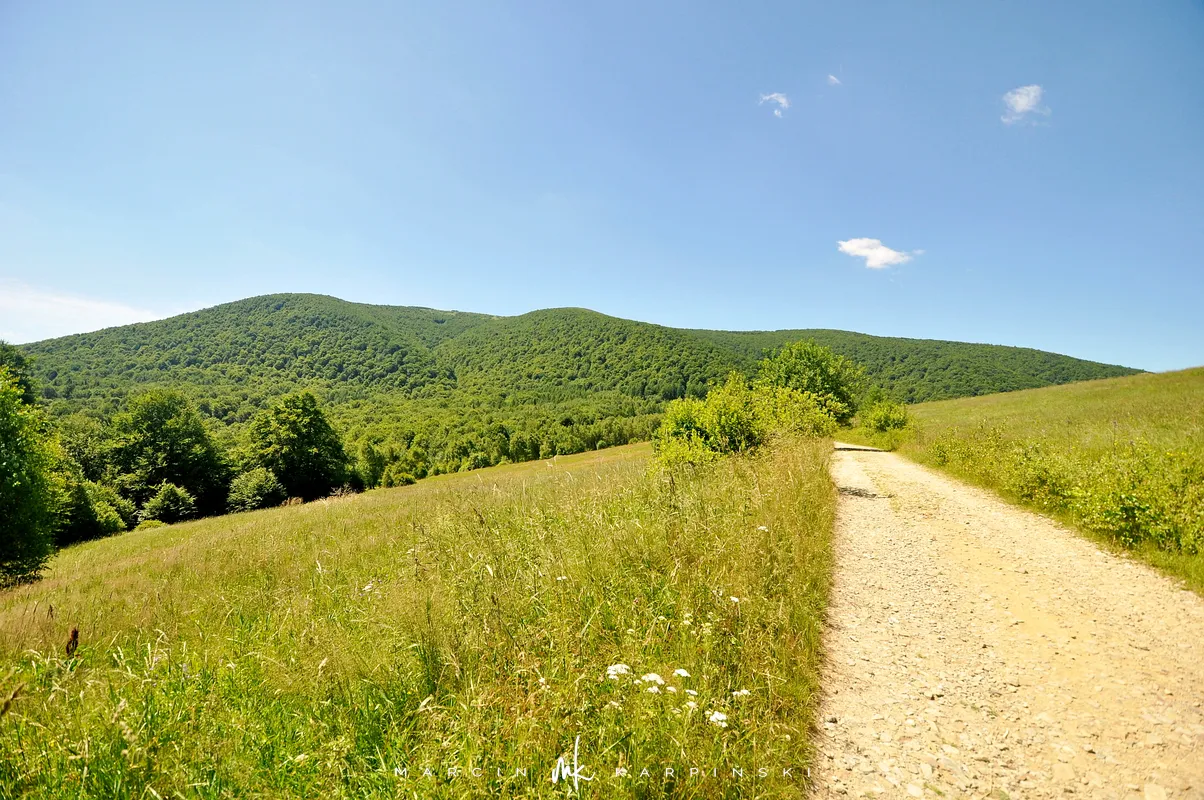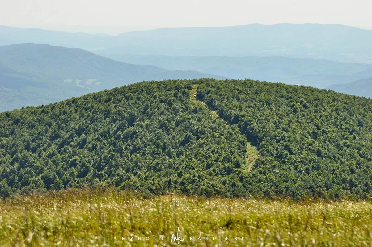 Jesteśmy na szczycie Wielkiej Rawki (1307 m n.p.m.). Przejście pomiędzy Małą a Wielką Rawką zajmuje nam niecałe 30 minut. Ze szczytu możemy podziwiać w kierunku północnym połoniny Caryńską i Wetlińską, na wschodzie Tarnicę i położone za nią ukraińskie Karpaty Wschodnie, natomiast na południu Krzemieniec.