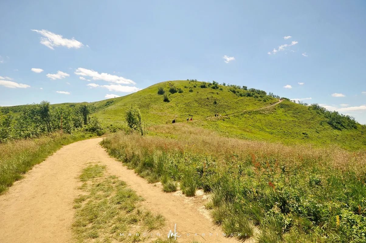 Dalszą wędrówkę kontynuujemy żółtym szlakiem, który zaprowadzi nas na Wielką Rawkę. Większość trasy biegnie w otwartym terenie. Jedynie w połowie odcinka wchodzimy na krótki czas w niewielkie zarośla i drzewa. Kilkaset metrów przed szczytem Wielkiej Rawki mijamy betonowy znak geodezyjny.