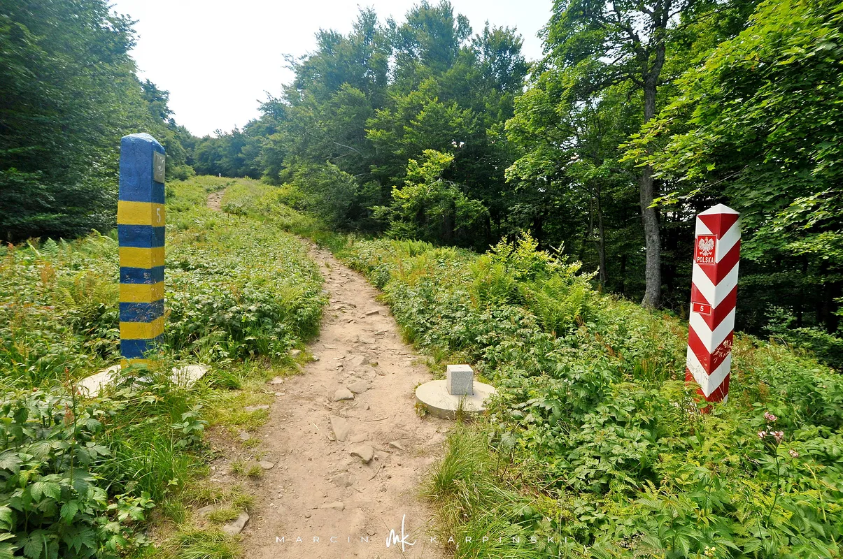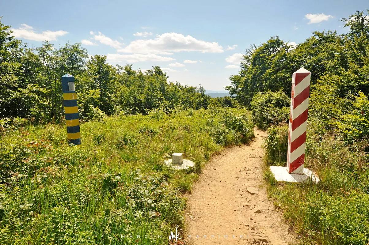 Mijamy szczyt i po kilkuset metrach dalszej wędrówki skręcamy w prawo na południe. Wchodzimy na niebieski szlak, który poprowadzi nas na Krzemieniec. Droga biegnie pomiędzy słupkami granicznymi Polski i Ukrainy. Szczyt Krzemieńca jest zalesiony. W miejscu styku granicy Polski, Słowacji i Ukrainy znajduje się granitowy obelisk w kształcie graniastosłupa o podstawie trójkąta. Na każdej z jego ścian znajduje się godło wraz z nazwą kraju i szczytu w języku danego państwa.