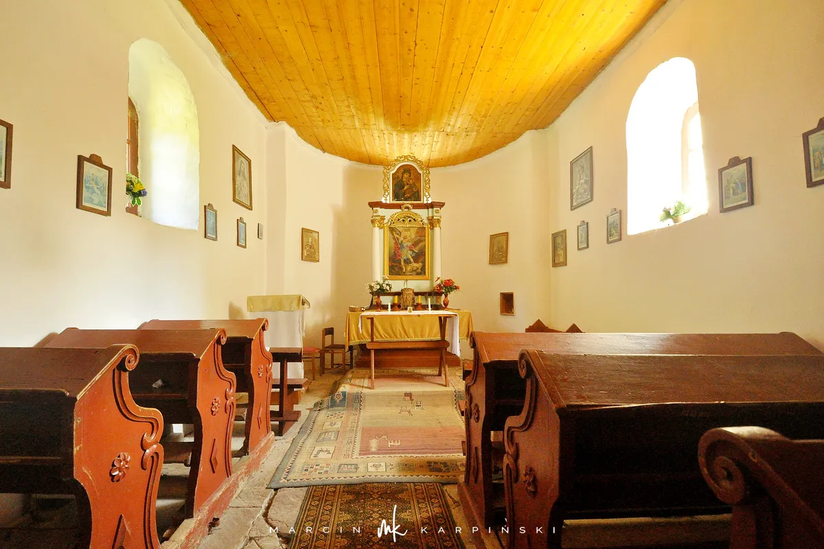Po krótkim odpoczynku wyruszamy w dalszą drogę, kierując się na wschód w stronę Ostrego Wierchu. Cały czas wzdłuż granicy obniżając wysokość dochodzimy do przełęczy Pułaskiego. Zdecydowaliśmy się nie wchodzić już na Ostry Wierch, tylko odbić wcześniej w lewo (dokładnie przy słupku granicznym 245/6) i kierować się w stronę Izb. Schodząc wśród łąk malowniczej doliny rzeki Białej, dochodzimy do pięknie położonej cerkwi pw. św. Michała Archanioła z 1796 roku. Cerkiew znajduje się na terenie nieistniejącej już dziś wsi Bieliczna. Wieś została opuszczona przez zamieszkujących ją Łemków na skutek powojennych wysiedleń. Spędziliśmy w tym urokliwym miejscu ponad pół godziny. Po kolejnych trzydziestu minutach jesteśmy w miejscu skąd rozpoczeliśmy wyprawę.