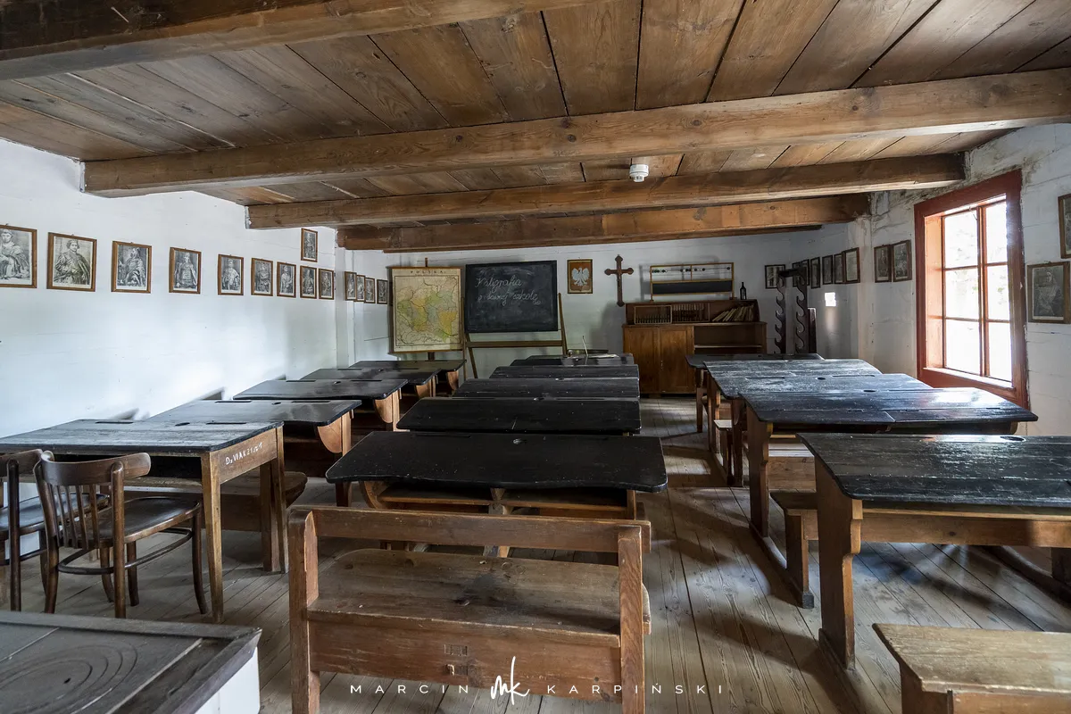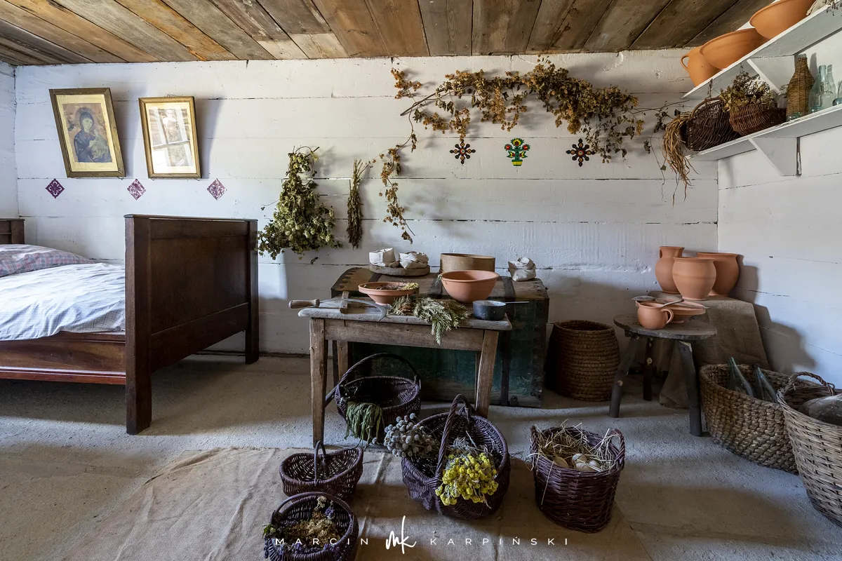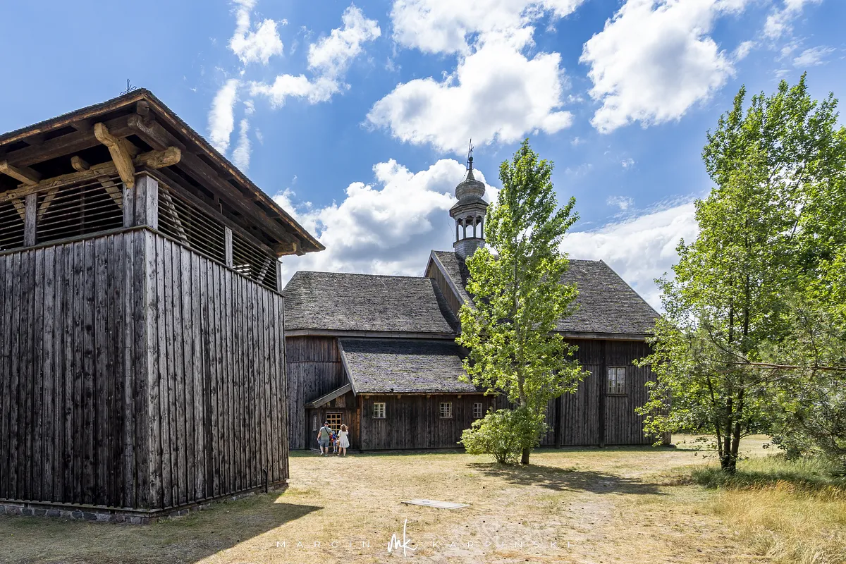 Skansen gromadzi zabytkowe obiekty wiejskiej architektury z XIX i początku XX wieku. Na jego terenie znajdują się m.in.: chałupy i zagrody chłopskie, drewniany kościół z 1758 roku, dzwonnica, wiatrak, kapliczki oraz liczne budynki gospodarcze.