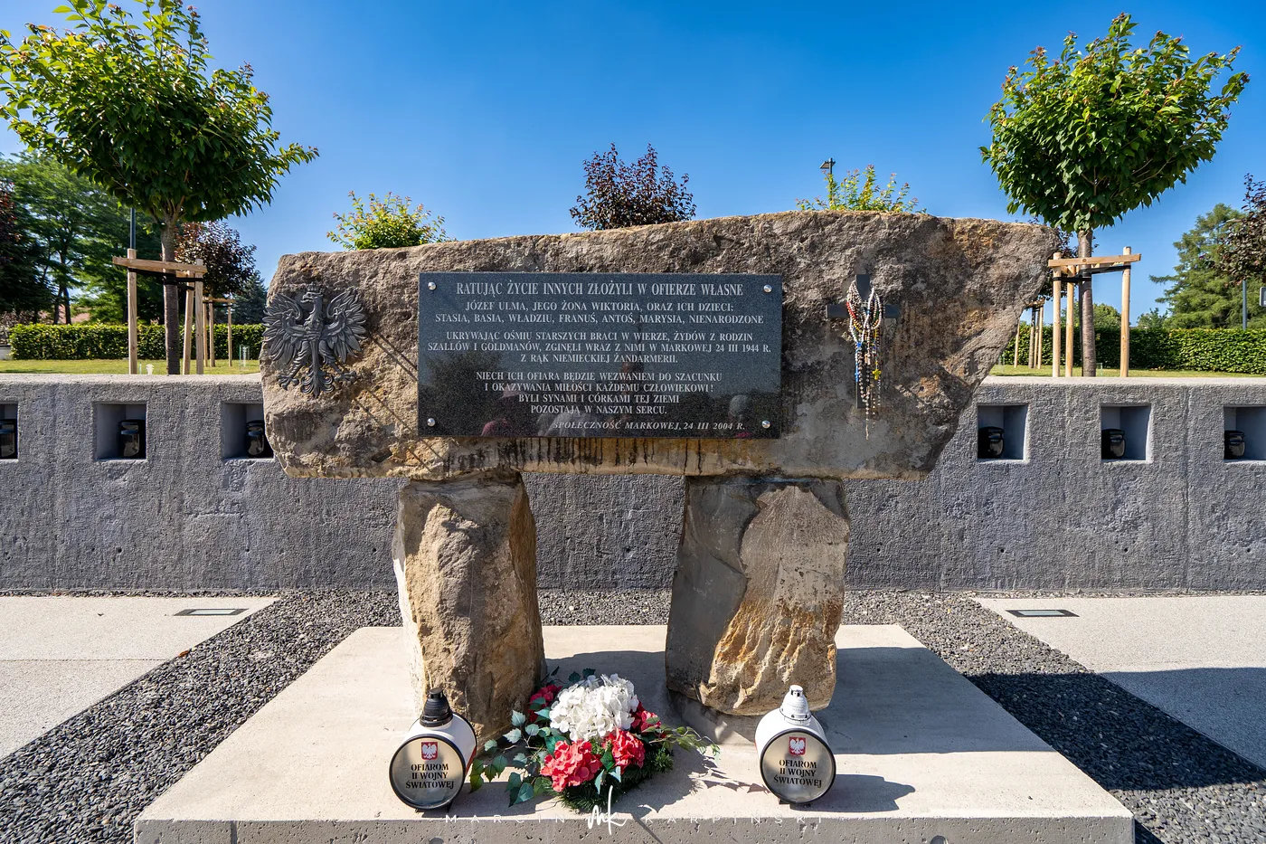 Podczas niemieckiej okupacji Rodzina Ulmów z Markowej dała schronienie ośmiorgu Żydom, ratując ich przed pewną śmiercią. Niestety, ich miejsce ukrycia zostało odkryte. 24 marca 1944 roku Niemcy dokonali brutalnej egzekucji. Najpierw zamordowali ukrywanych Żydów, a następnie Józefa i Wiktorię Ulmów, będącą w siódmym miesiącu ciąży, wraz z ich sześciorgiem dzieci.