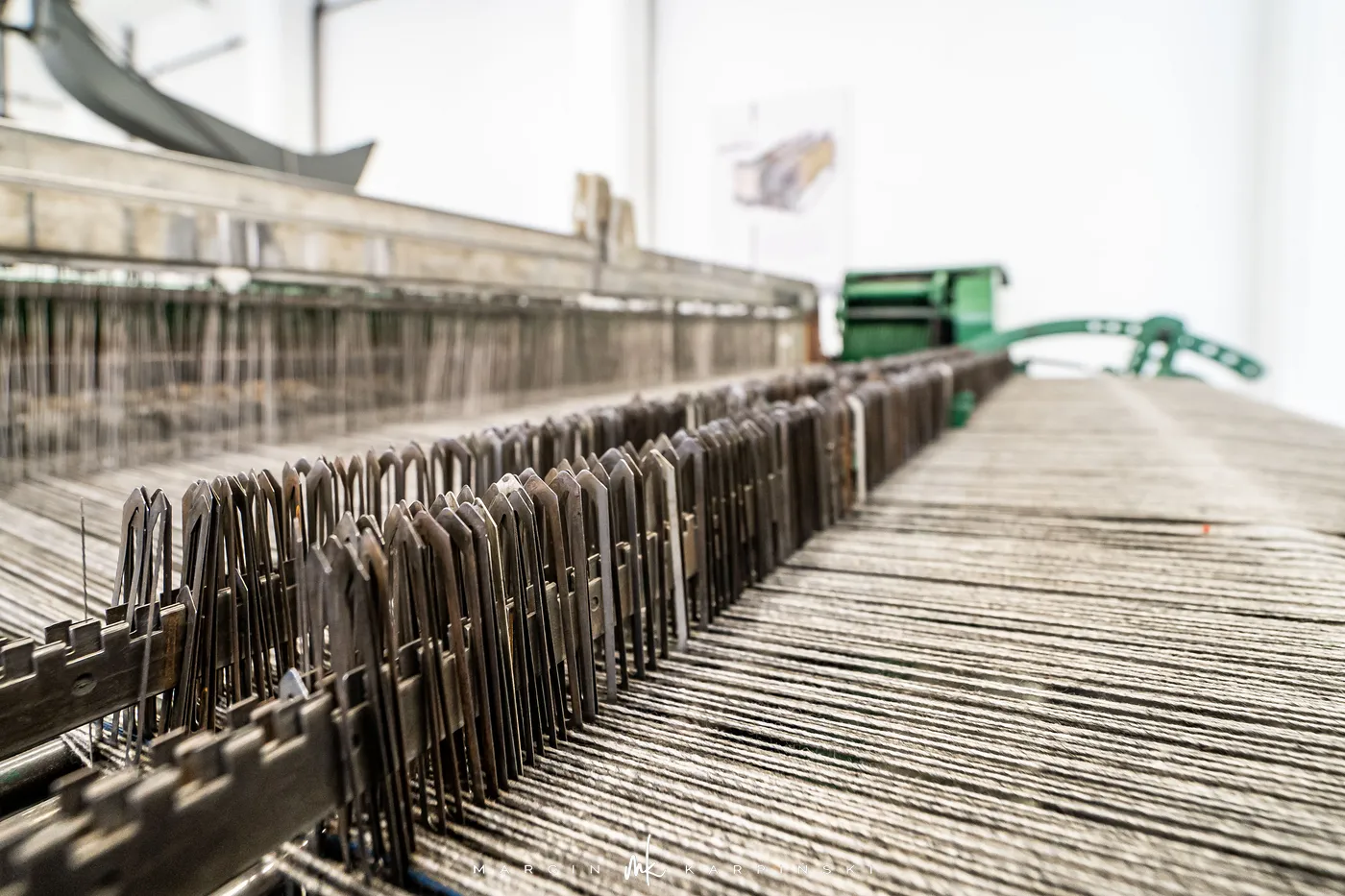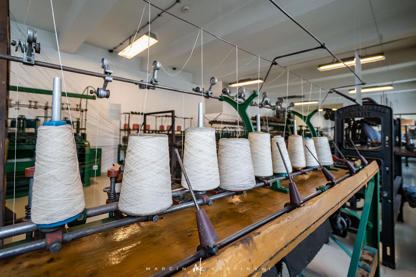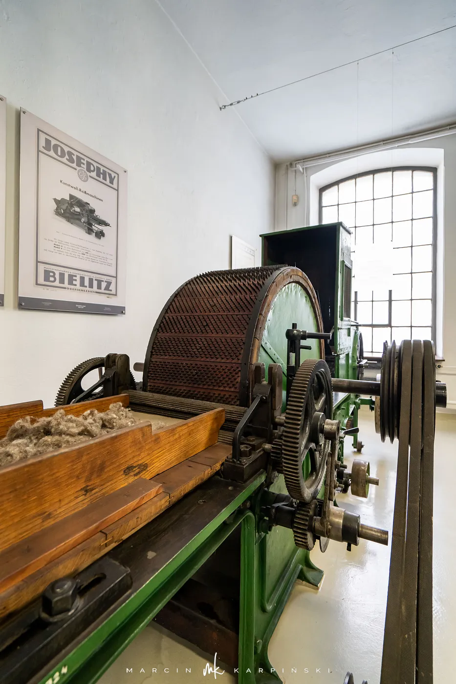 Druga część ekspozycji, „Wilk, selfaktor, postrzygarka”, to unikatowa kolekcja maszyn i urządzeń, które niegdyś napędzały bielskie fabryki. Zgromadzone w salach odtwarzających przędzalnię, tkalnię i wykończalnię eksponaty dokumentują pełen cykl produkcji tkanin wełnianych, ukazując wysoki poziom technicznego zaawansowania ówczesnego przemysłu.