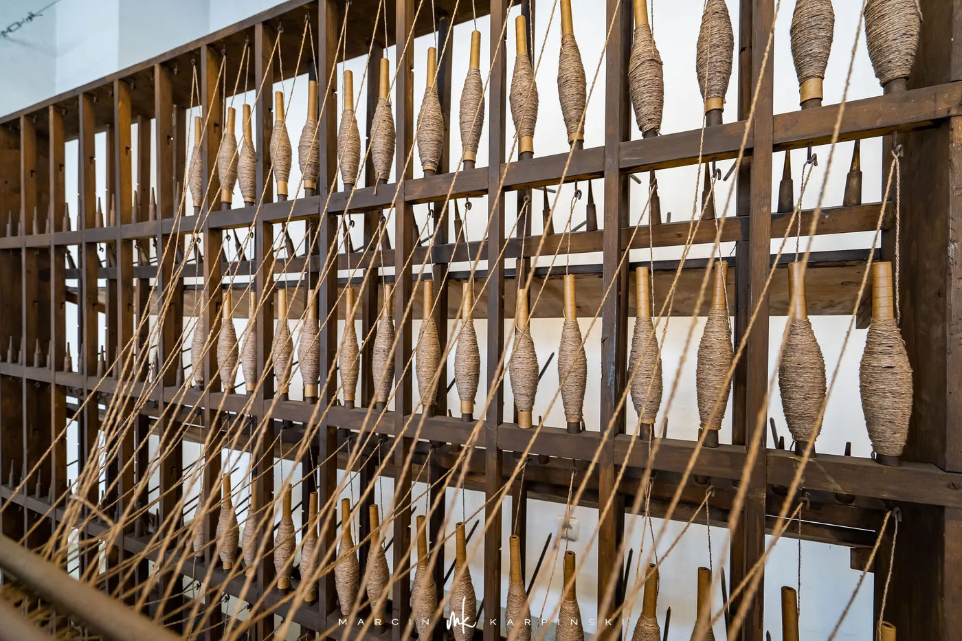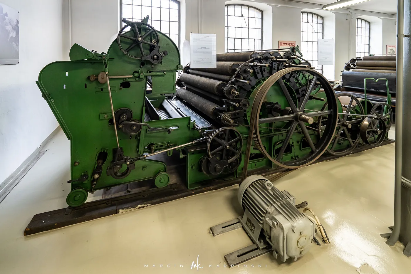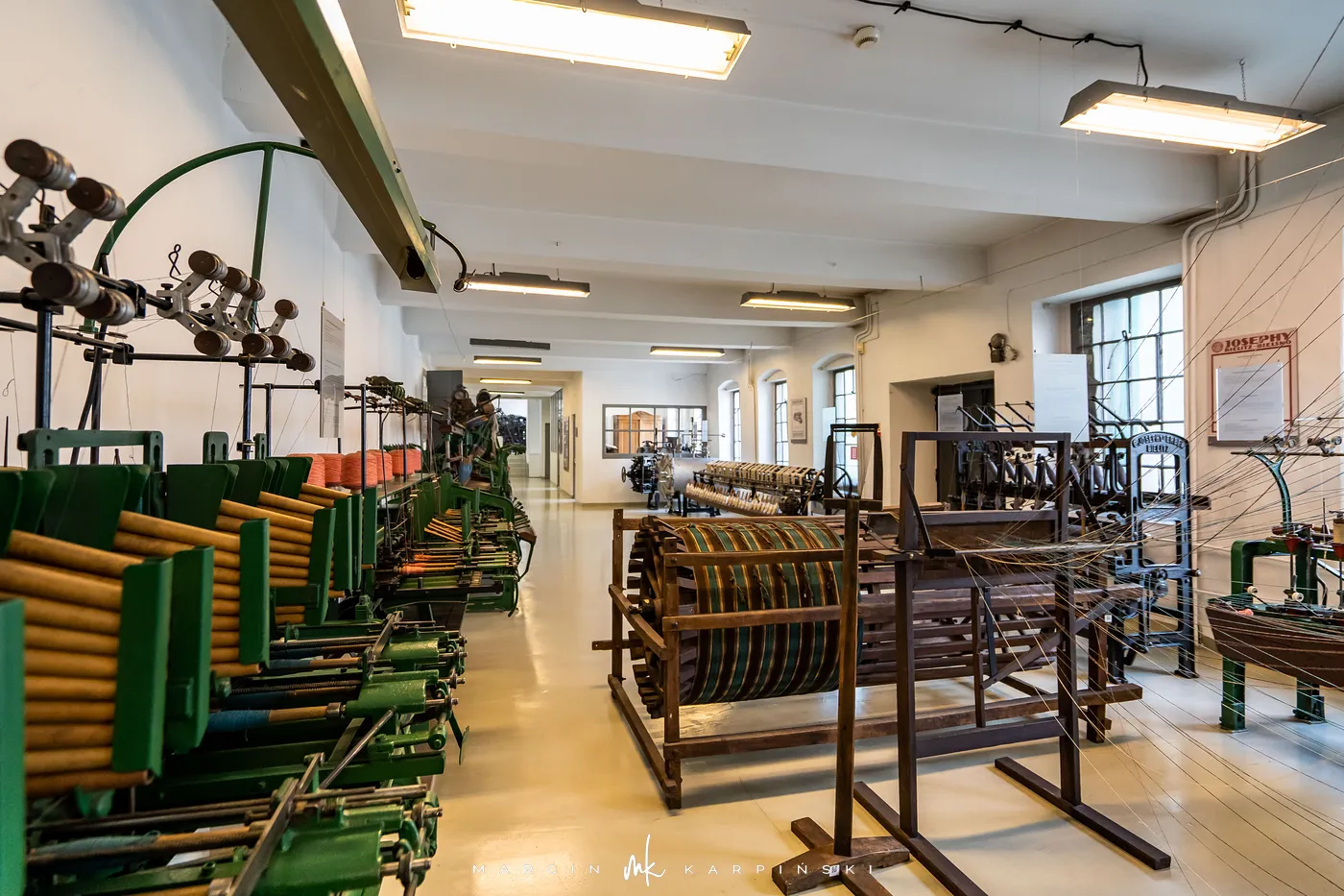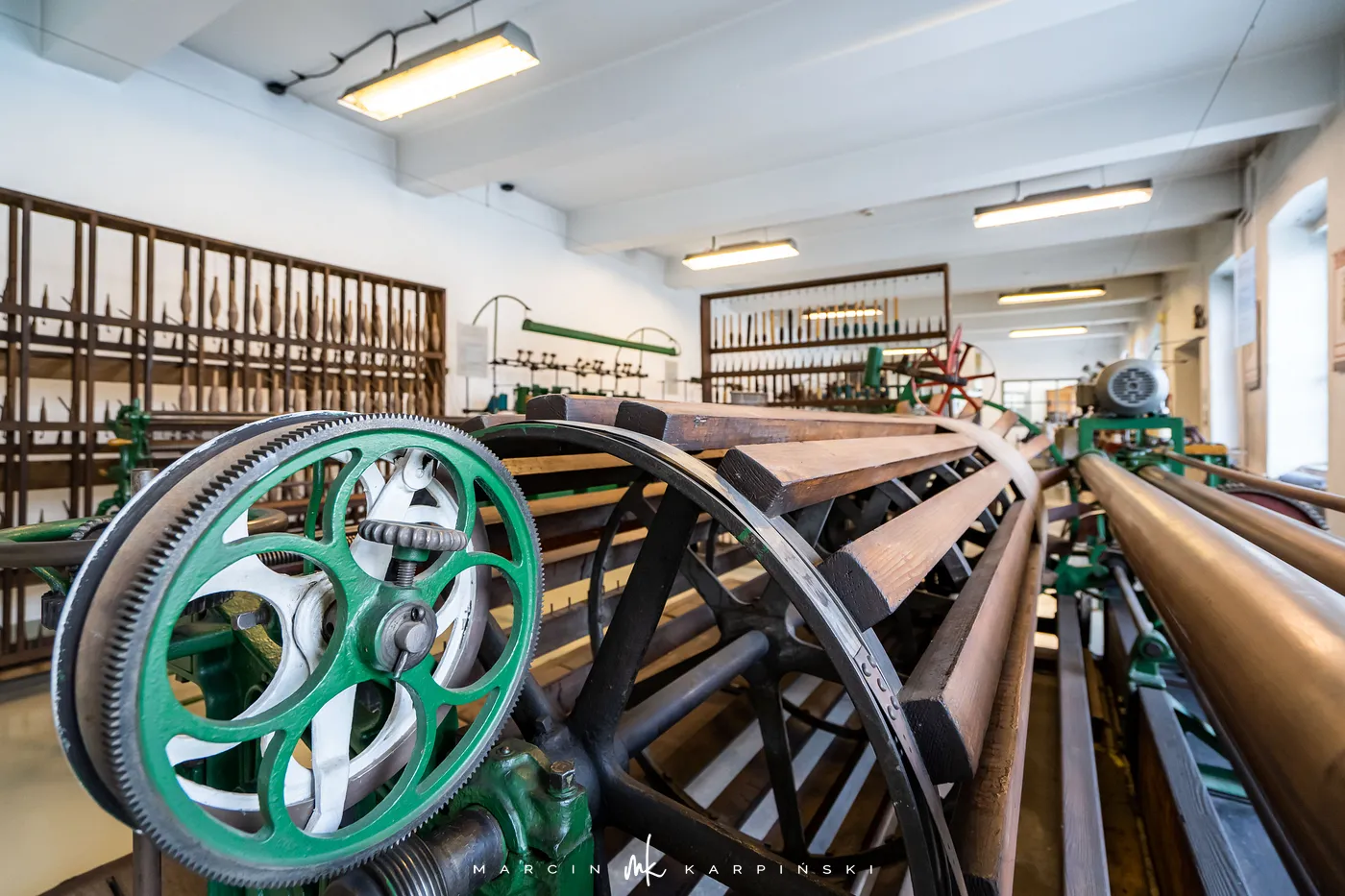 Druga część ekspozycji, „Wilk, selfaktor, postrzygarka”, to unikatowa kolekcja maszyn i urządzeń, które niegdyś napędzały bielskie fabryki. Zgromadzone w salach odtwarzających przędzalnię, tkalnię i wykończalnię eksponaty dokumentują pełen cykl produkcji tkanin wełnianych, ukazując wysoki poziom technicznego zaawansowania ówczesnego przemysłu.