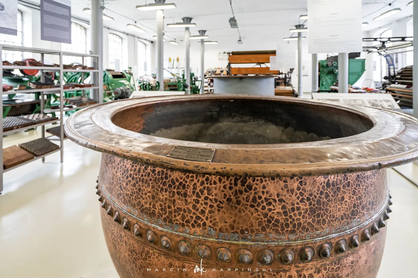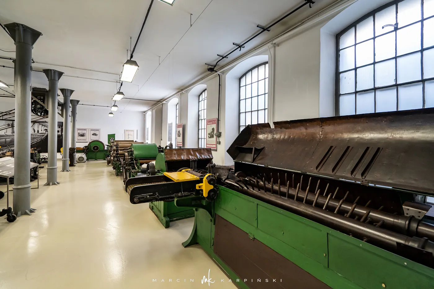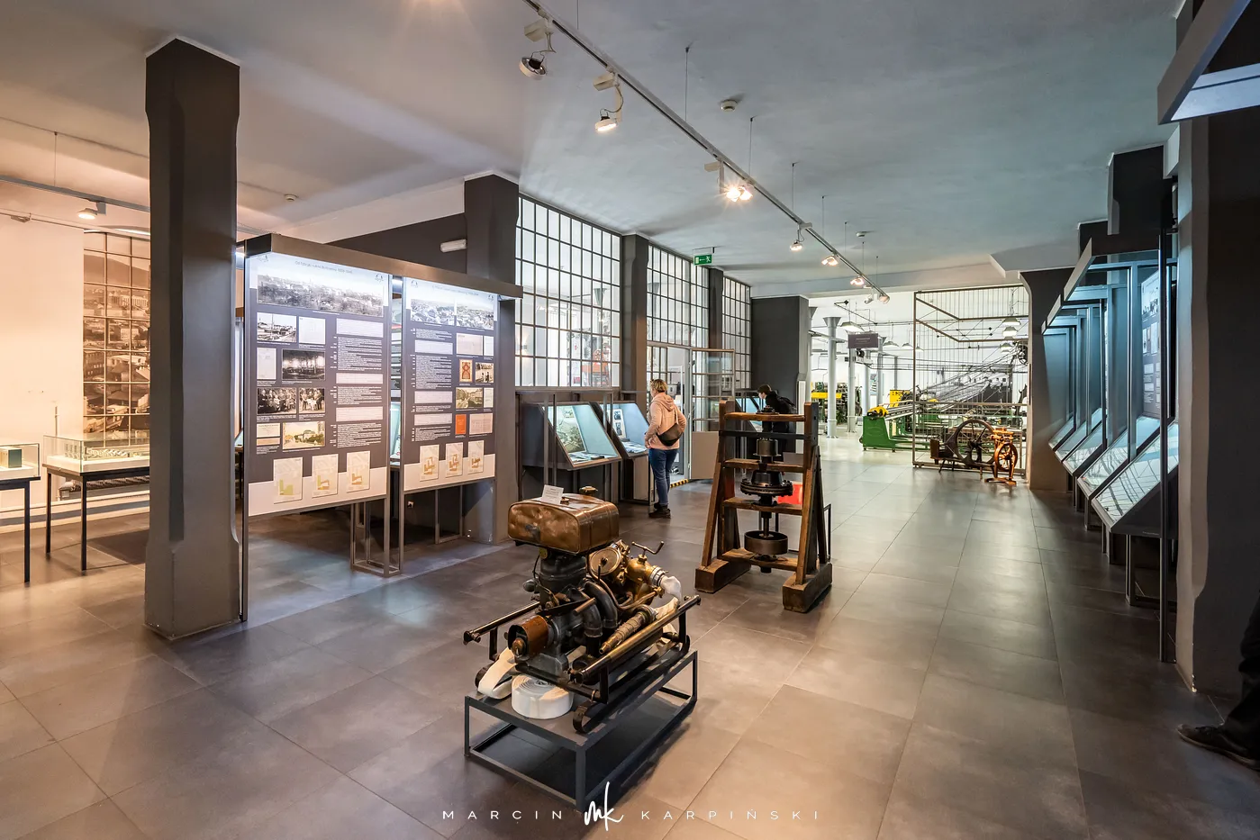 Ekspozycja stała muzeum dzieli się na dwie główne części, prezentujące industrialne oblicze miasta. Pierwsza z nich, zatytułowana „Od włókiennictwa do małego fiata”, prowadzi zwiedzających przez dzieje lokalnego przemysłu – od warsztatów i manufaktur po wielkie zakłady. Ukazuje nie tylko rozwój włókiennictwa, lecz także innych gałęzi przemysłu, w tym historię produkcji słynnego Fiata 126p, nierozerwalnie związanego z Bielskiem-Białą.