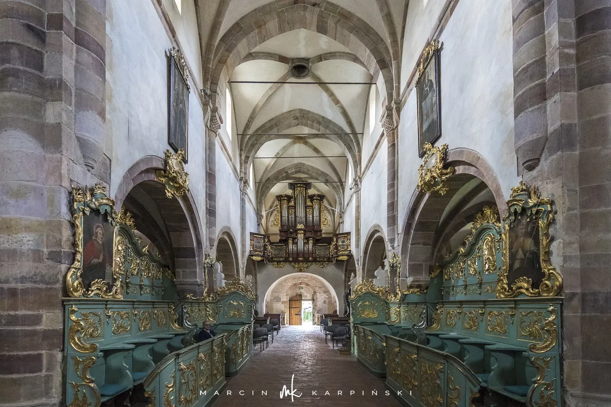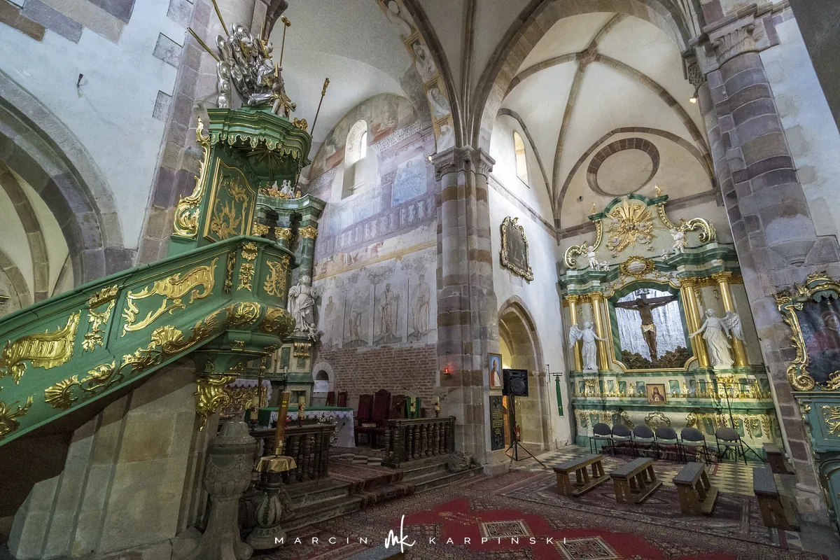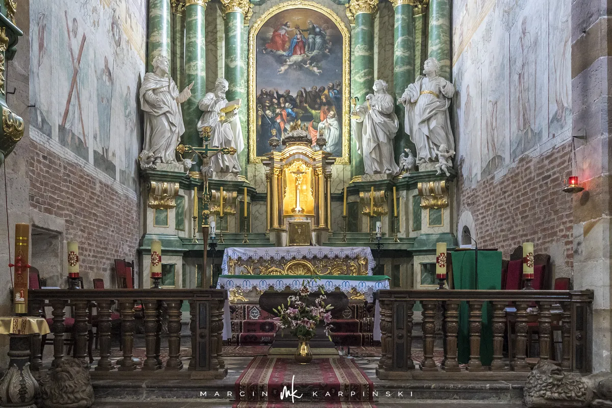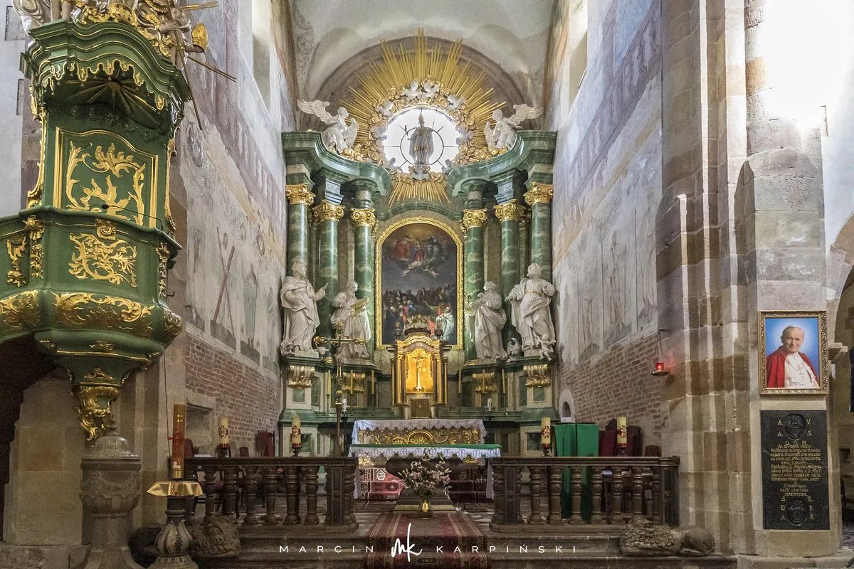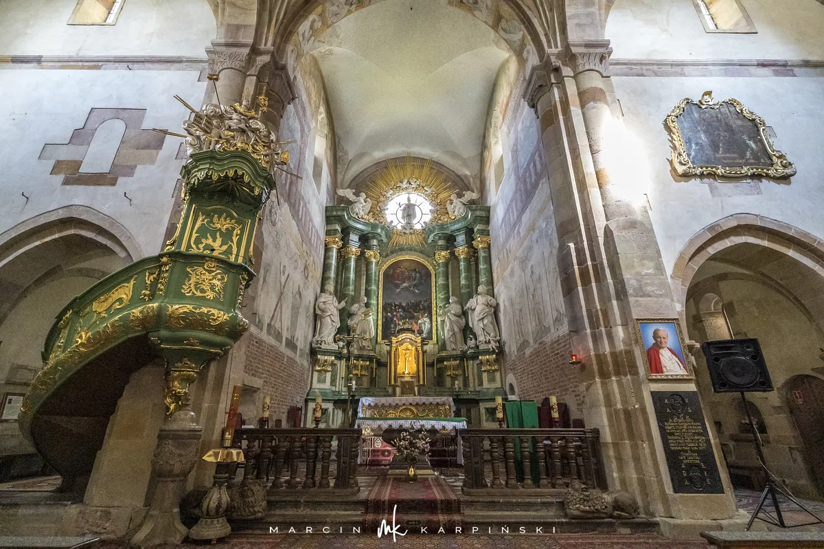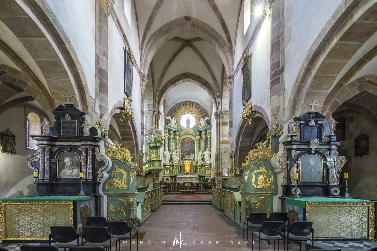 Kościół i klasztor zostały wybudowane w stylu romańskim. W późniejszym czasie dobudowano mury obronne wraz z basztami. Było to jedyne na ziemiach polskich obronne opactwo Cystersów. Po najazdach Szwedów rozpoczął się powolny upadek klasztoru. Najcenniejszym obiektem tego miejsca jest kościół św. Tomasza Kantuaryjskiego z początku XIII wieku. Obecnie na terenie opactwa mieści się parafia rzymskokatolicka, muzeum i hotel.