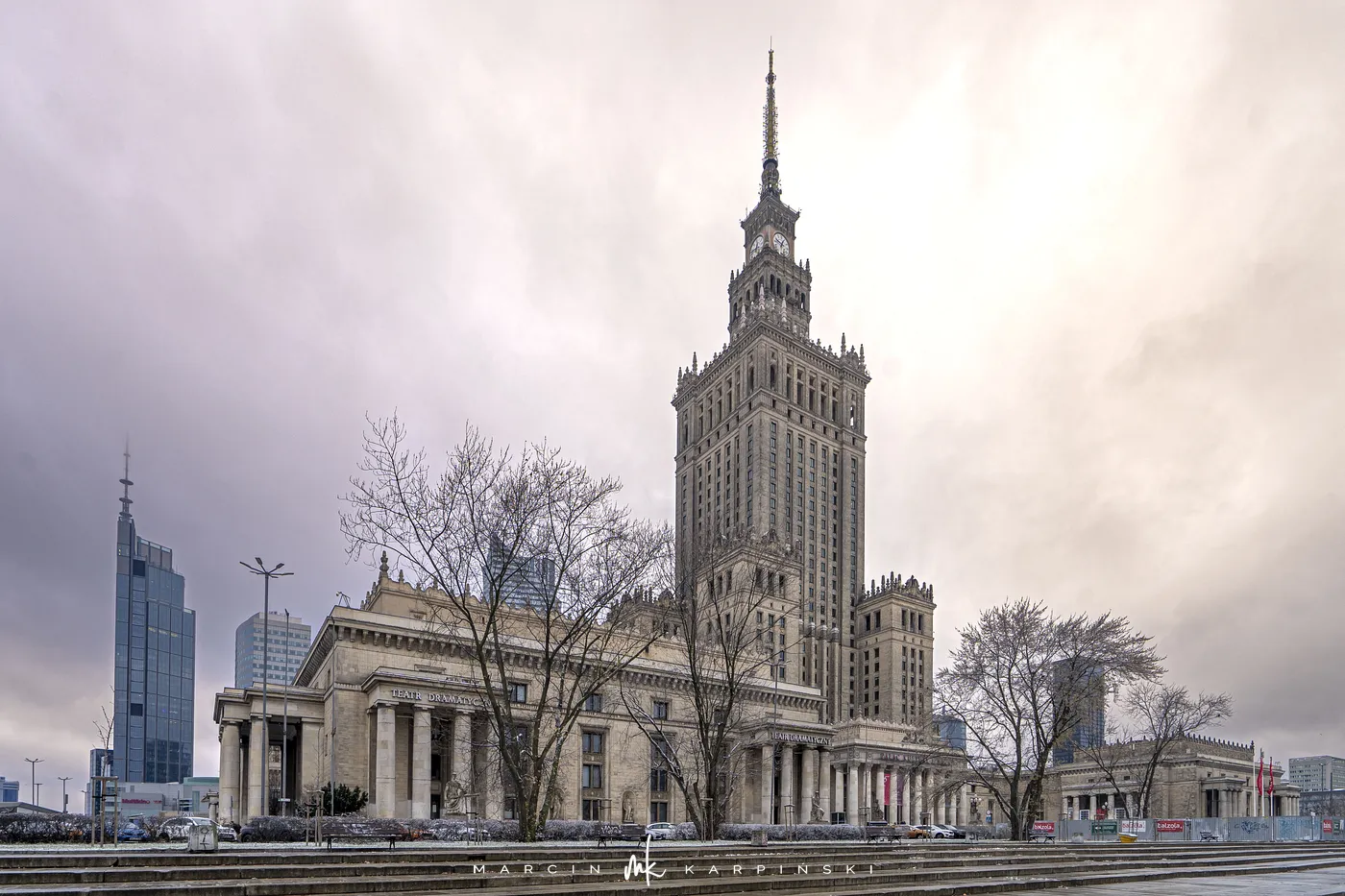 Pałac Kultury i Nauki w Warszawie wzniesiono w latach 1952–1955. Z iglicą mierzy 237 metrów i aż do 2021 roku pozostawał najwyższym budynkiem w Polsce, zanim palmę pierwszeństwa przejął Varso Tower. Powstał jako tzw. „dar narodu radzieckiego dla narodu polskiego”, a jego projekt przygotował radziecki architekt Lew Rudniew. Monumentalna bryła gmachu stanowi klasyczny przykład architektury socrealistycznej.