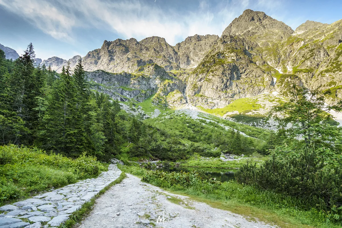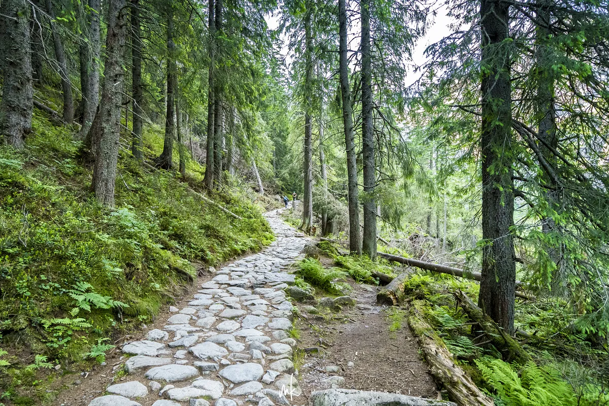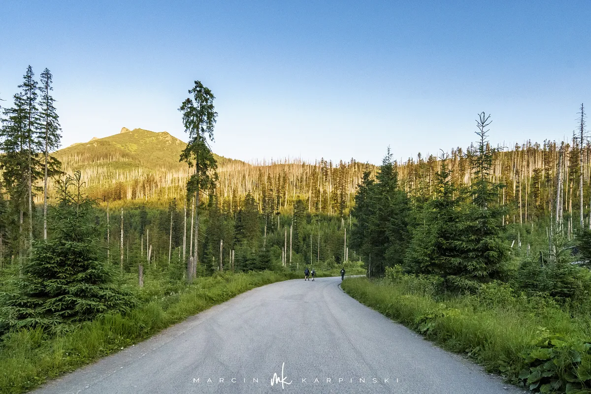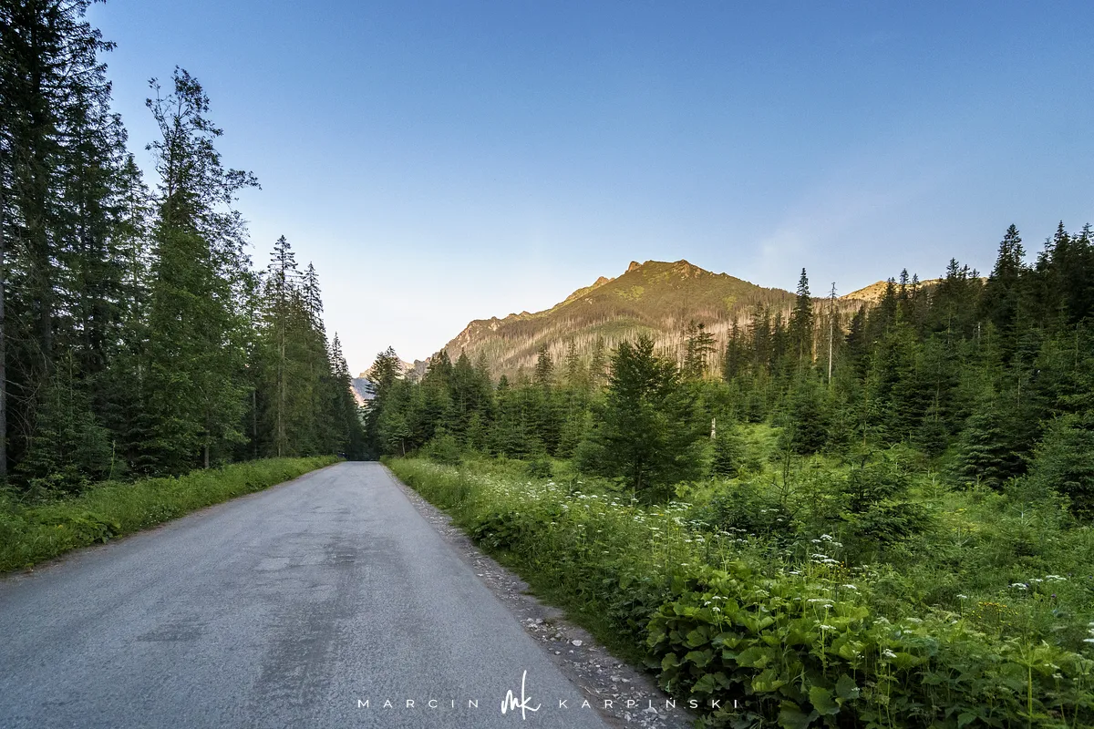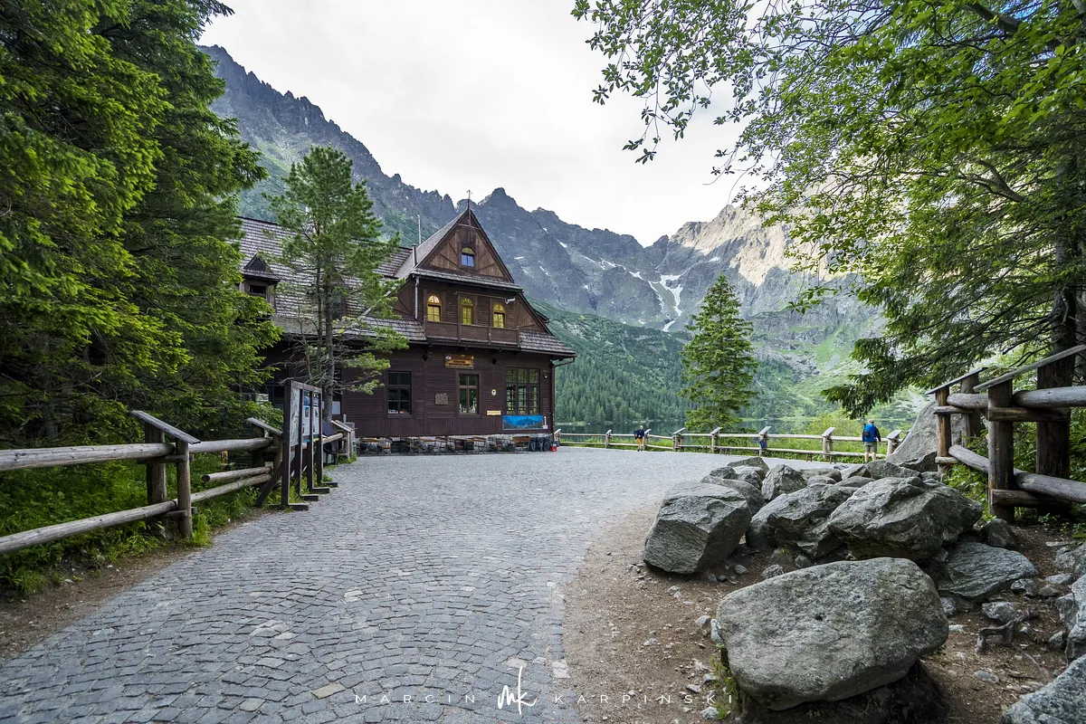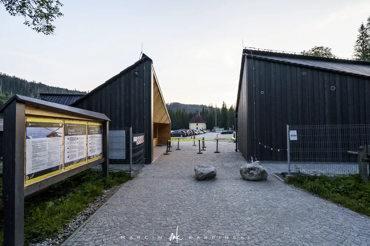 Na parkingu na Polanie Palenica Białczańska meldujemy się o 4:45. Przed godziną piątą kupujemy bilety wstępu do Tatrzańskiego Parku Narodowego i wchodzimy na czerwony szlak. Wędrówkę rozpoczynamy asfaltową drogą prowadzącą do Morskiego Oka. Zgodnie z oznaczeniami, dojście do schroniska powinno zająć 2 godziny i 20 minut, jednak my pokonaliśmy ten ośmiokilometrowy odcinek w 1 godzinę i 40 minut. Droga jest niemal pusta – spotykamy zaledwie kilkanaście osób podążających w tym samym kierunku. Przy schronisku robimy półgodzinną przerwę na odpoczynek i śniadanie.
