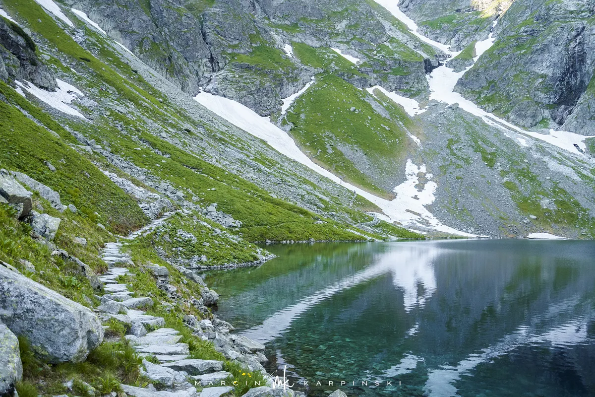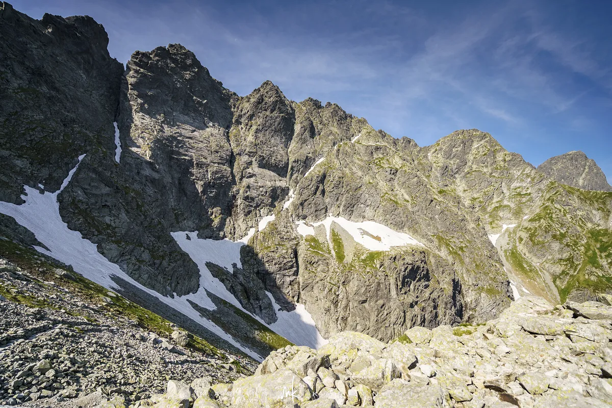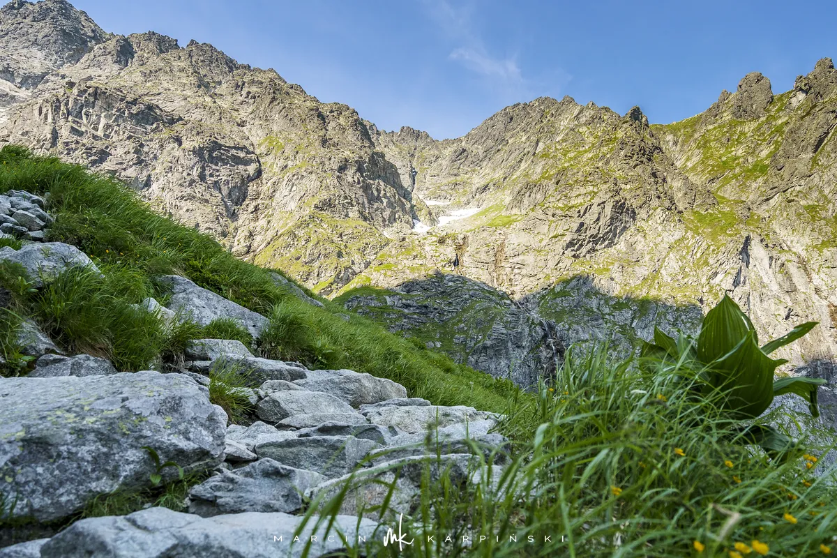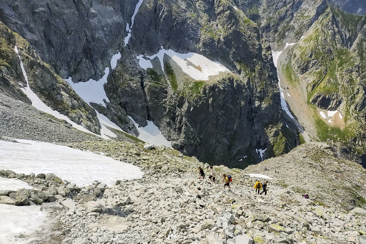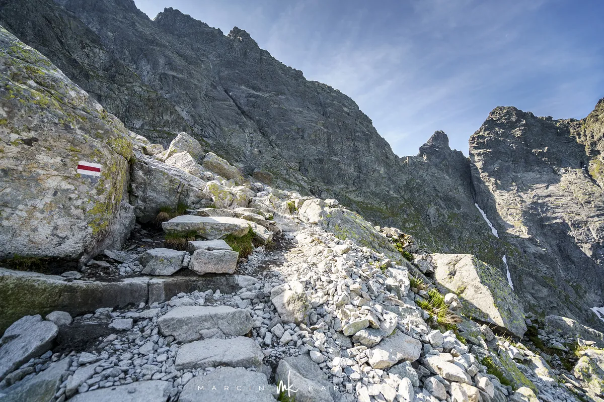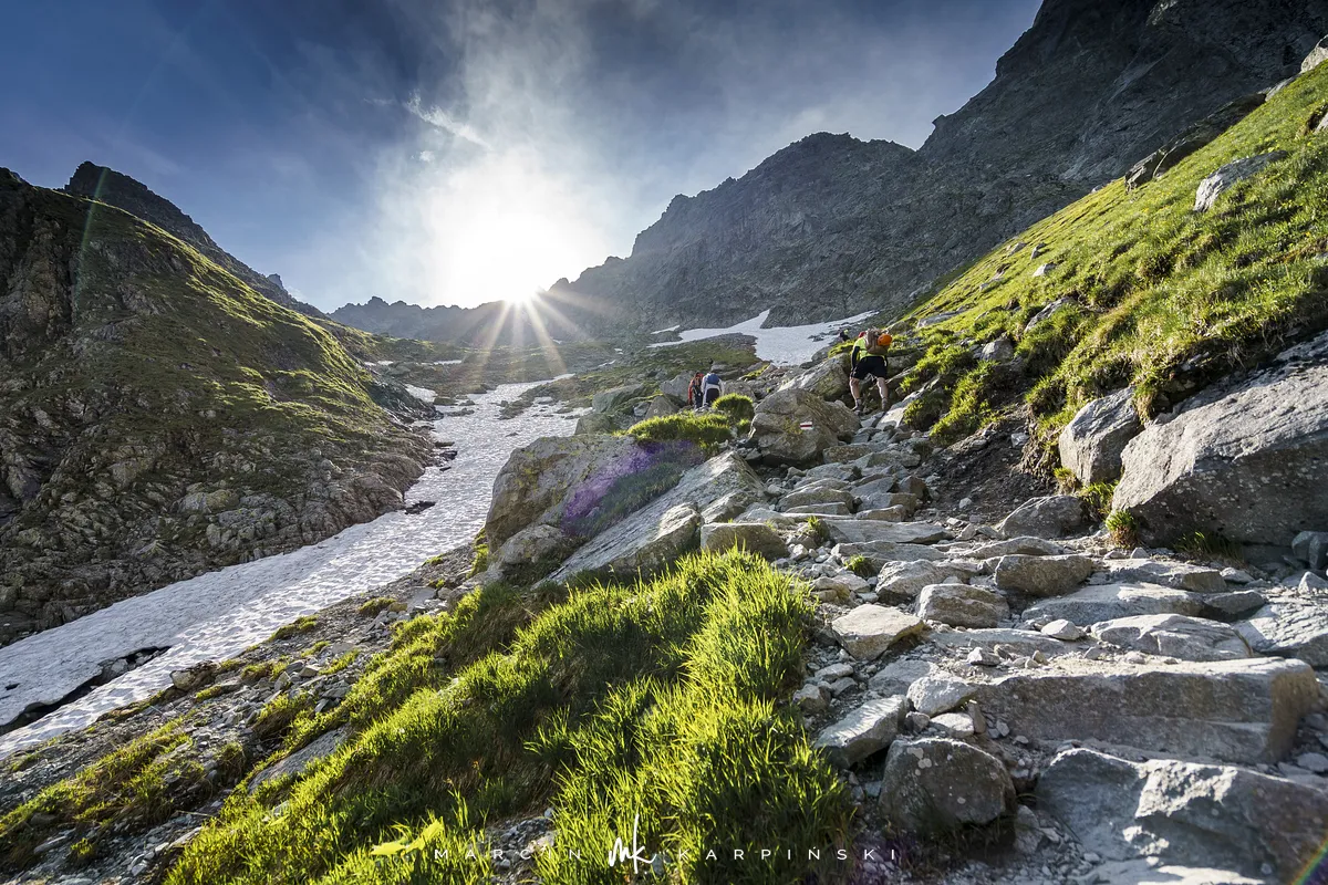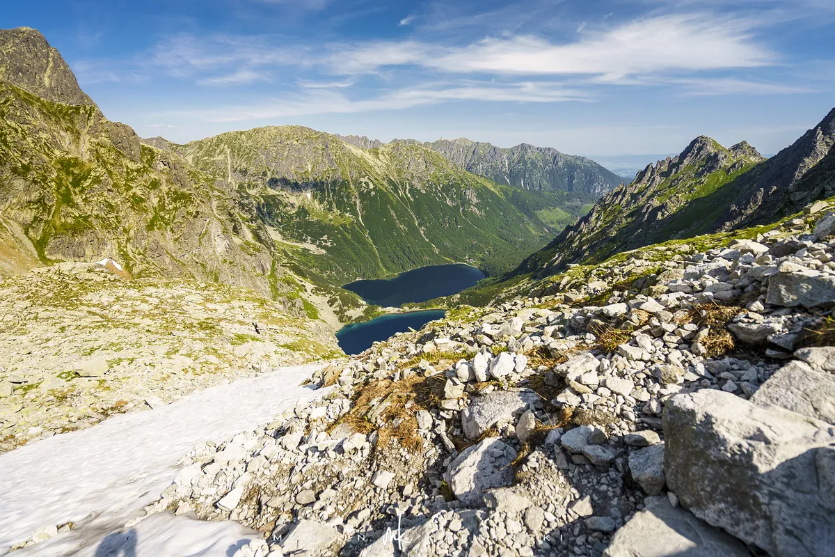 Obchodzimy Czarny Staw od wschodu, a następnie kierujemy się w stronę Buli pod Rysami. Od tego momentu czeka nas mozolne zdobywanie wysokości po kamieniach i skałach. W niektórych miejscach szlak jest zniszczony, co utrudnia przejście. Mimo że jest połowa lipca, w kilku miejscach leży jeszcze śnieg, co dodatkowo komplikuje wędrówkę.