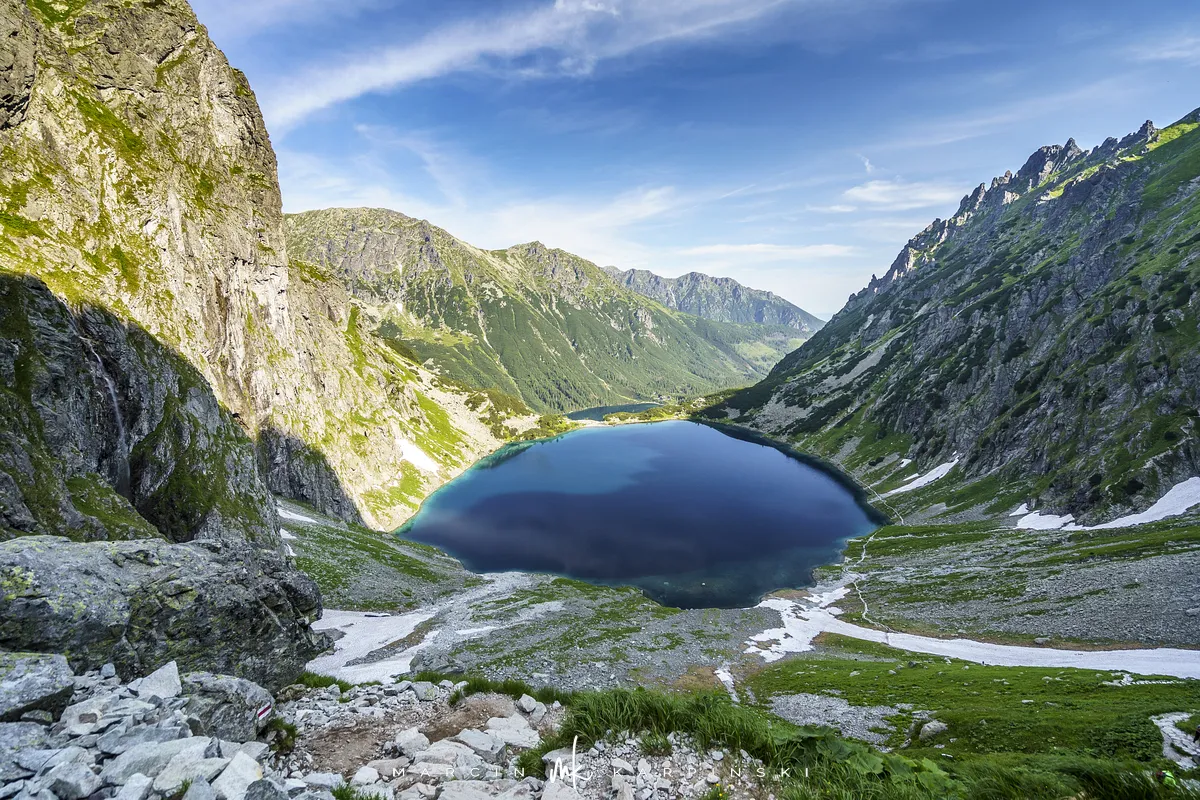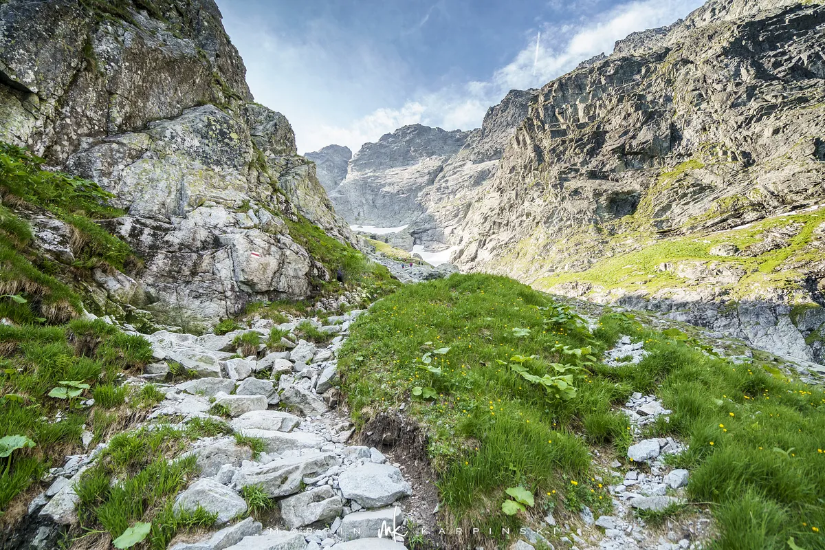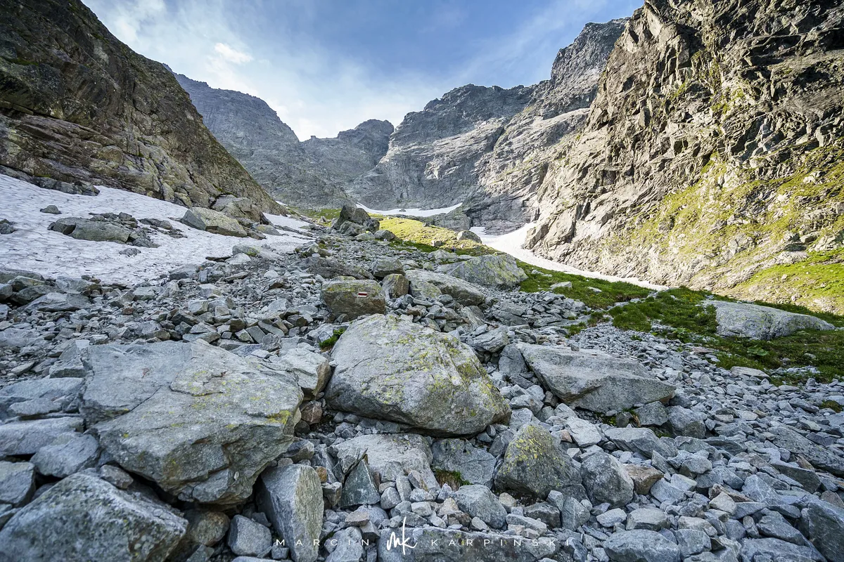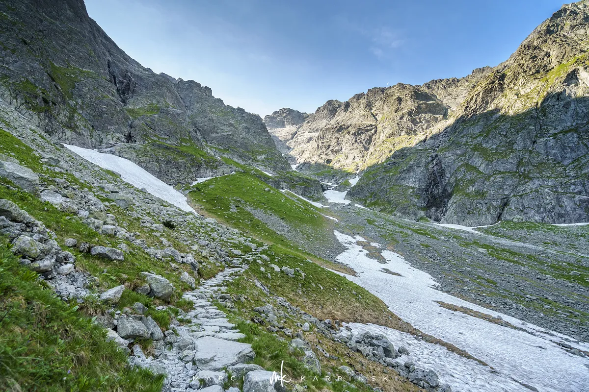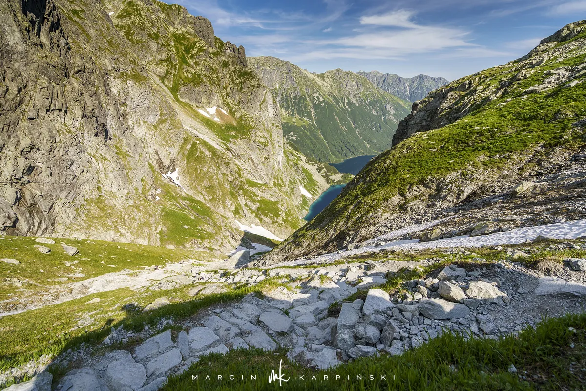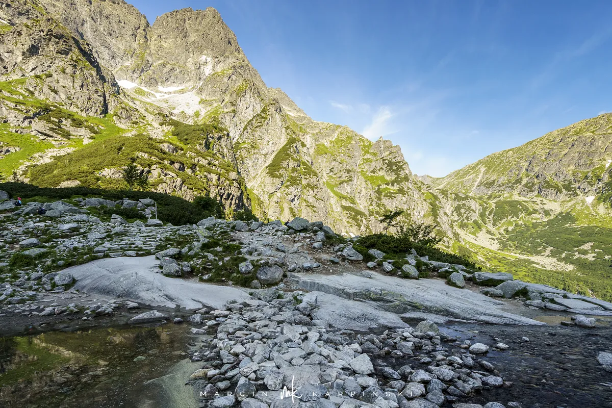 Obchodzimy Czarny Staw od wschodu, a następnie kierujemy się w stronę Buli pod Rysami. Od tego momentu czeka nas mozolne zdobywanie wysokości po kamieniach i skałach. W niektórych miejscach szlak jest zniszczony, co utrudnia przejście. Mimo że jest połowa lipca, w kilku miejscach leży jeszcze śnieg, co dodatkowo komplikuje wędrówkę.