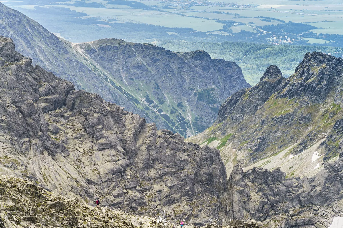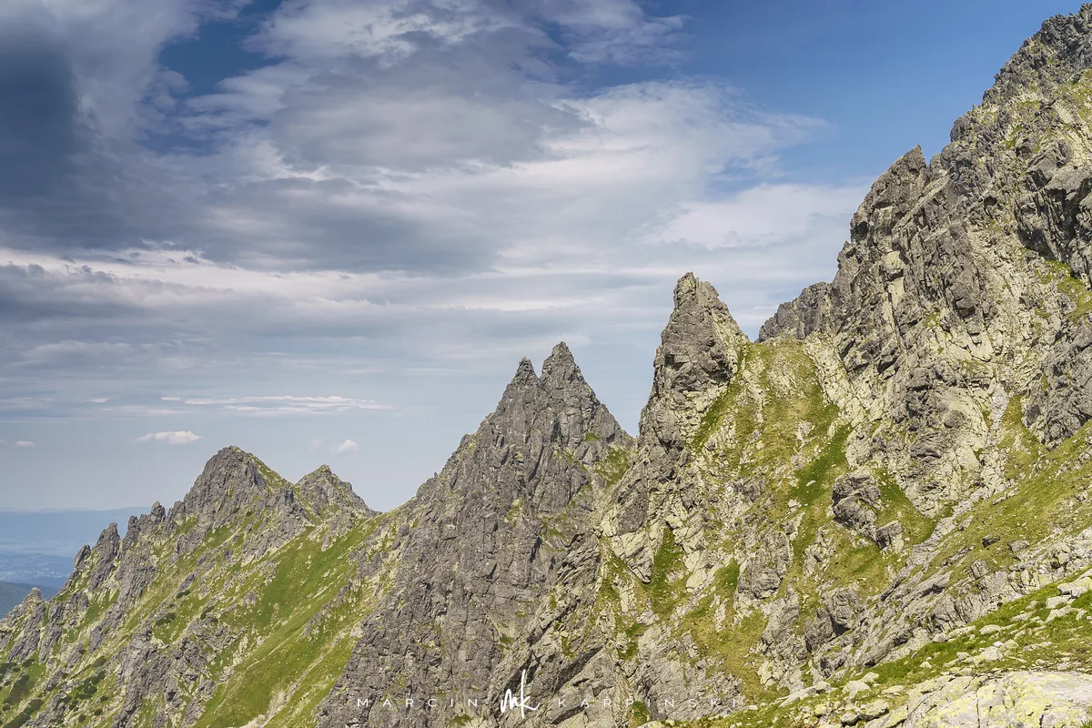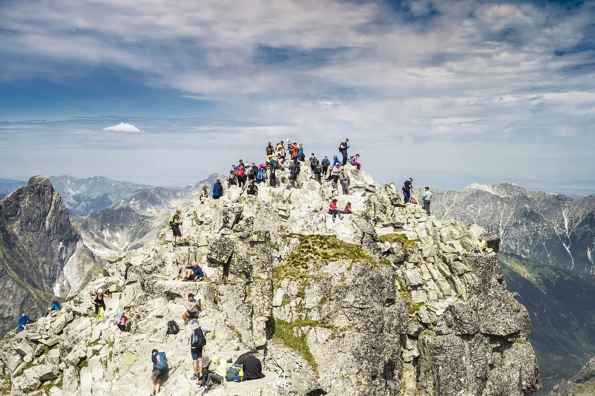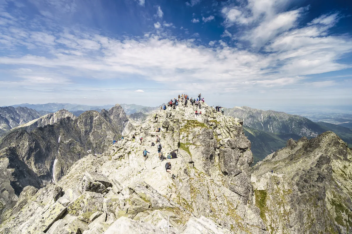 O godzinie 9:45 docieramy do miejsca, w którym zaczyna się ubezpieczony łańcuchami odcinek szlaku. Ścieżka prowadzi przez strome, skalne płyty. Łańcuchy będą towarzyszyć nam już do samego szczytu, choć zdarzają się krótkie odcinki bez zabezpieczeń. Tuż przed wierzchołkiem czeka nas najtrudniejszy fragment trasy – tzw. „przełączka”. Technicznie nie jest on skomplikowany, jednak ekspozycja może być dla niektórych osób paraliżująca.