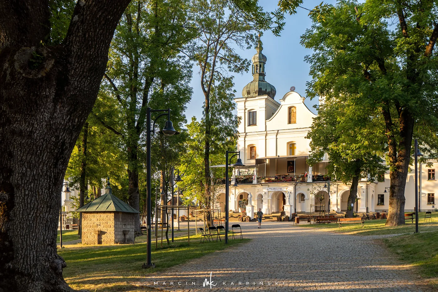 Współczesny kompleks obejmuje nie tylko bazylikę i klasztor, ale też rozległą sieć kaplic, dróżek i obiektów pielgrzymkowych usytuowanych na okolicznych wzgórzach. Na ich zboczach rozmieszczonych jest około 42 kaplic kalwaryjskich – zarówno murowanych, jak i drewnianych – zaprojektowanych tak, aby odtwarzały symbolikę Ziemi Świętej. Wzgórza odwołują się do Golgoty i Góry Oliwnej, natomiast dolina rzeki Wiar przywodzi na myśl Dolinę Jozafata i potok Cedron.