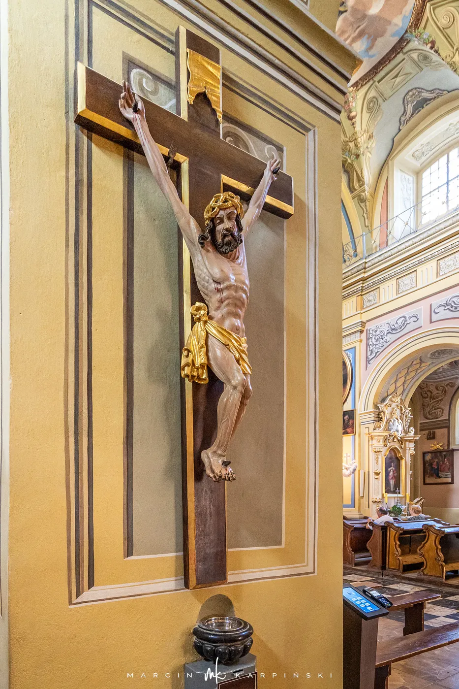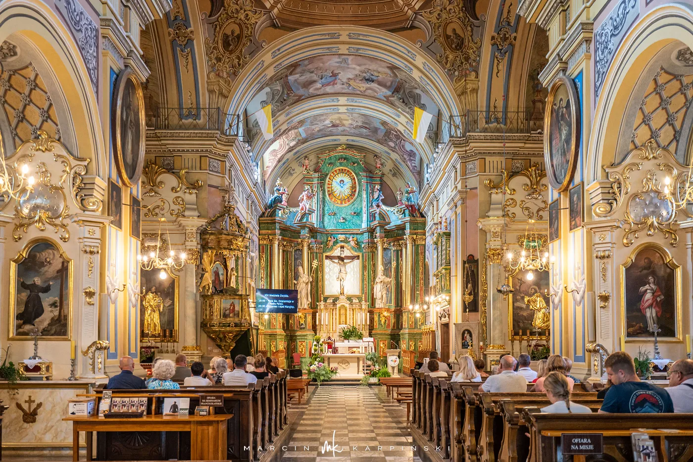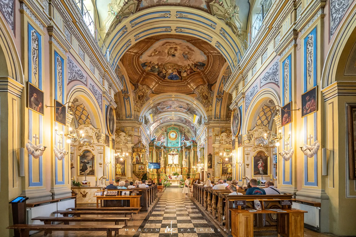 W latach 1770–1775 pierwotny, drewniany kościół zastąpiono murowaną, okazałą świątynią barokową. Rok później została ona konsekrowana pod wezwaniem Znalezienia Krzyża Świętego, a w 2020 roku papież Franciszek nadał jej tytuł bazyliki mniejszej. Architektura budowli zachwyca typowym dla baroku układem trójnawowym, transeptem, dwiema bocznymi wieżami zwieńczonymi kopułami oraz bogatym wystrojem wnętrza, pełnym ołtarzy, polichromii i dekoracji. W XIX wieku fasadę wzbogacono o charakterystyczne podcienia.
