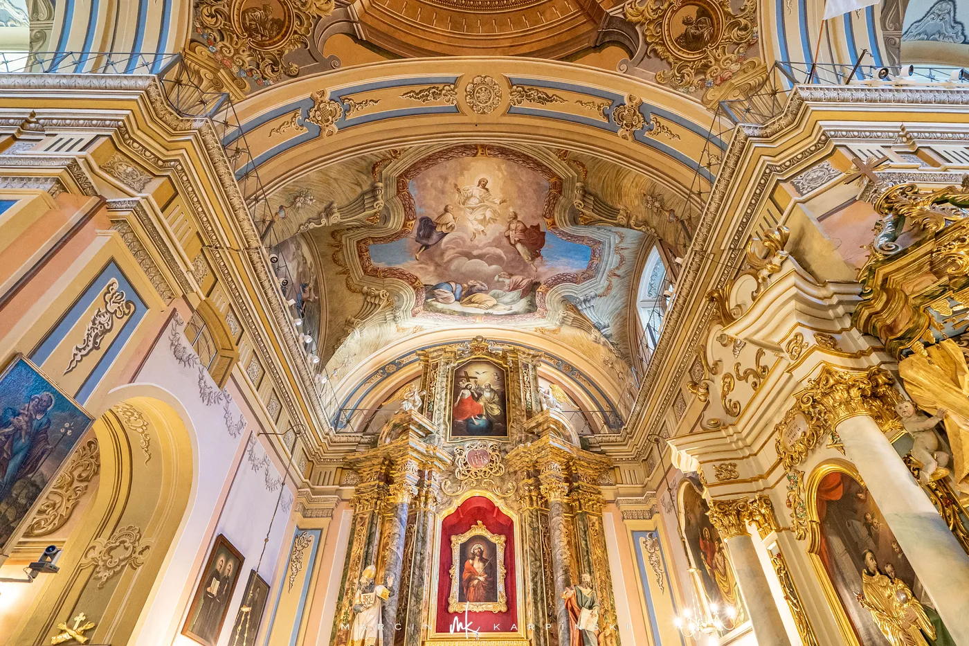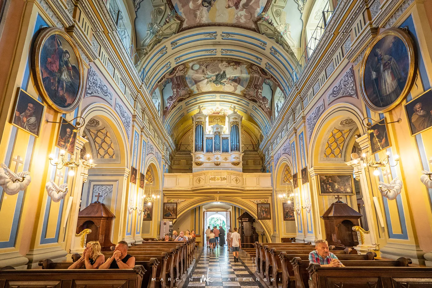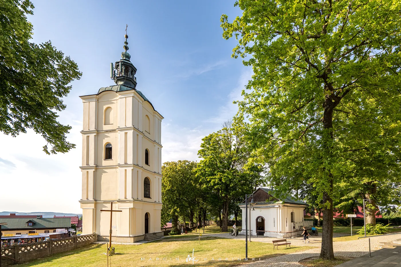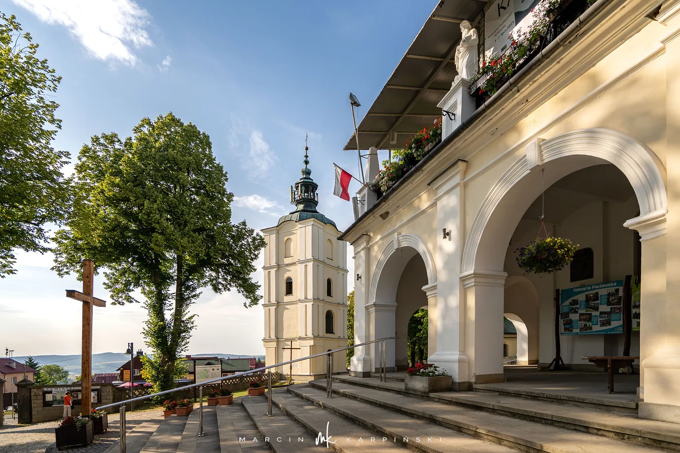 W latach 1770–1775 pierwotny, drewniany kościół zastąpiono murowaną, okazałą świątynią barokową. Rok później została ona konsekrowana pod wezwaniem Znalezienia Krzyża Świętego, a w 2020 roku papież Franciszek nadał jej tytuł bazyliki mniejszej. Architektura budowli zachwyca typowym dla baroku układem trójnawowym, transeptem, dwiema bocznymi wieżami zwieńczonymi kopułami oraz bogatym wystrojem wnętrza, pełnym ołtarzy, polichromii i dekoracji. W XIX wieku fasadę wzbogacono o charakterystyczne podcienia.