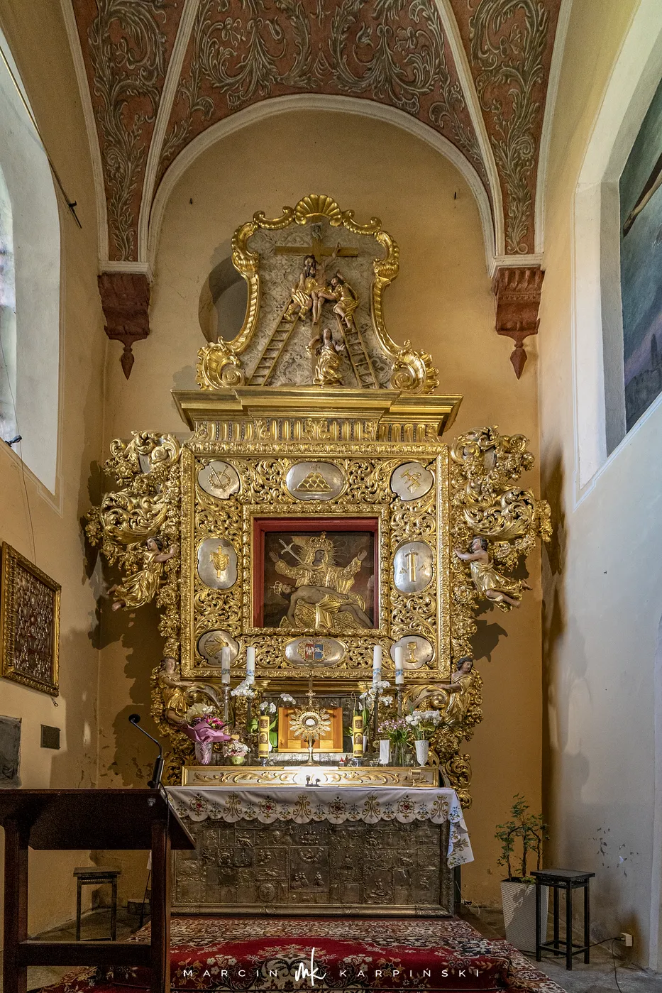 Początki kultu Matki Bożej Bolesnej Chełmińskiej sięgają czasów średniowiecza i są związane z legendą o cudownym źródełku oraz uzdrowieniu niewidomego pastuszka. W miejscu źródełka umieszczono cudowny wizerunek Matki Bożej, który w krótkim czasie stał się obiektem licznych pielgrzymek. W 1649 roku obraz został przeniesiony do głównego kościoła w Chełmnie.